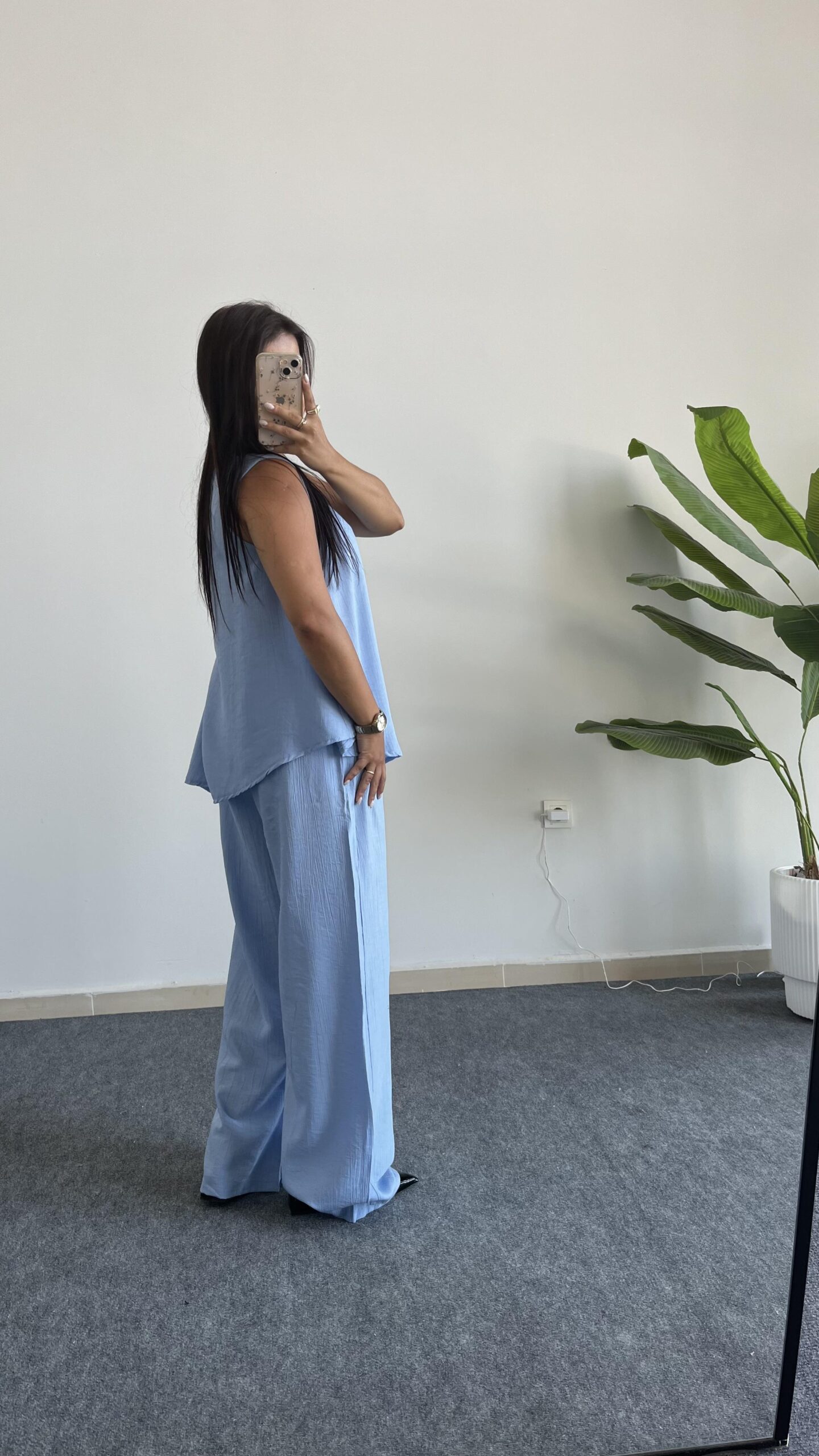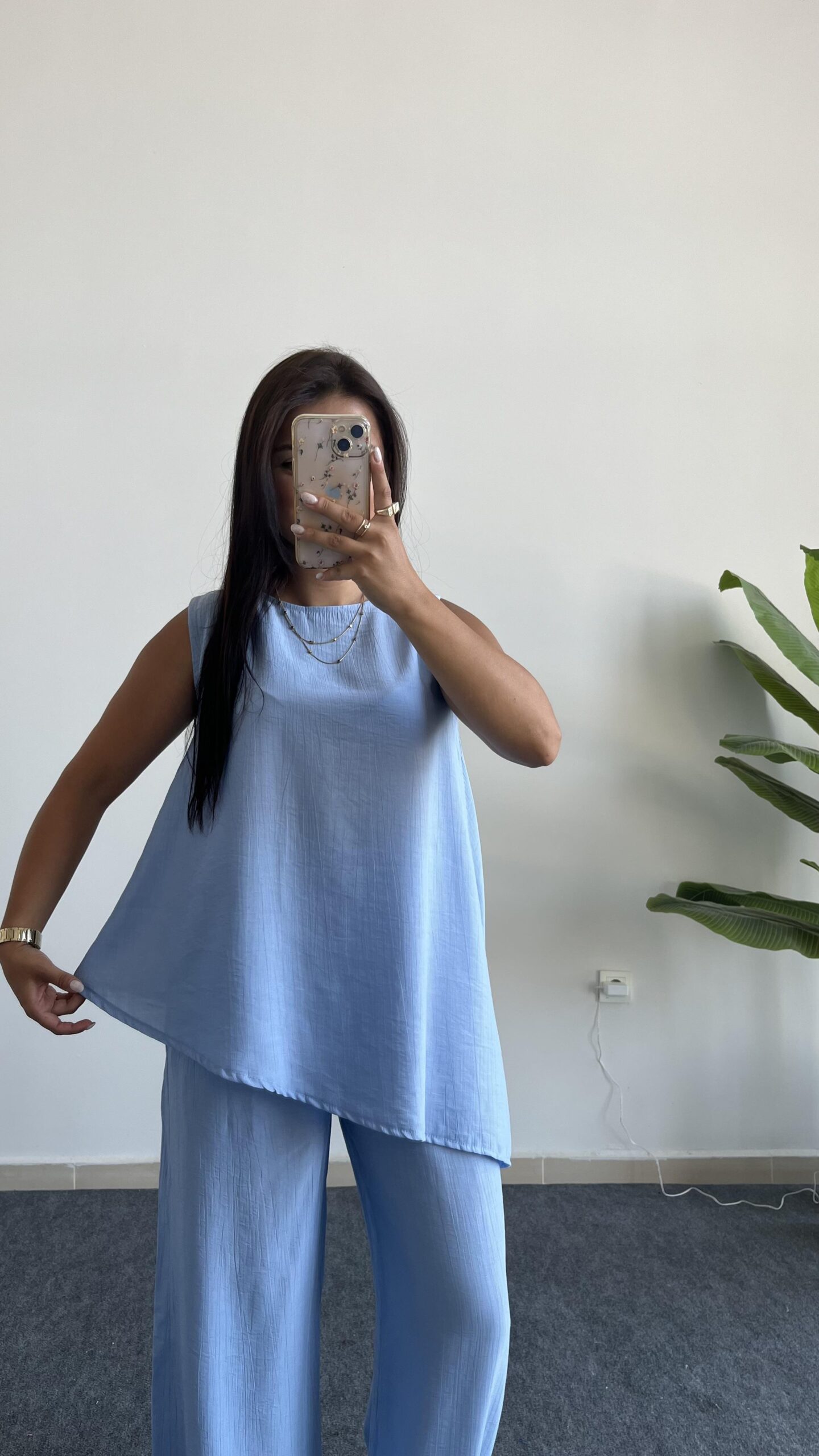 “Asimetrik Kesim Bluz Pantolon Takım – Bebe Mavi” için yorum yapan ilk kişi siz olun