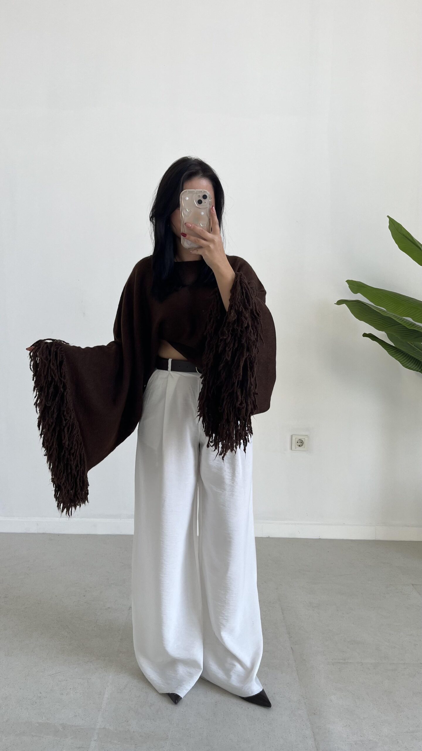 Berlodo Geniş Kol Püsküllü Crop Bluz – Kahve