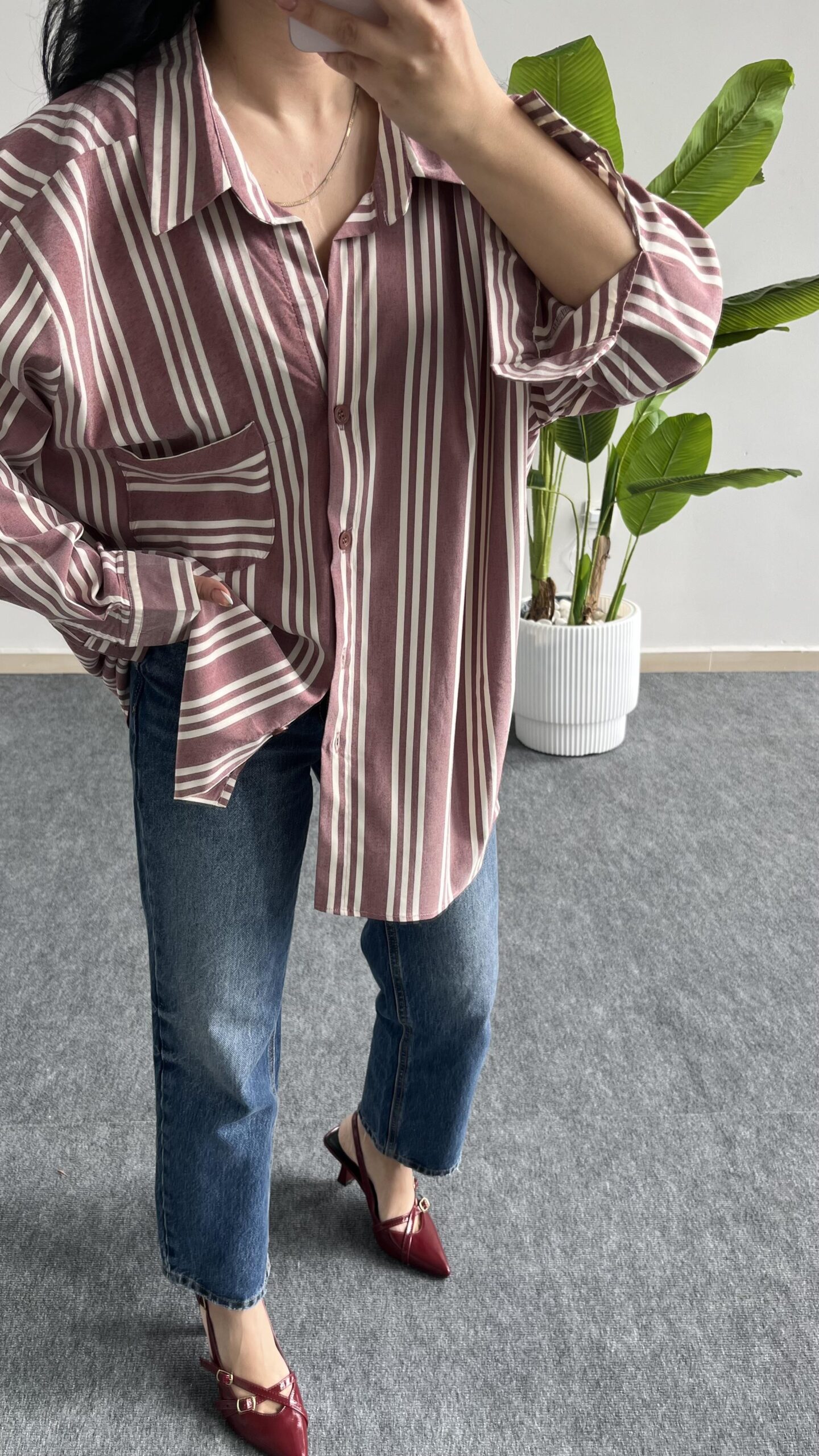 Katre Garnili Bambu Gömlek – Gül Kurusu