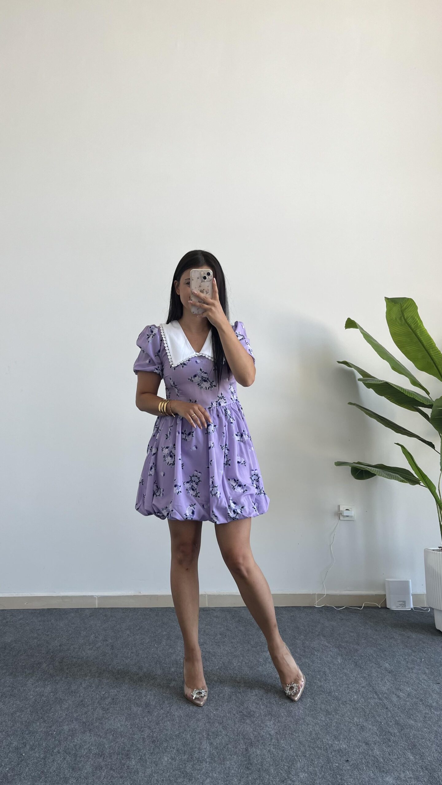 Selesta Bebe Yaka Mini Balon Elbise – Lila