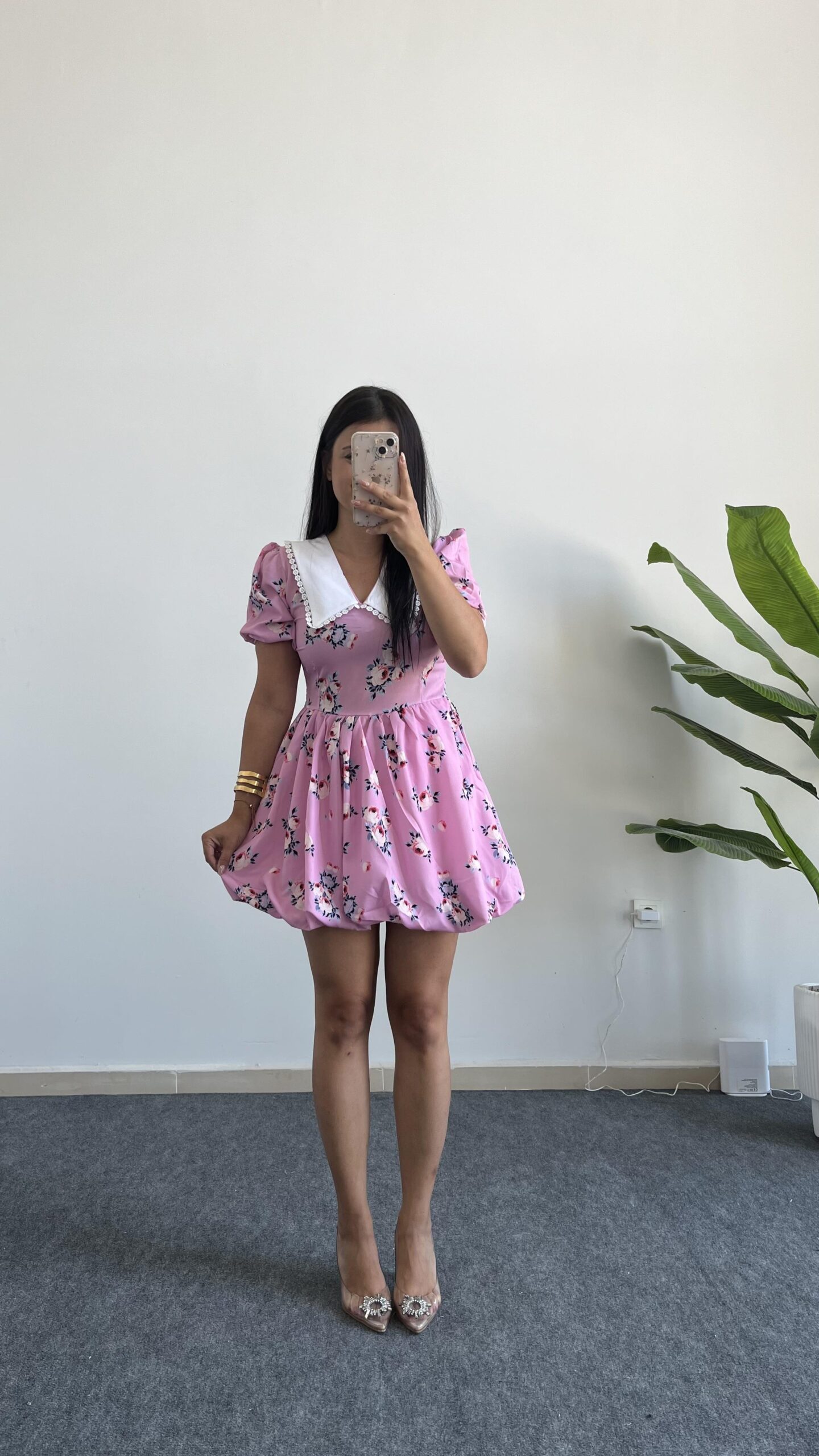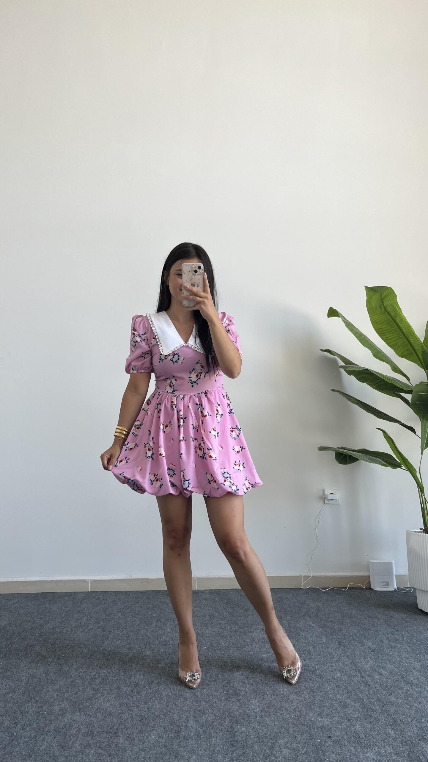 Selesta Bebe Yaka Mini Balon Elbise – Pembe