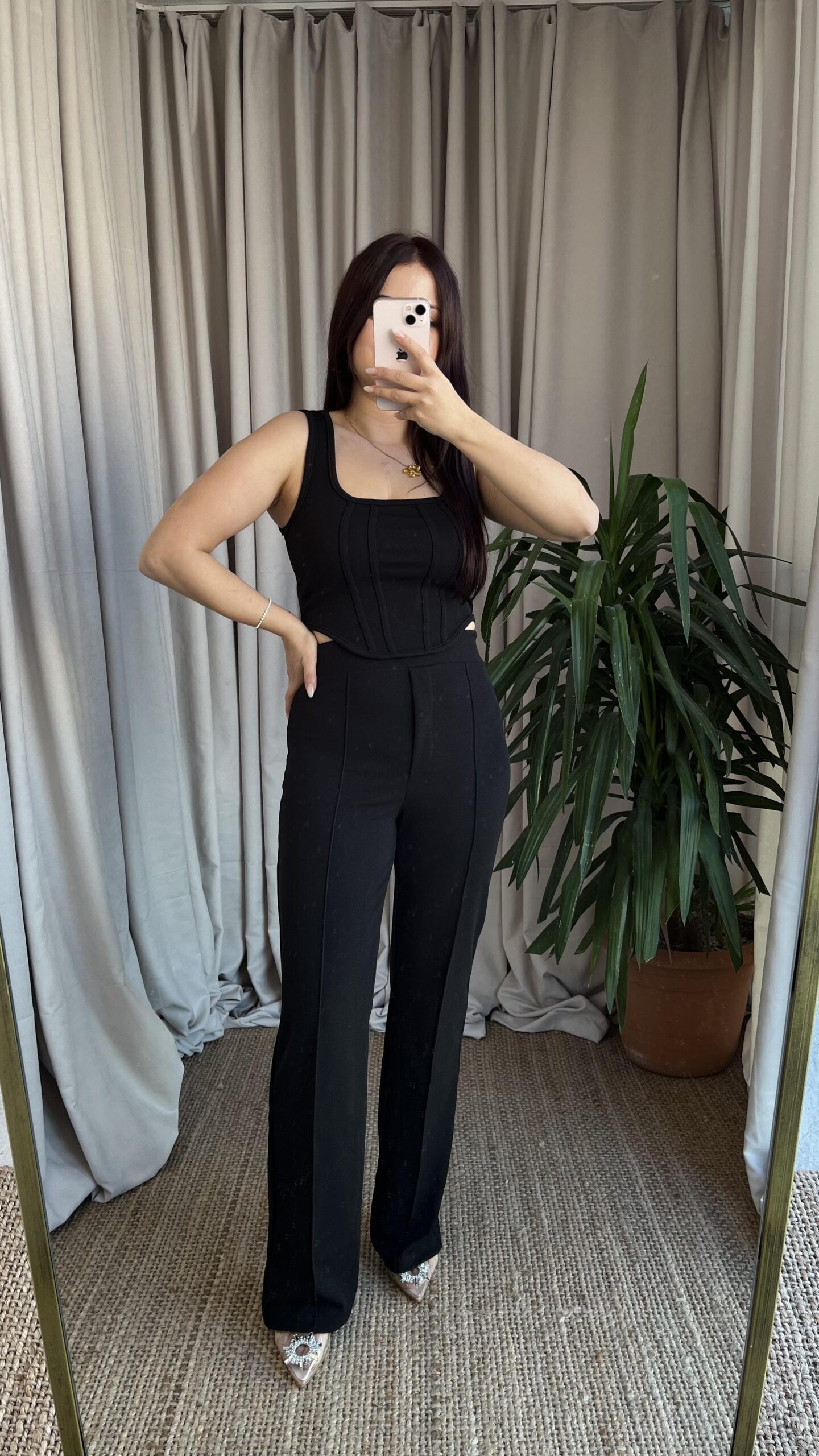 Siyah Korse Görünümlü Askılı Takım