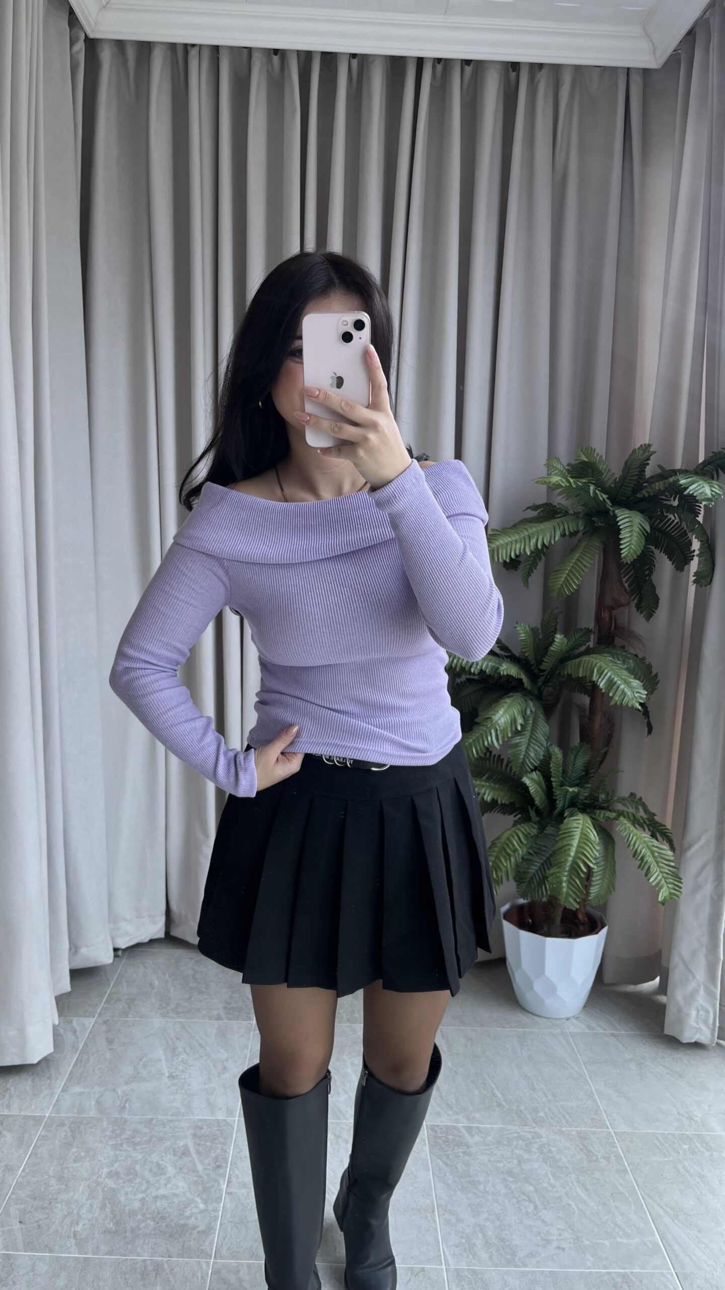 Evia Kaşkorse Madonna Yaka Bluz Lila