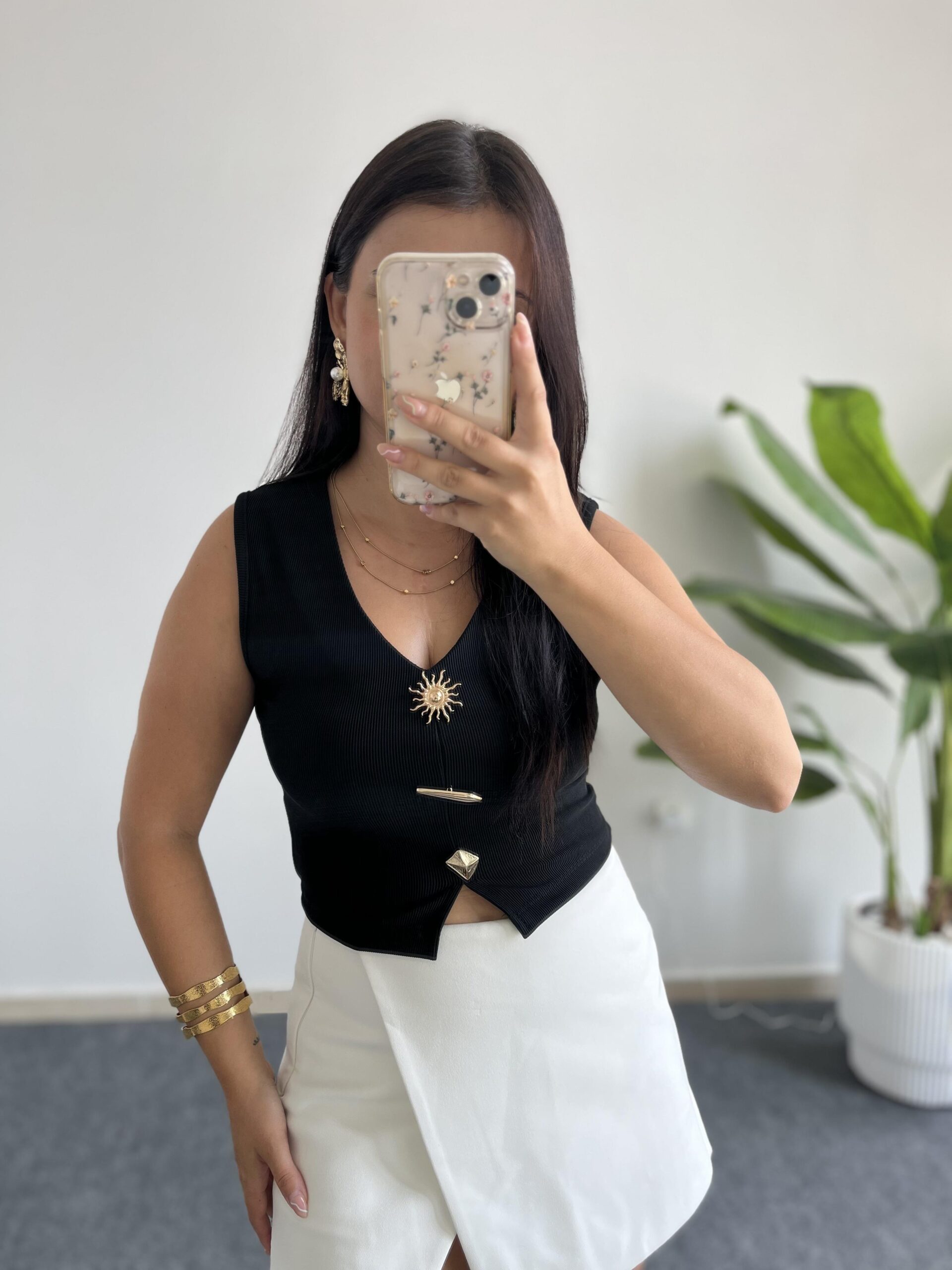 Güneş Aksesuarlı Bluz – Siyah