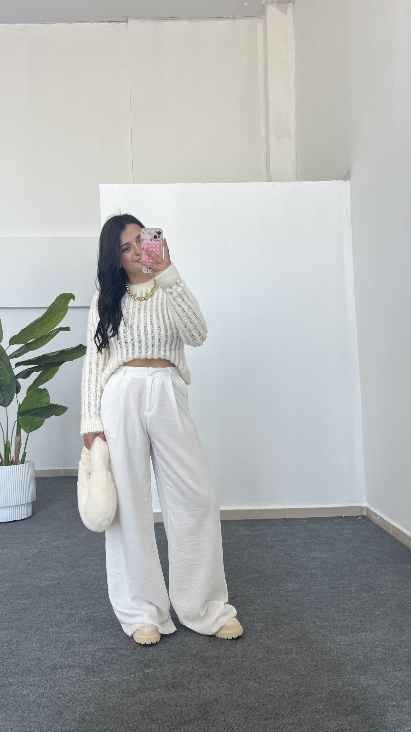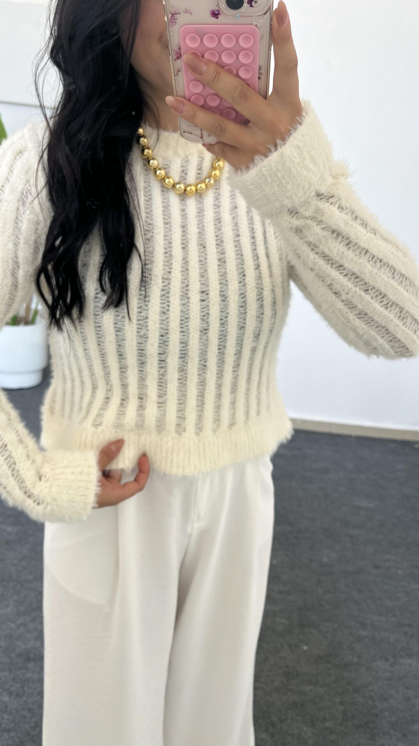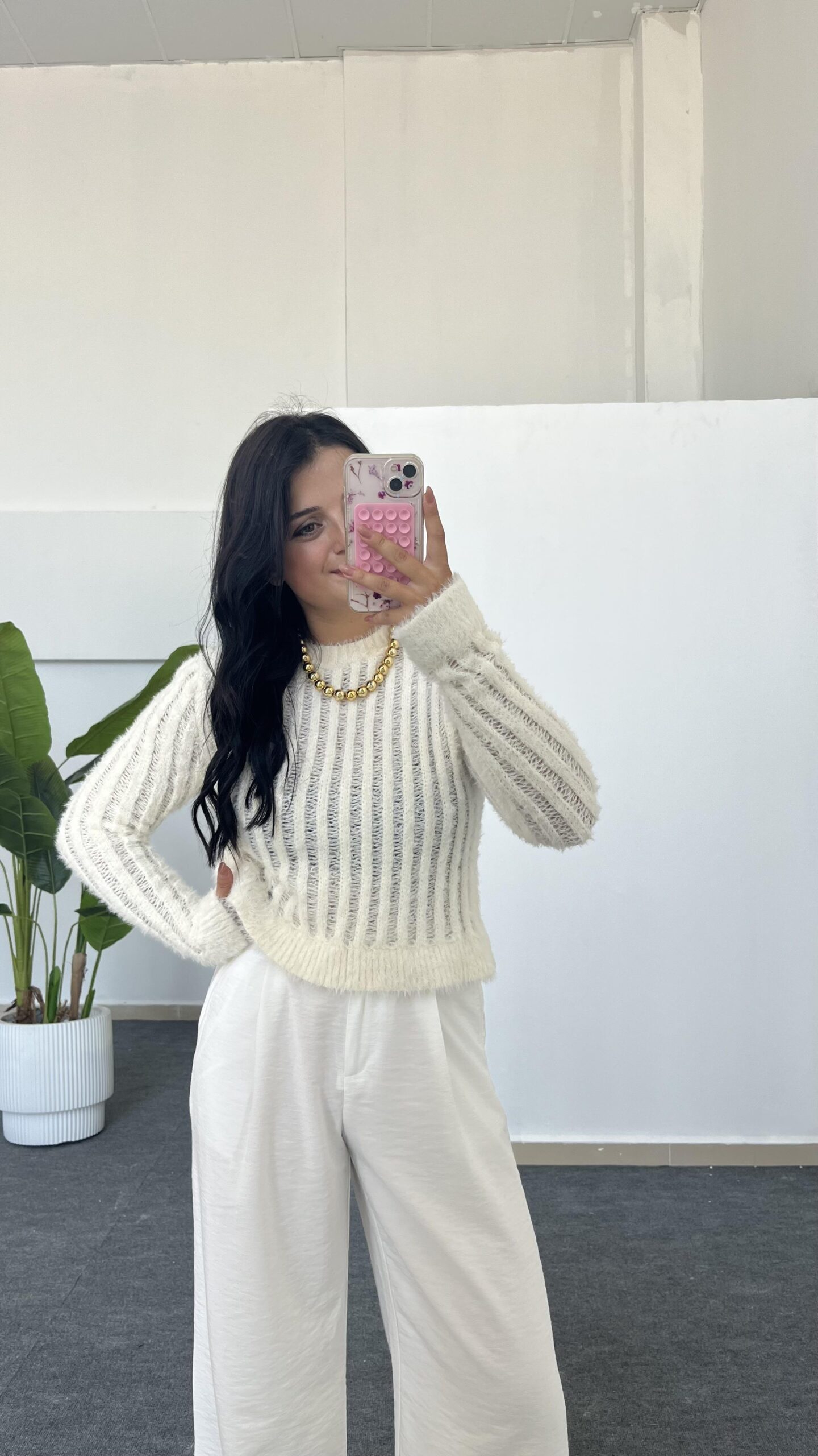 Hira Ajurlu Sakallı Triko Bluz – Ekru