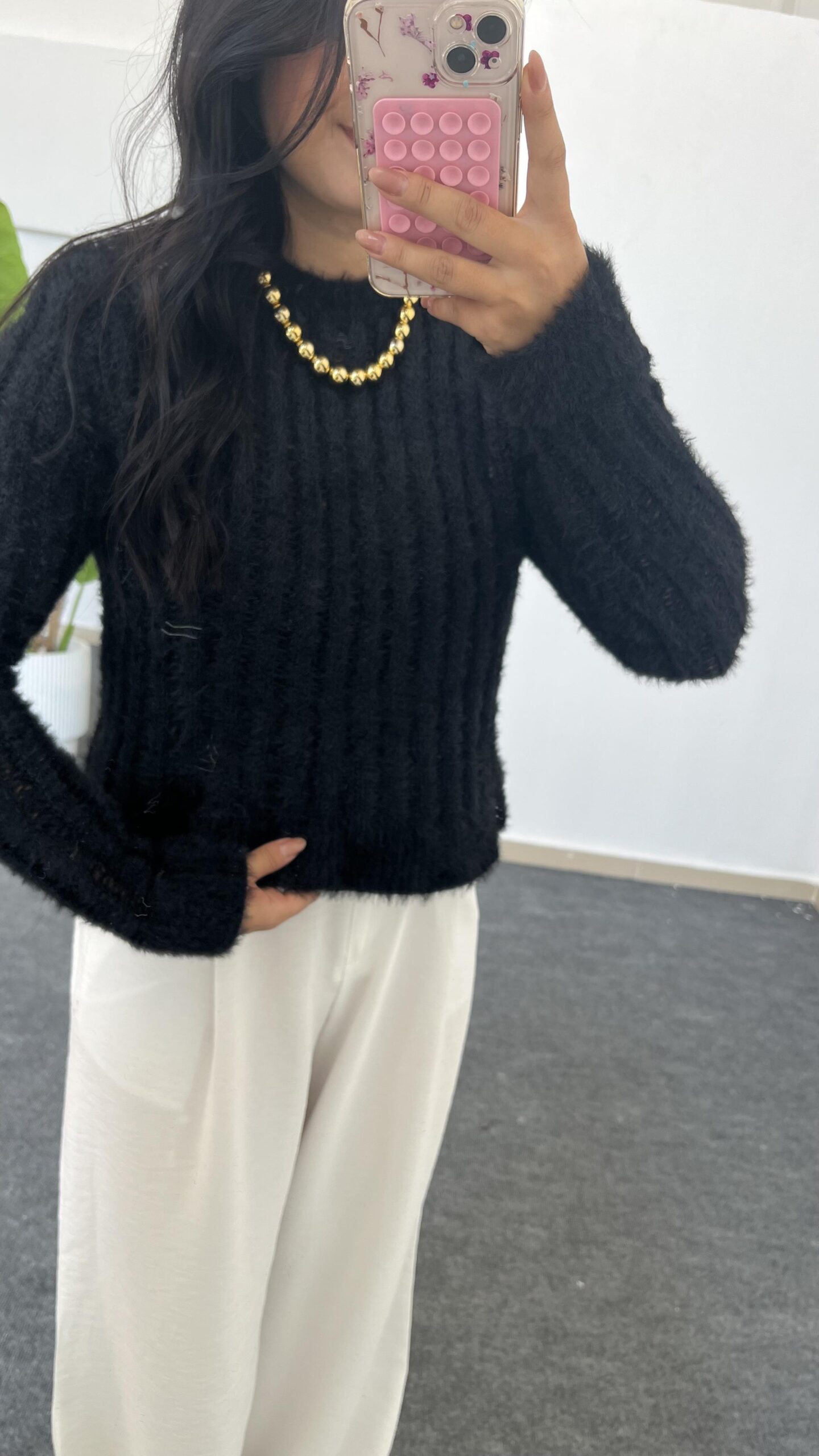 Hira Ajurlu Sakallı Triko Bluz – Siyah