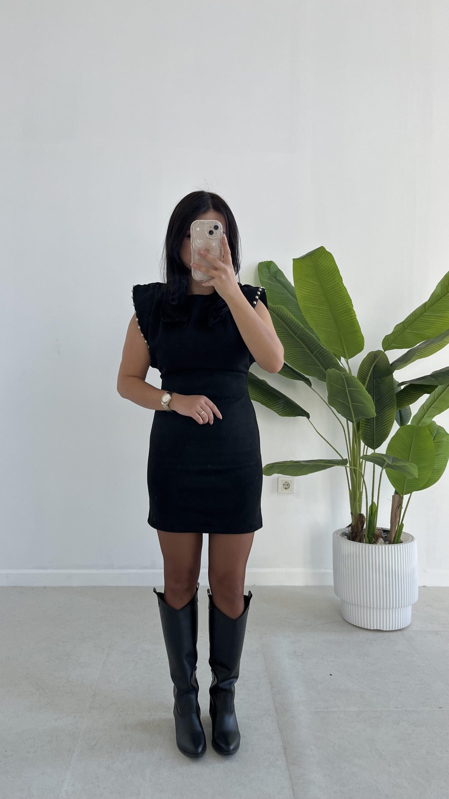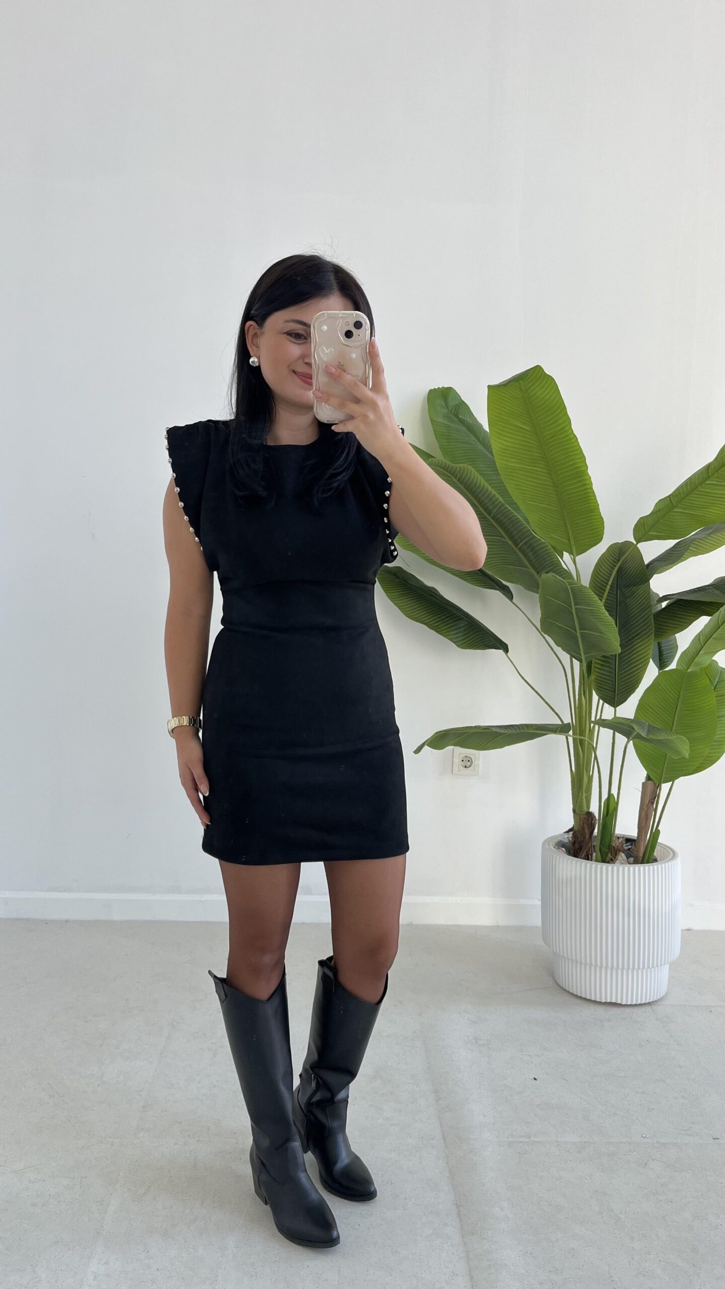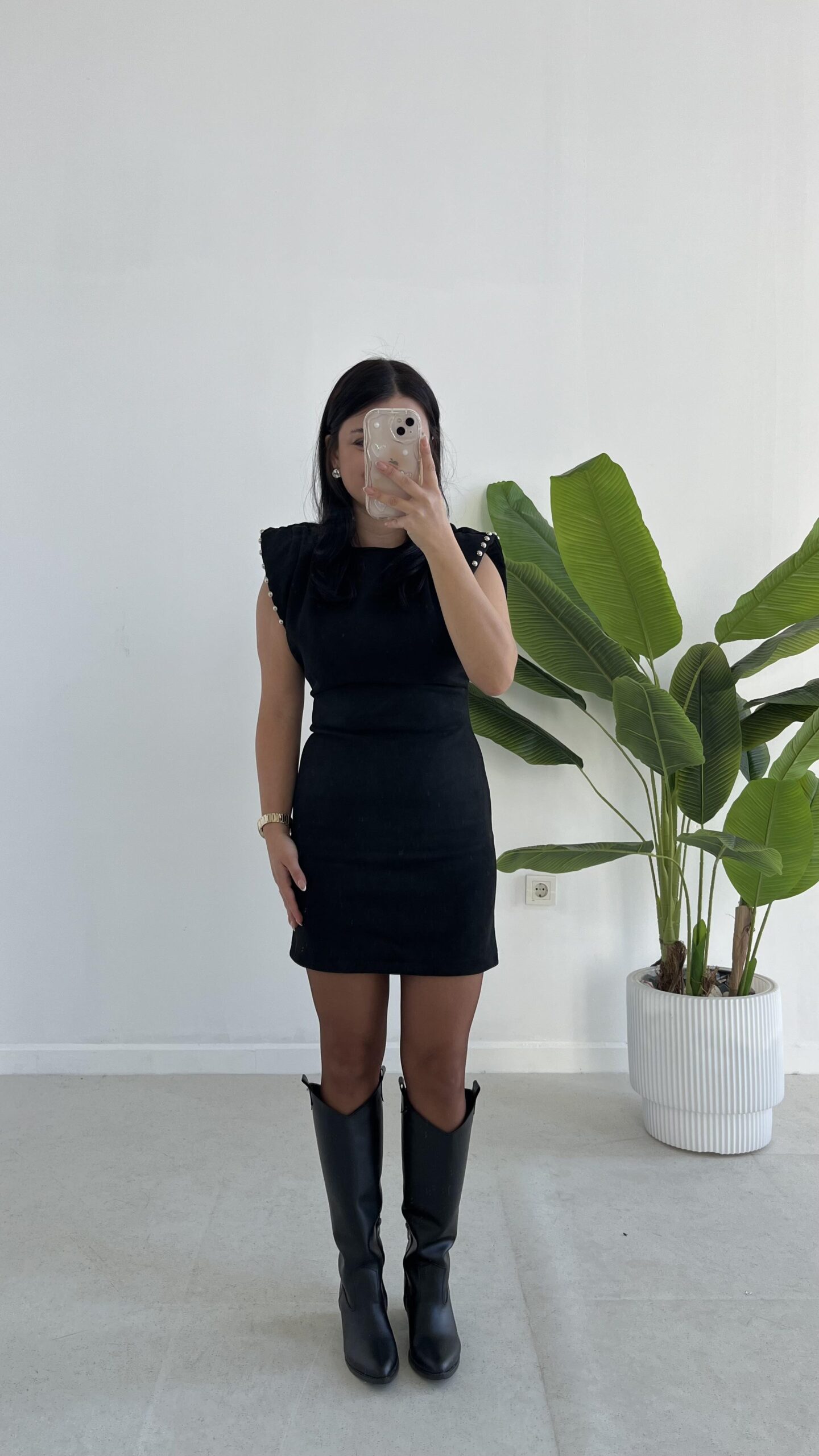 Andre Sırt Dekolteli Süet Mini Elbise – Siyah