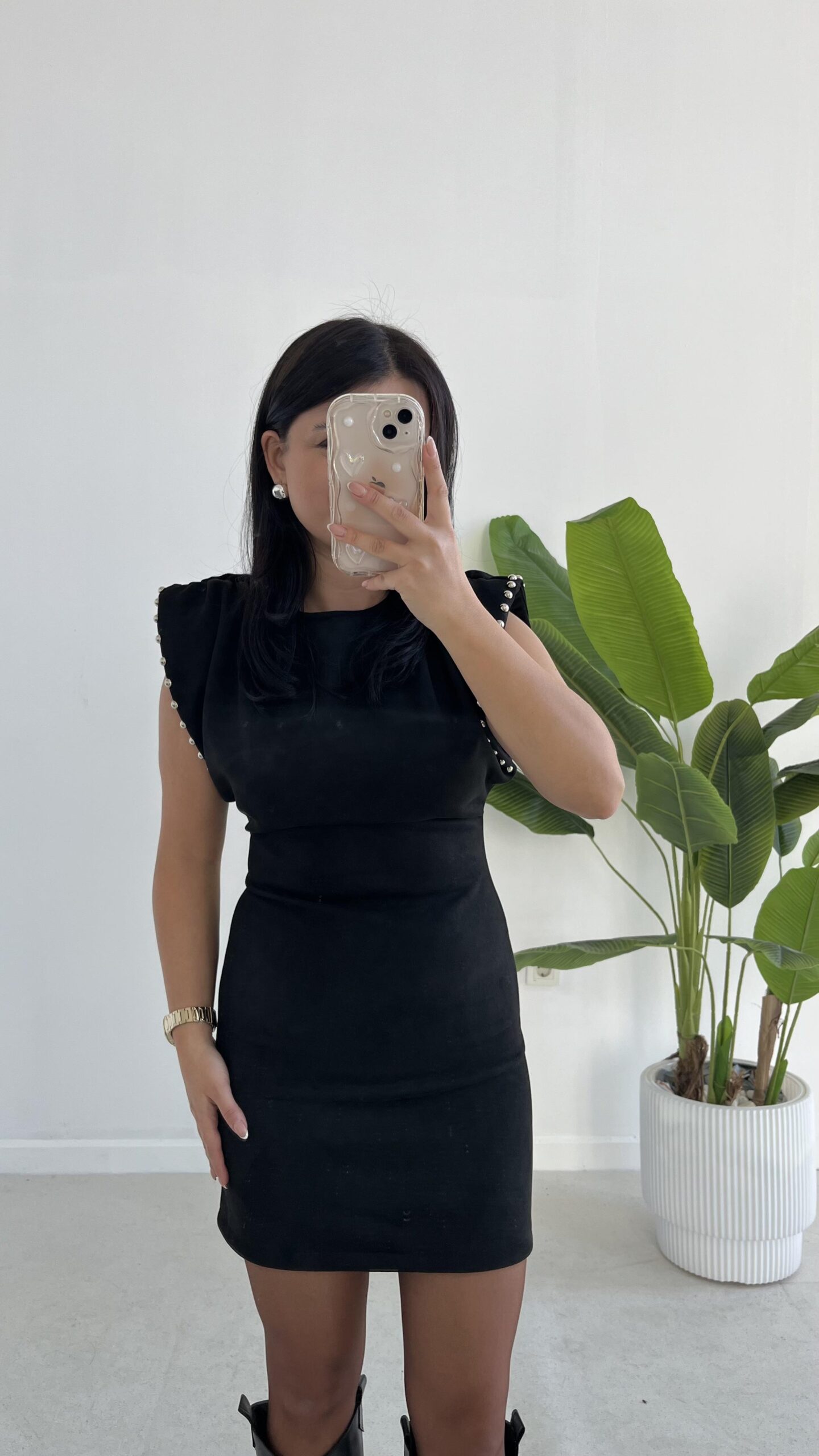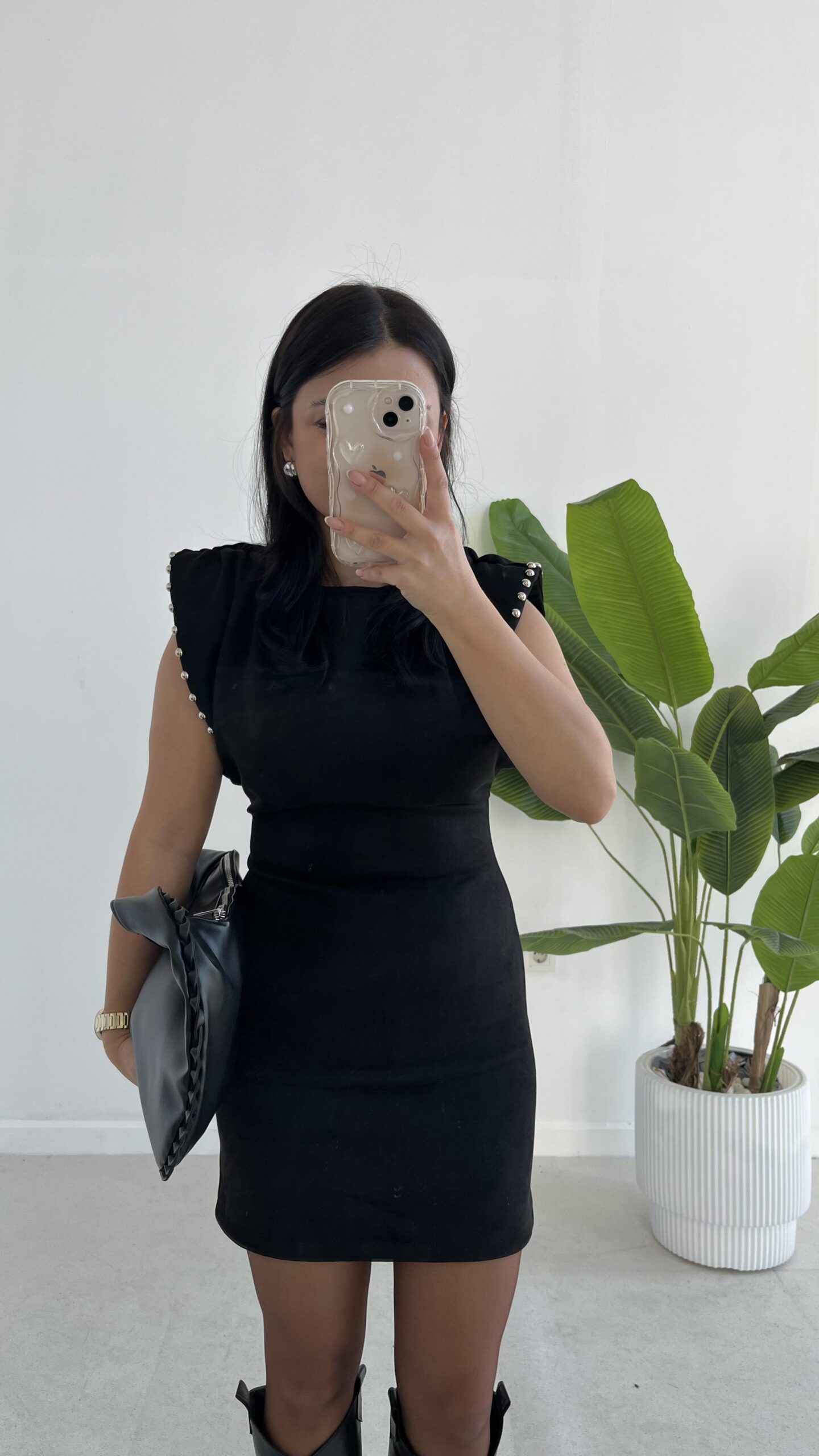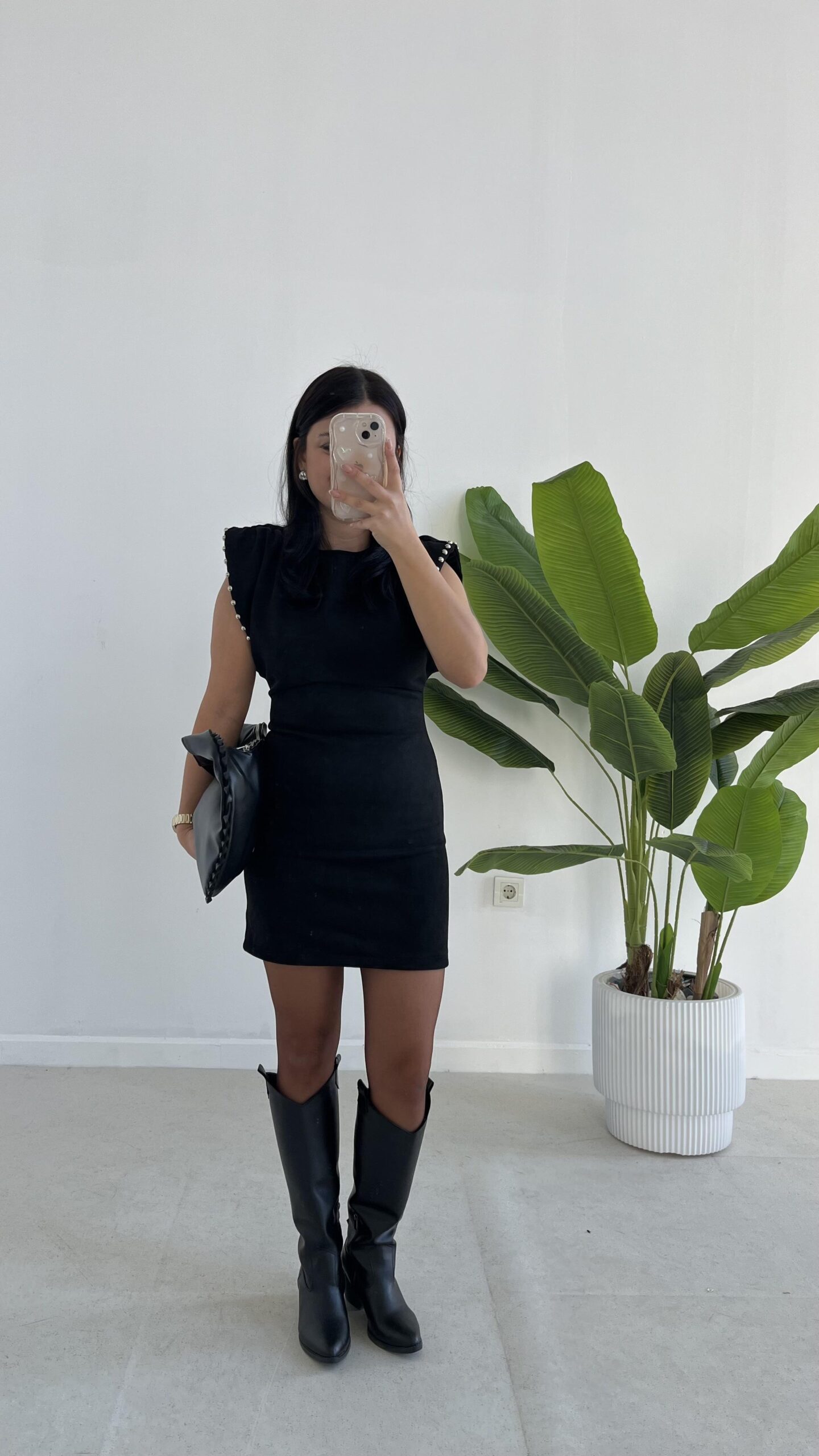 Andre Sırt Dekolteli Süet Mini Elbise – Siyah