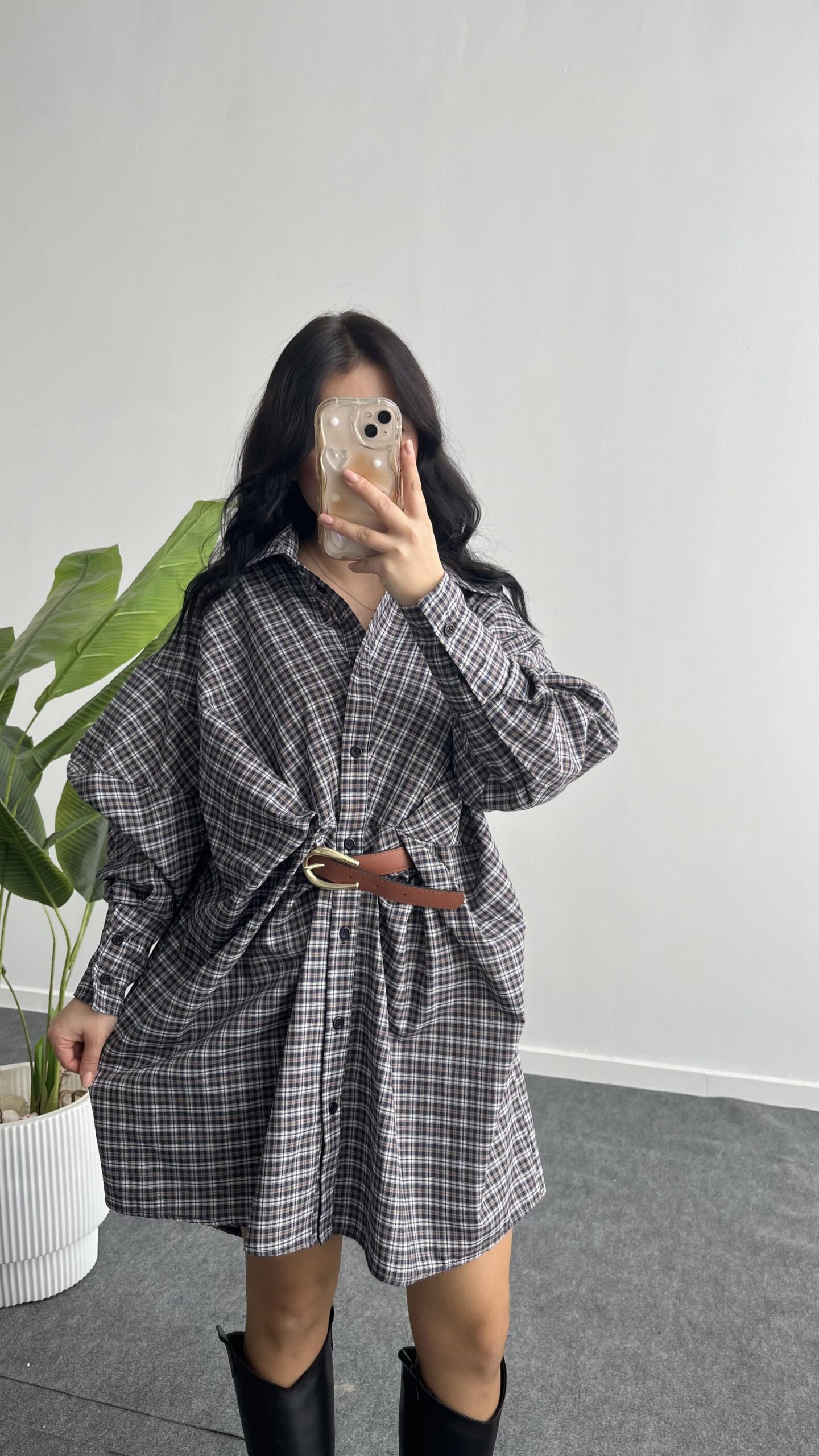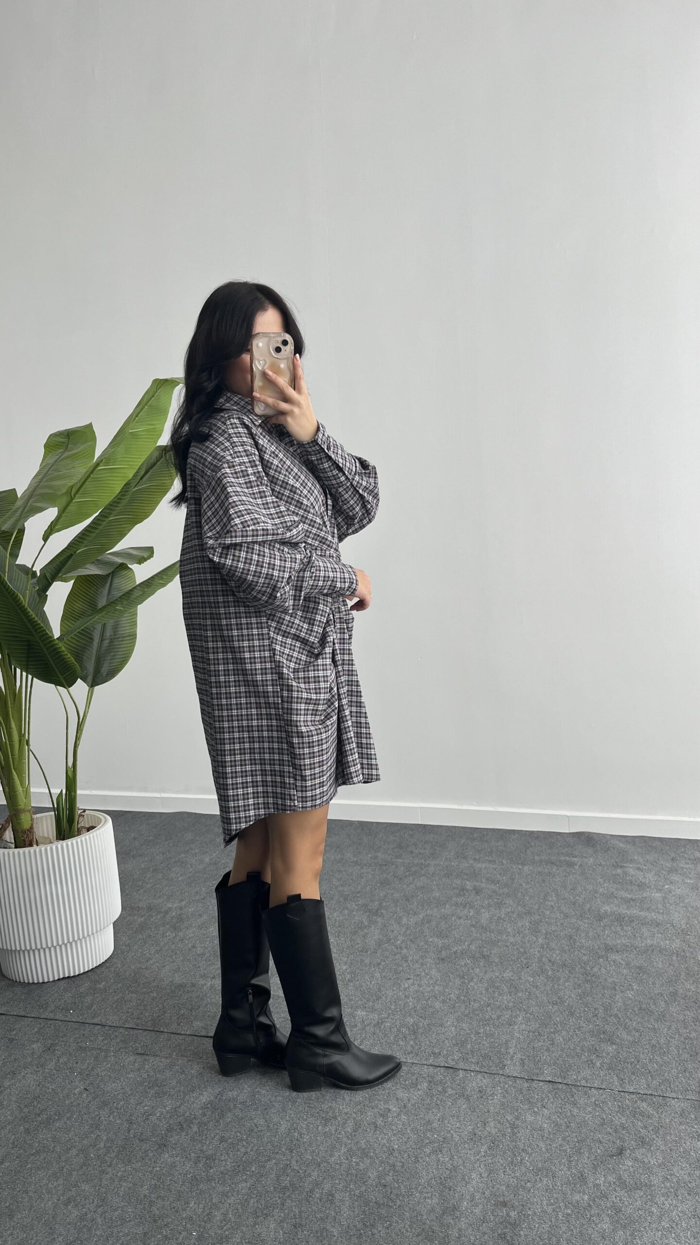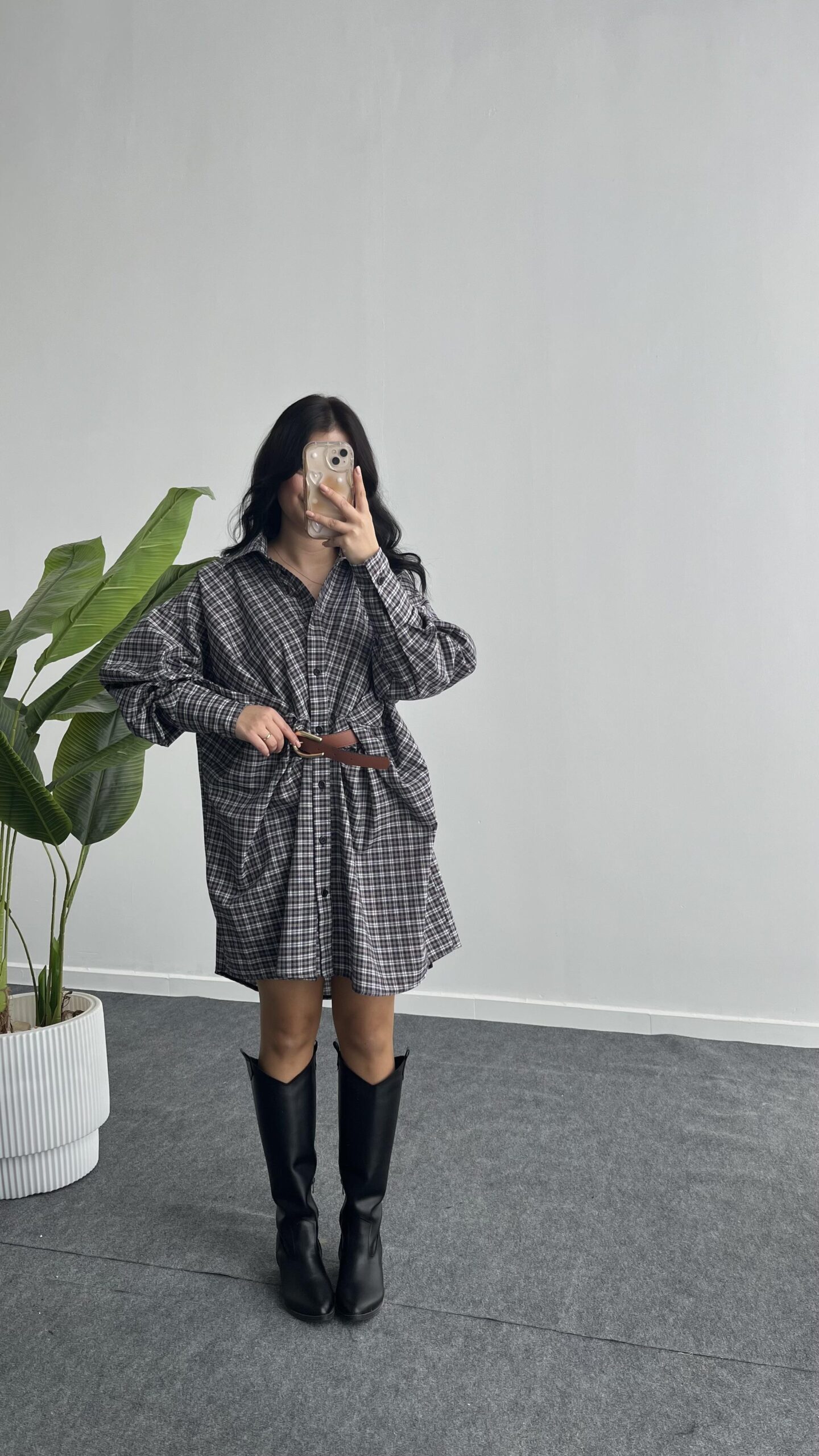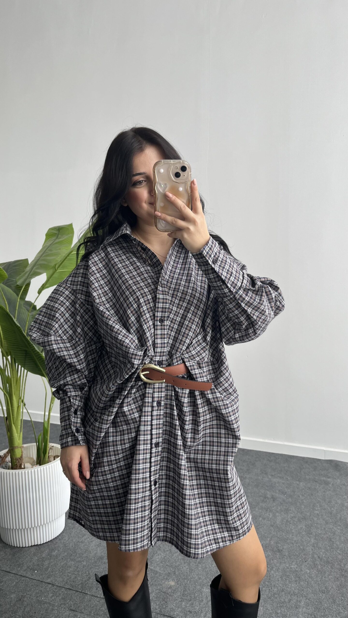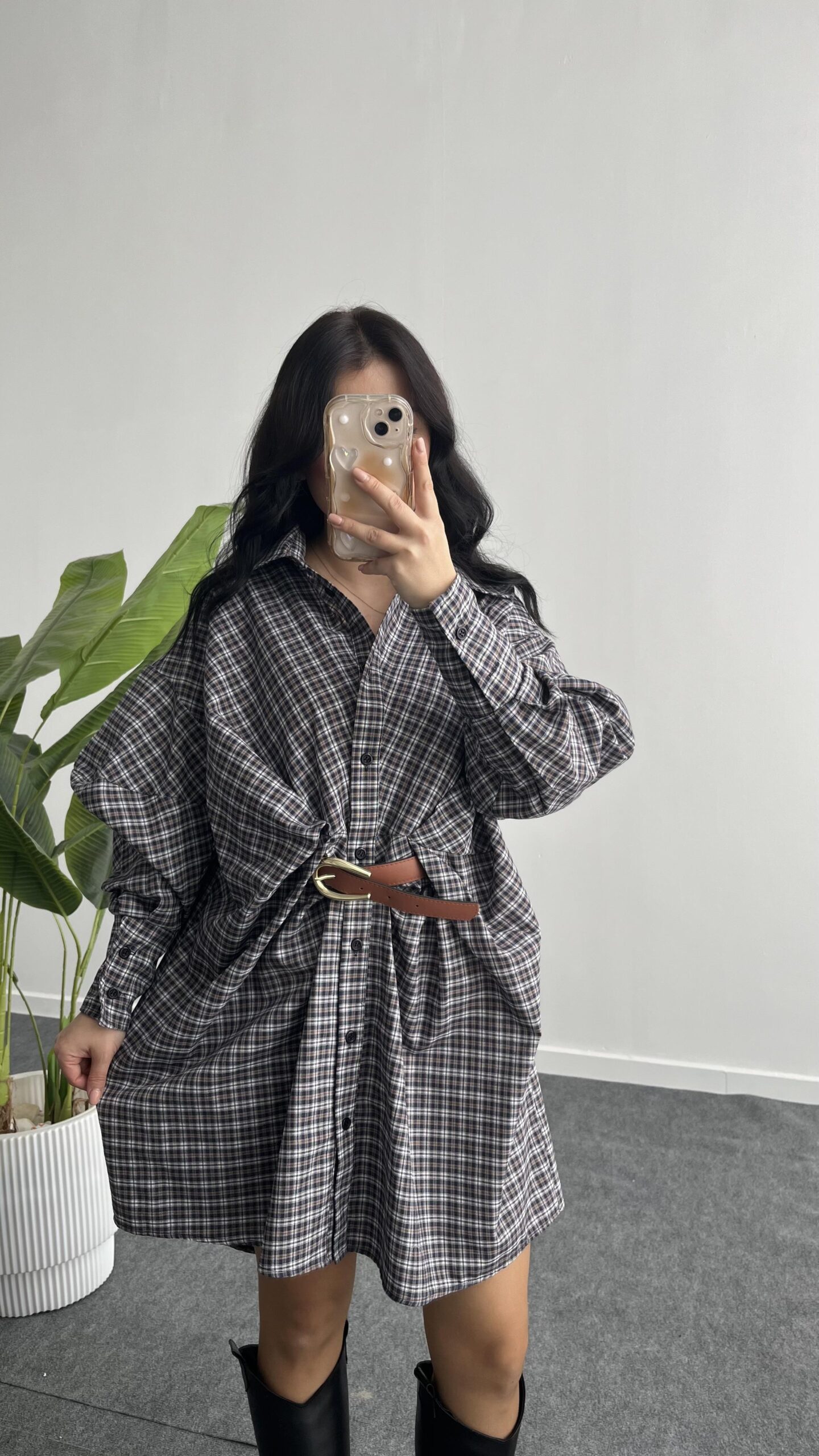 Avora Kemer Detaylı Oversize Gömlek Elbise – Kahve