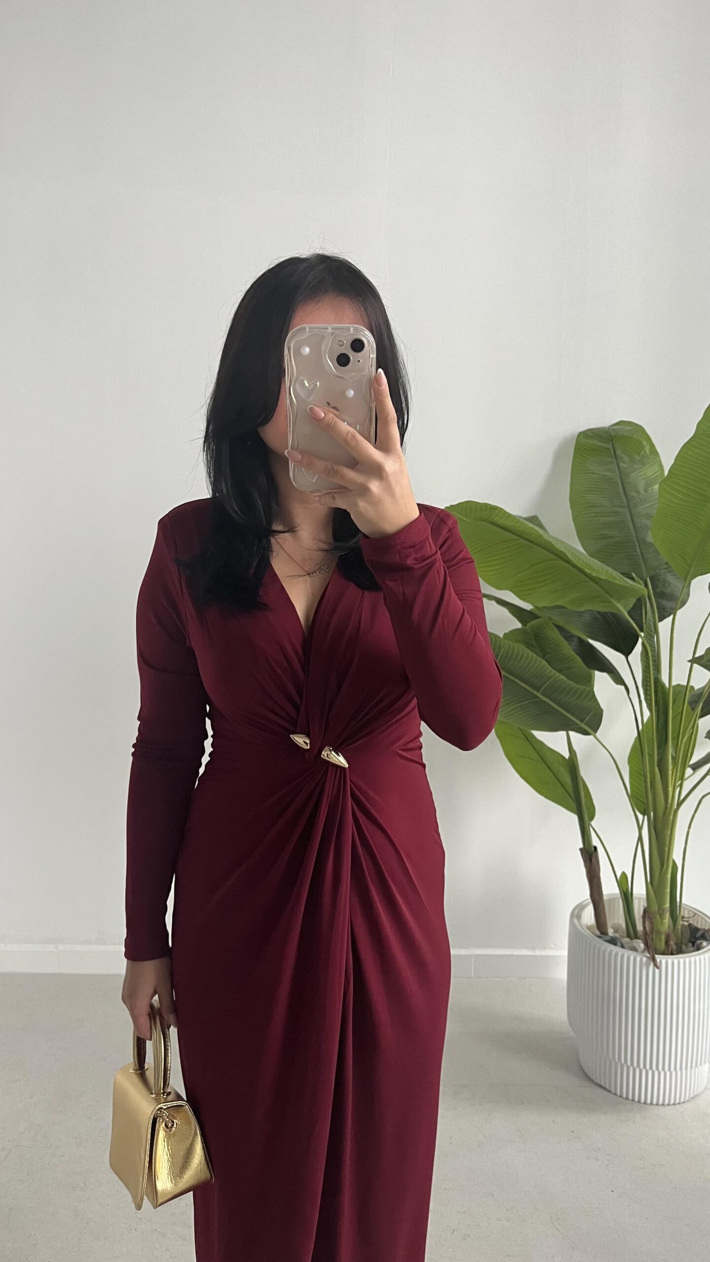 Melodi Gold Aksesuarlı Elbise – Bordo