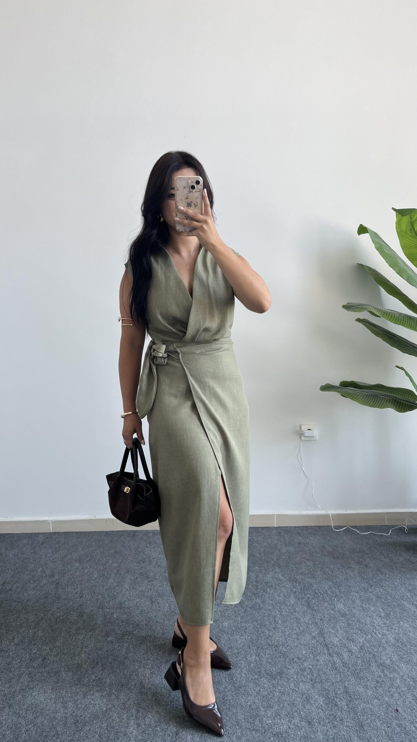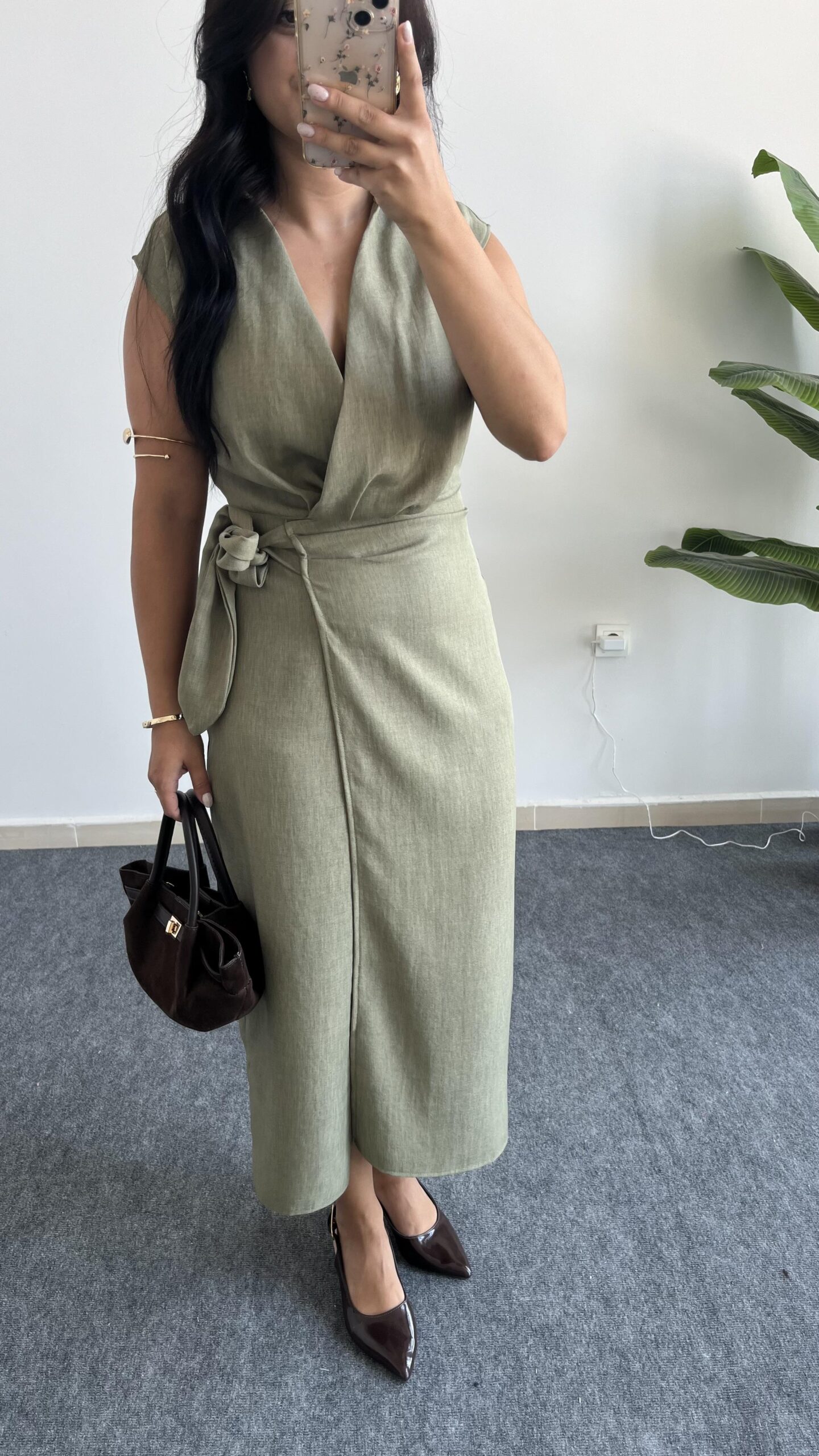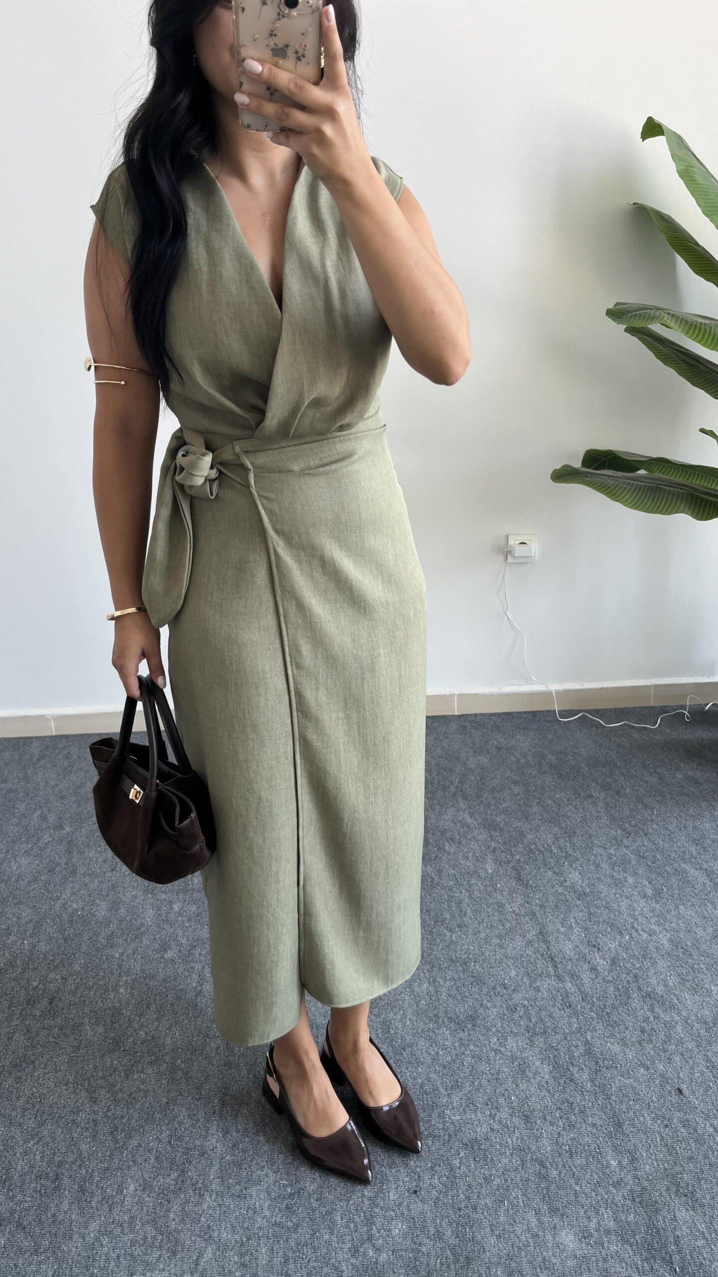 Palma Kruvaze Yaka Anvelop Elbise – Haki
