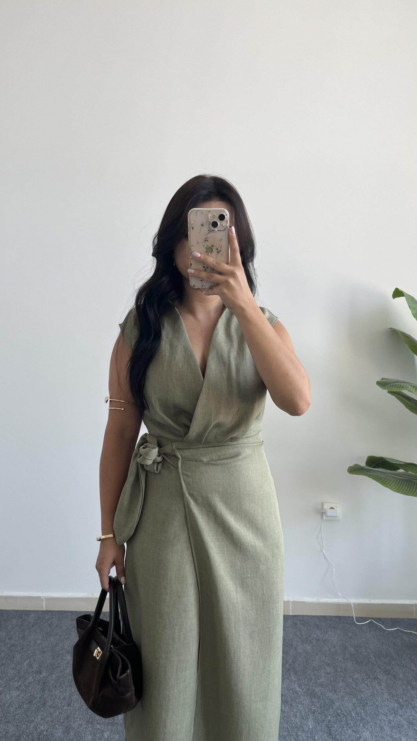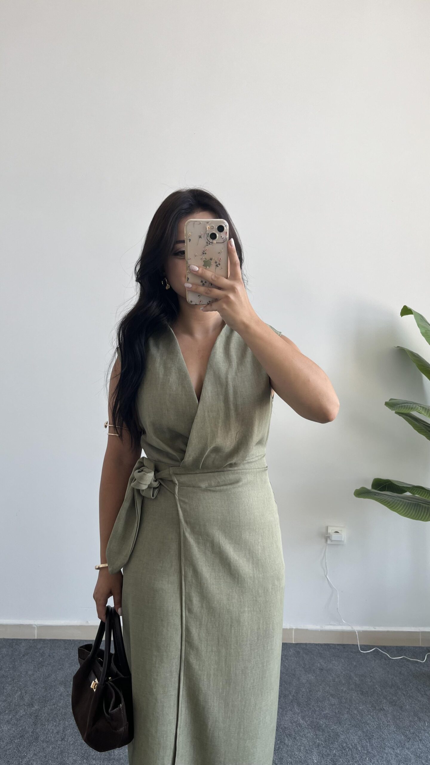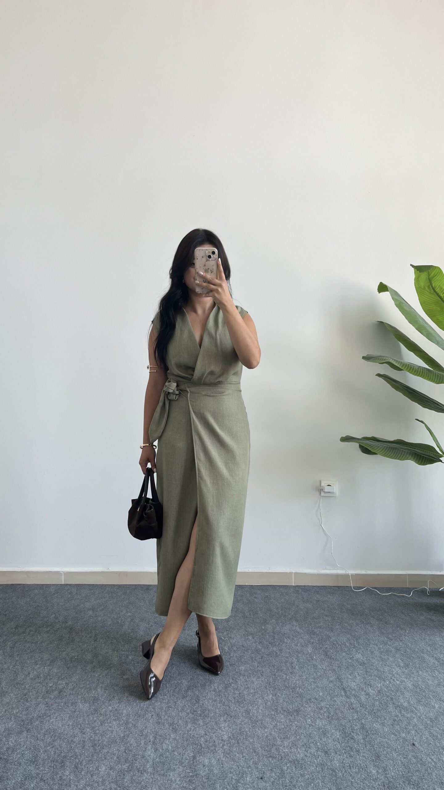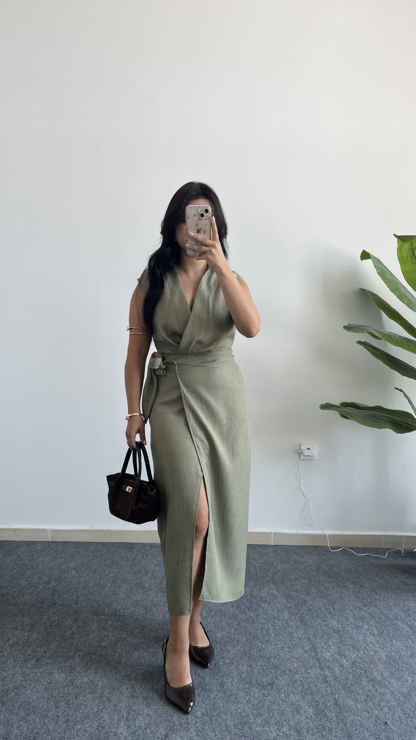 Palma Kruvaze Yaka Anvelop Elbise – Haki