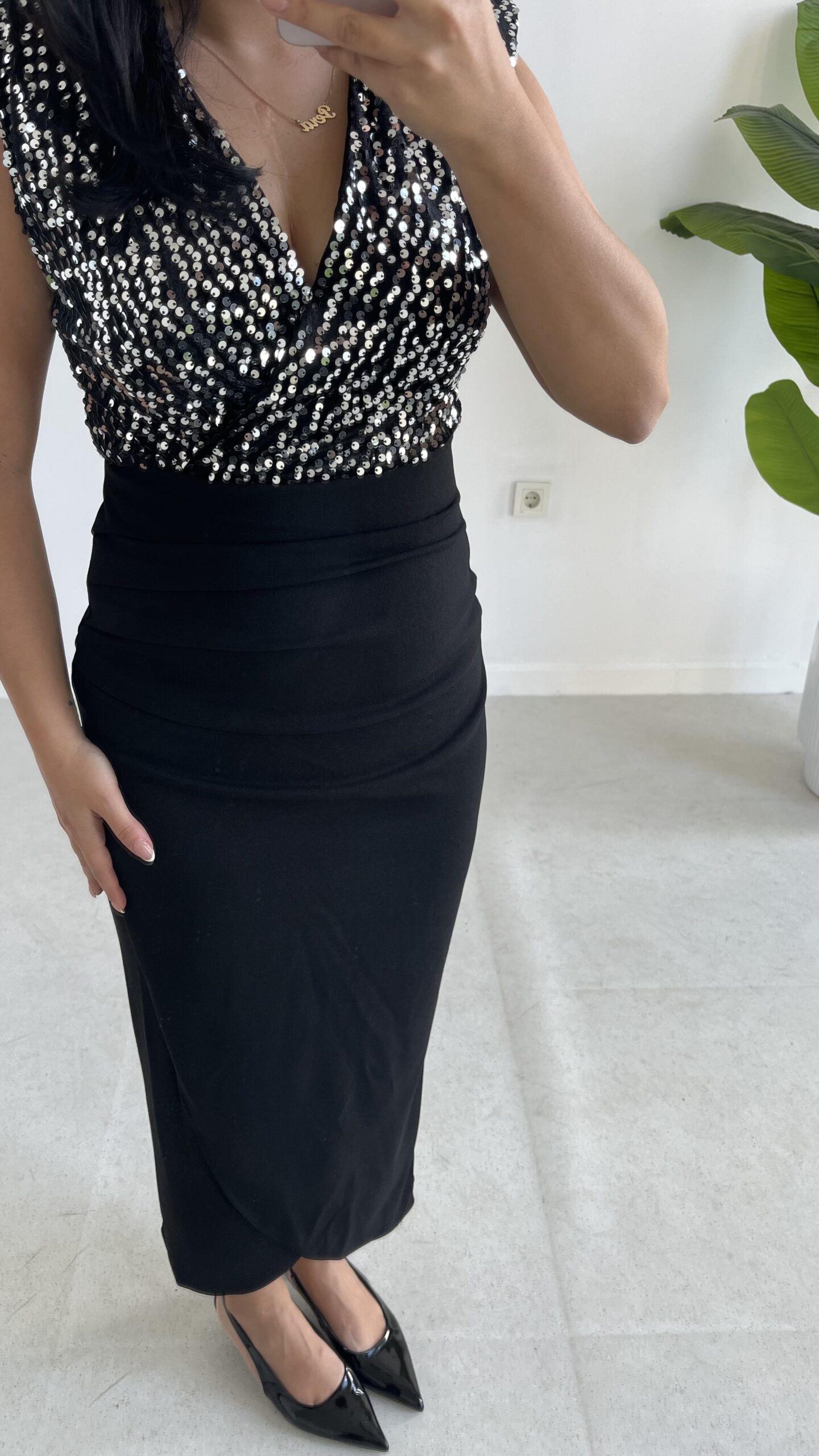 Pul Payet Kruvaze Anvelop Elbise – Gümüş