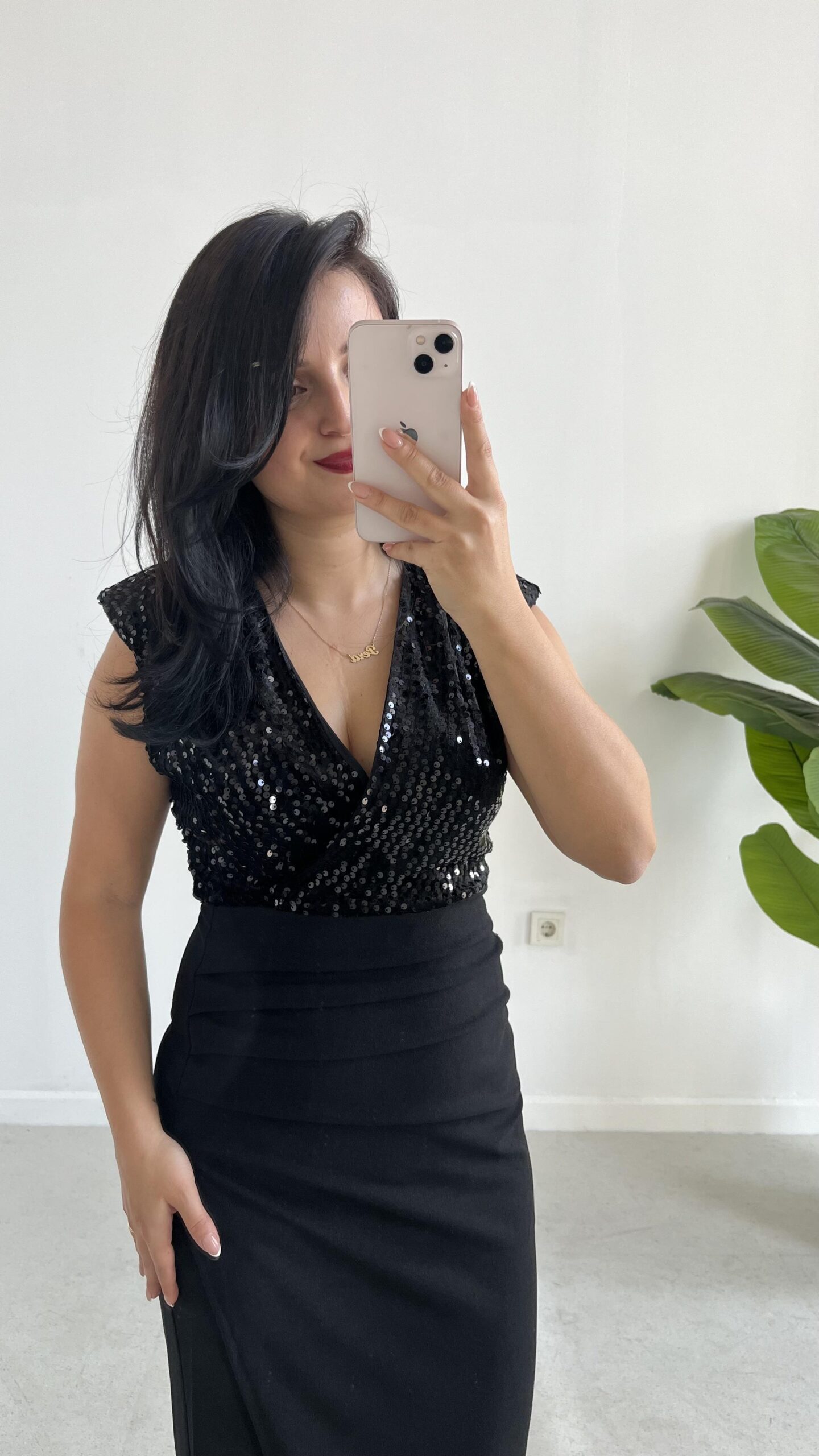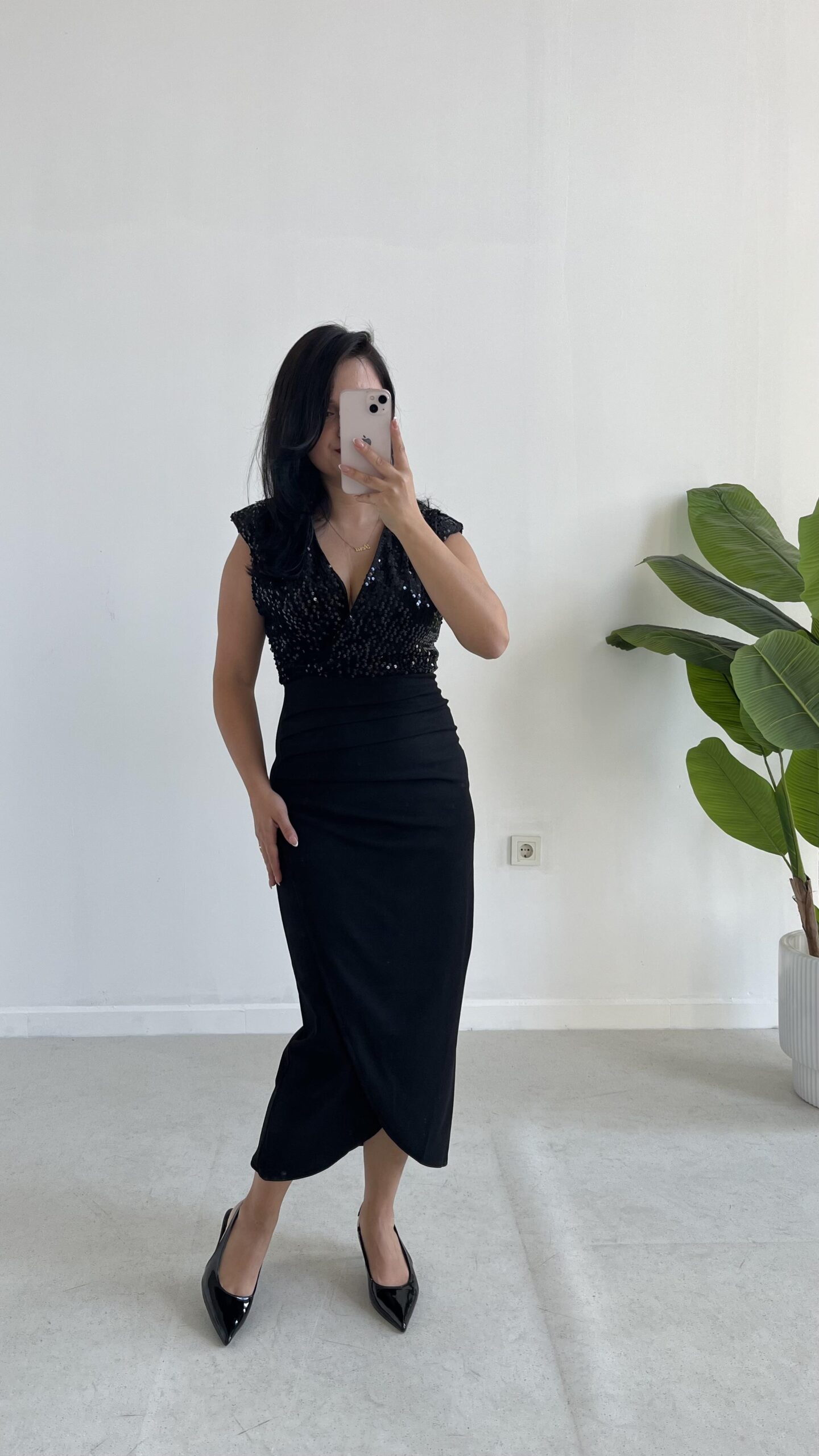 Pul Payet Kruvaze Anvelop Elbise – Siyah