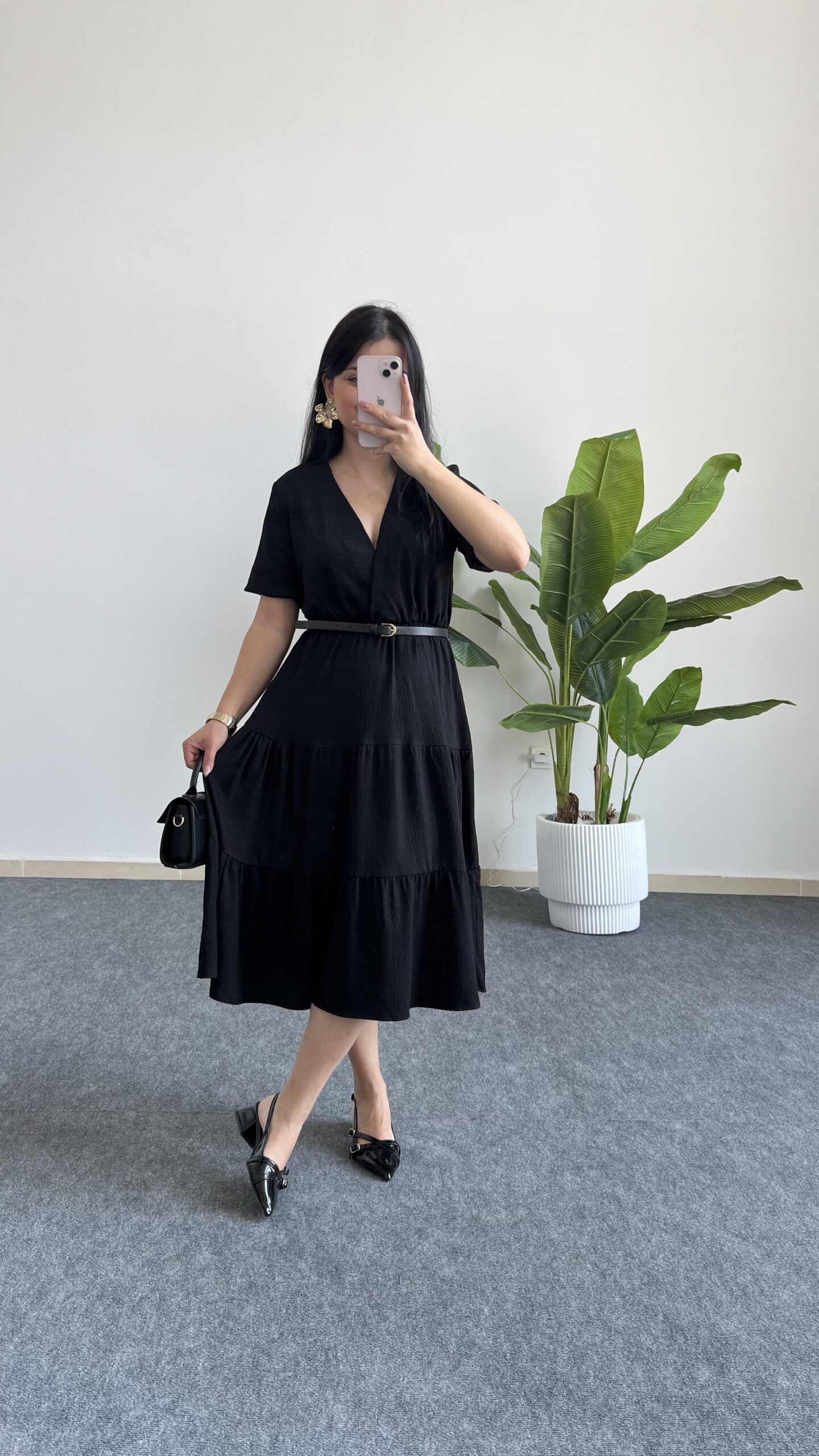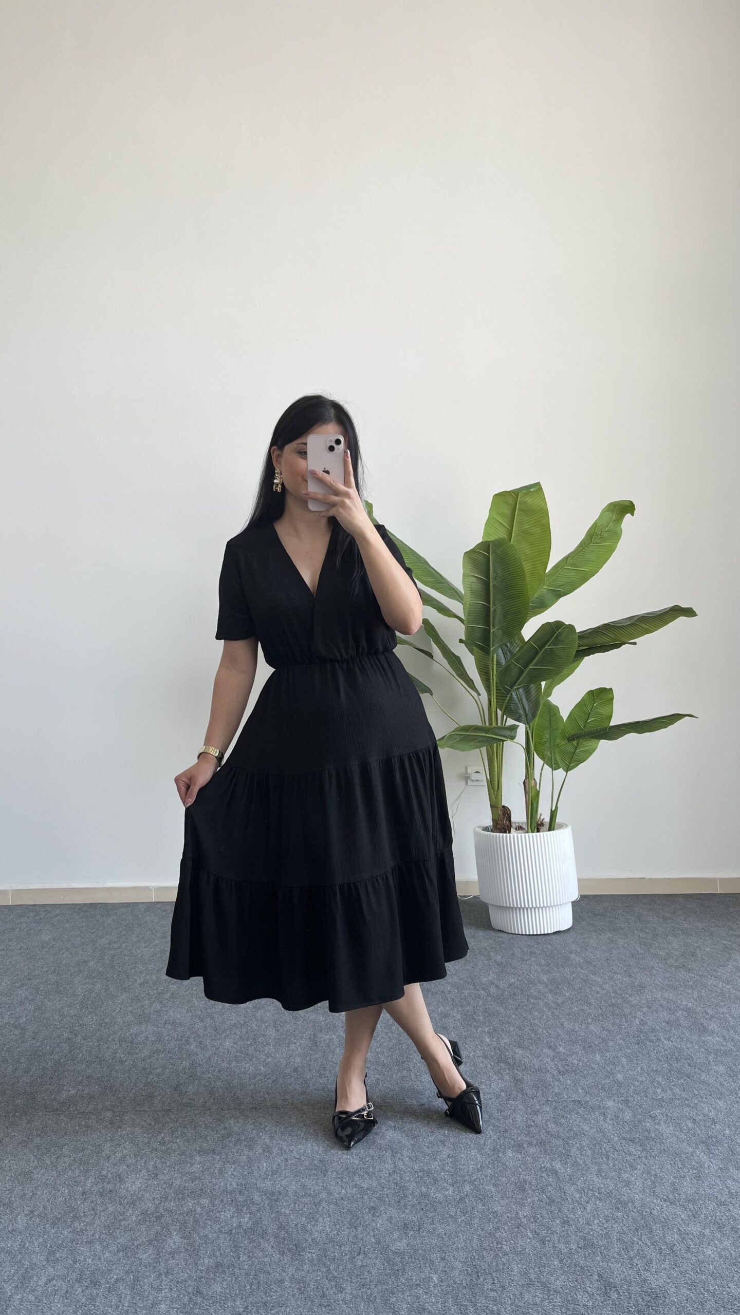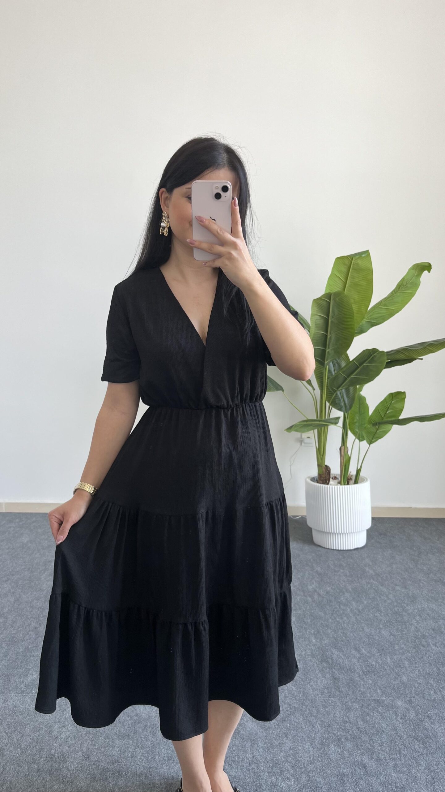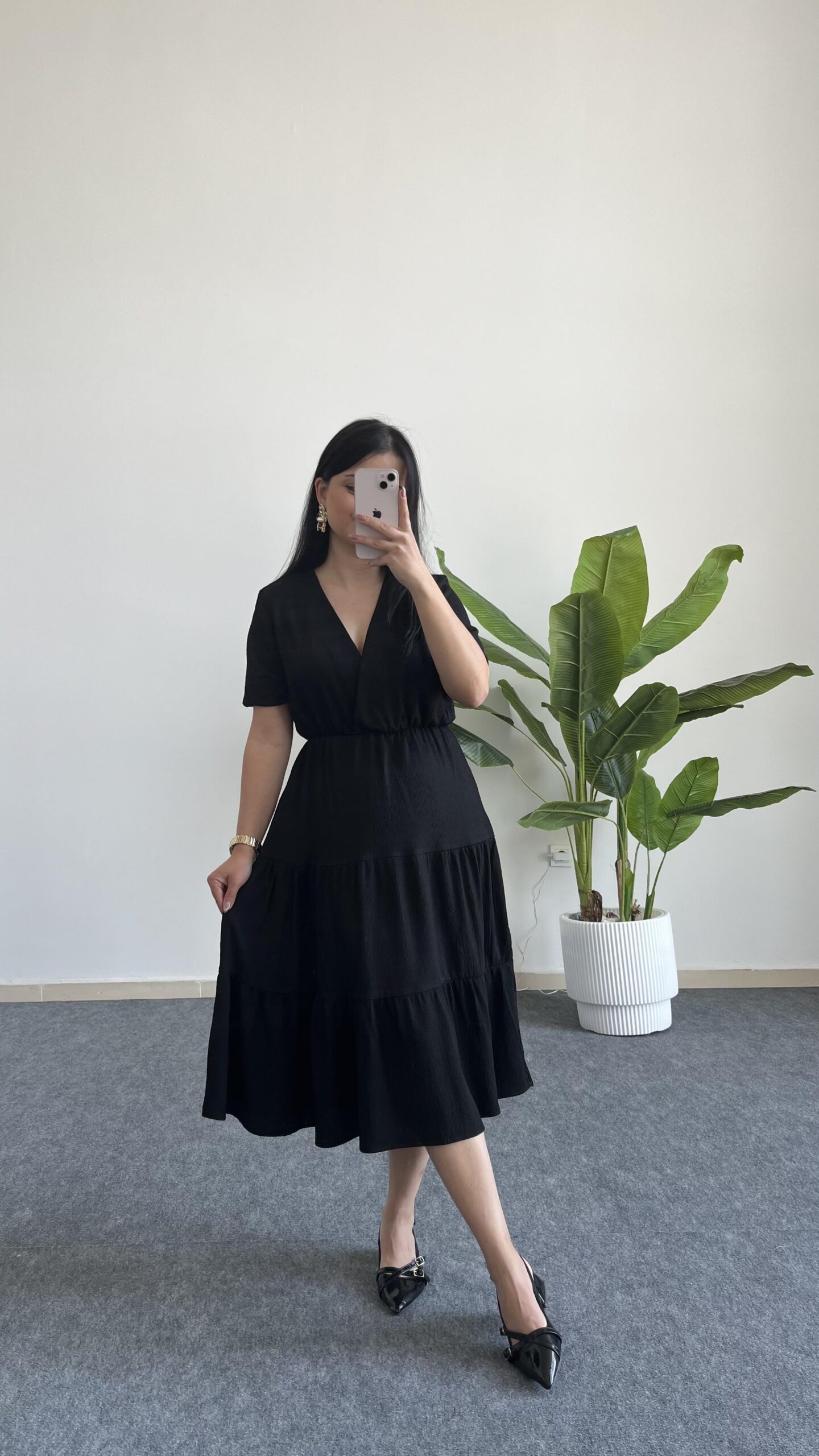 Rüya Kruvaze Yaka Volanlı Elbise – Siyah
