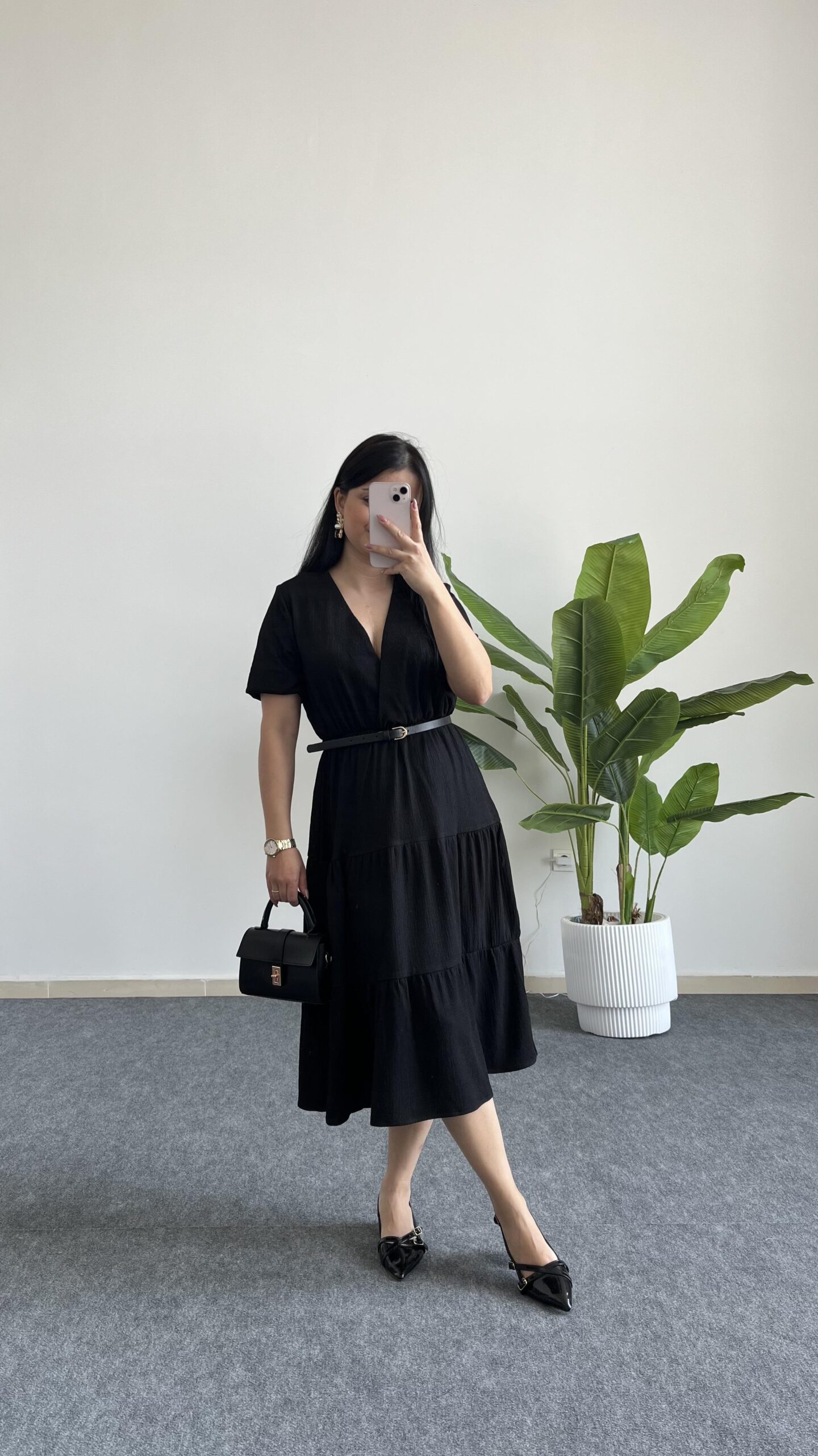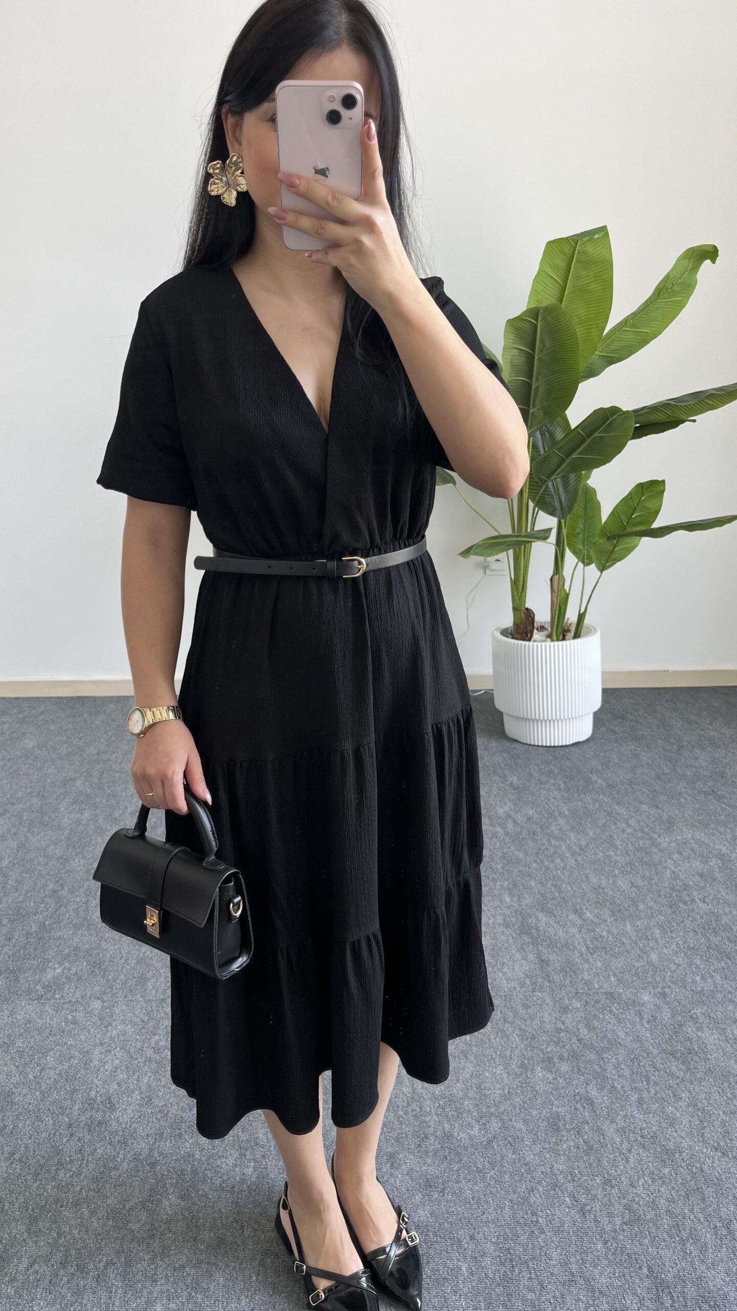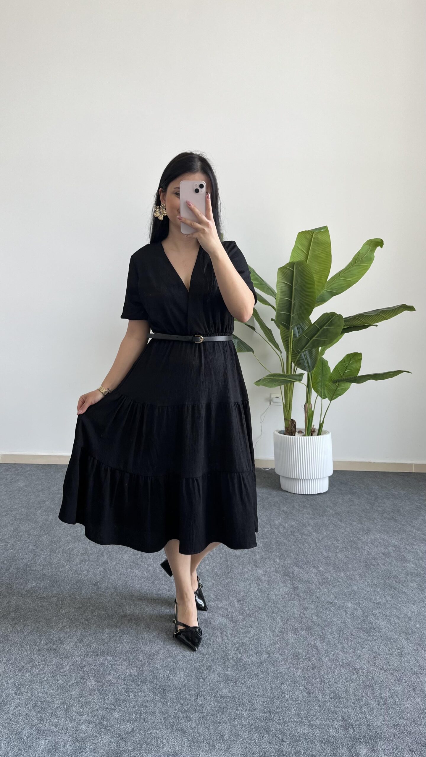 Rüya Kruvaze Yaka Volanlı Elbise – Siyah