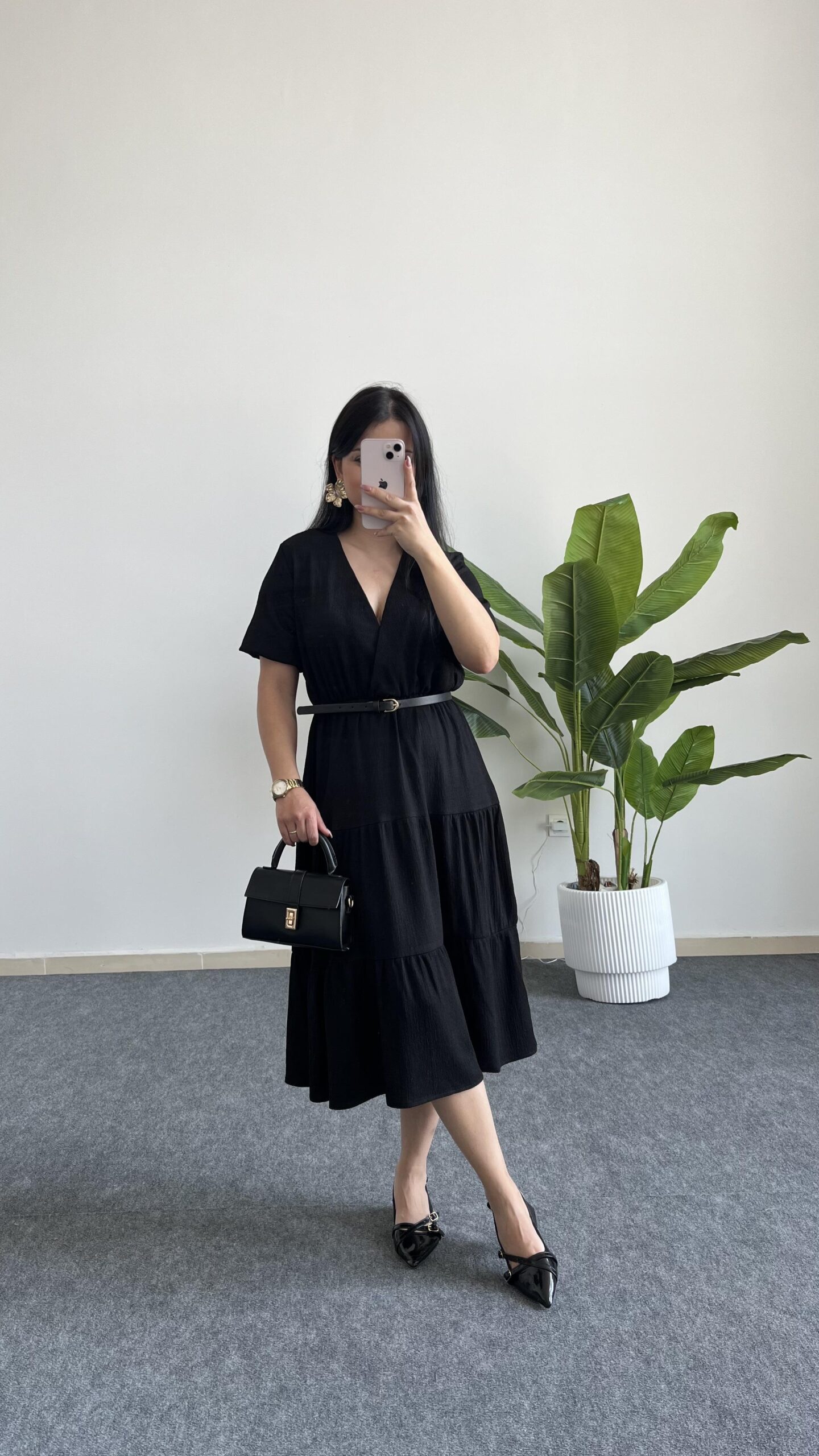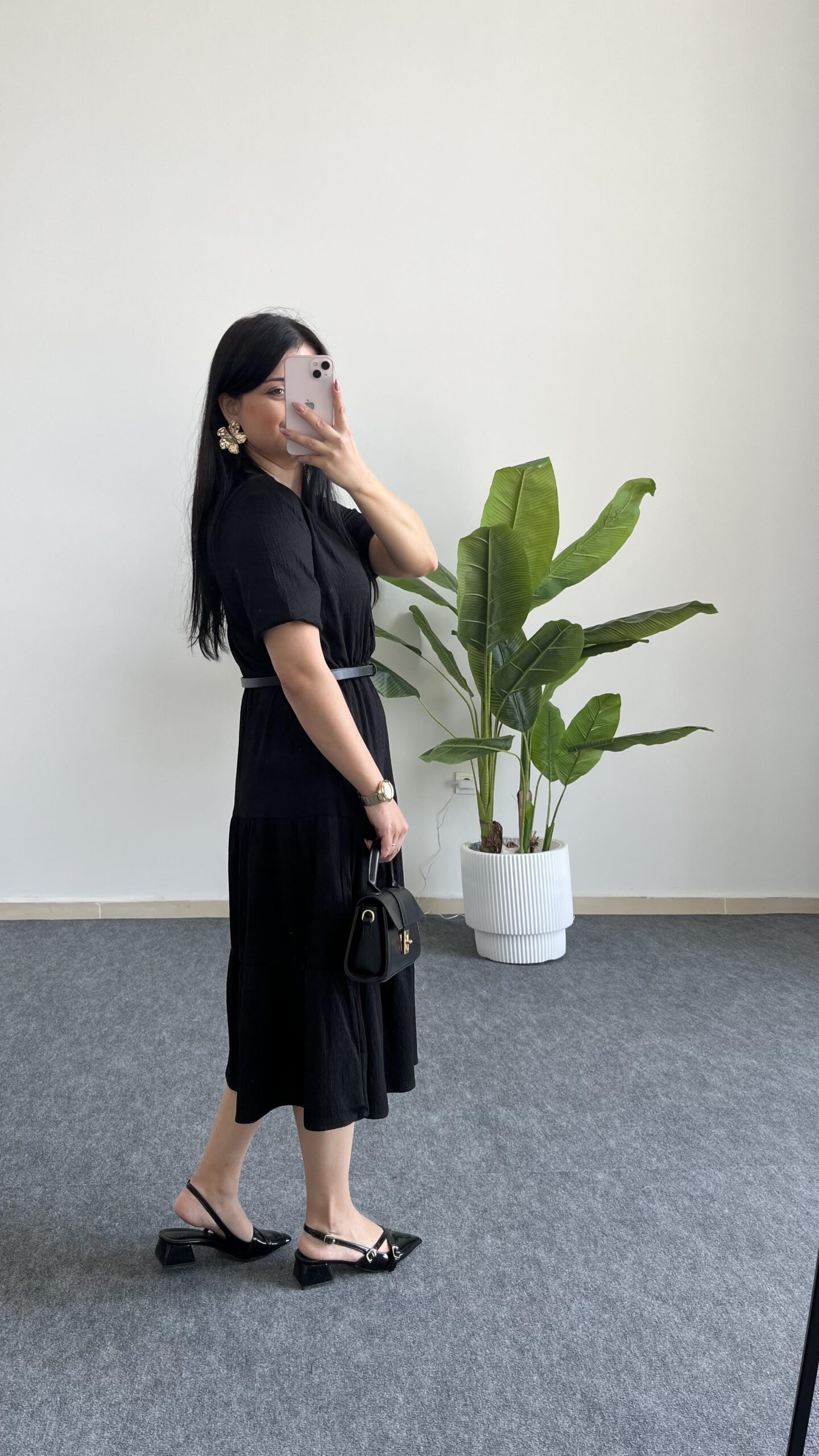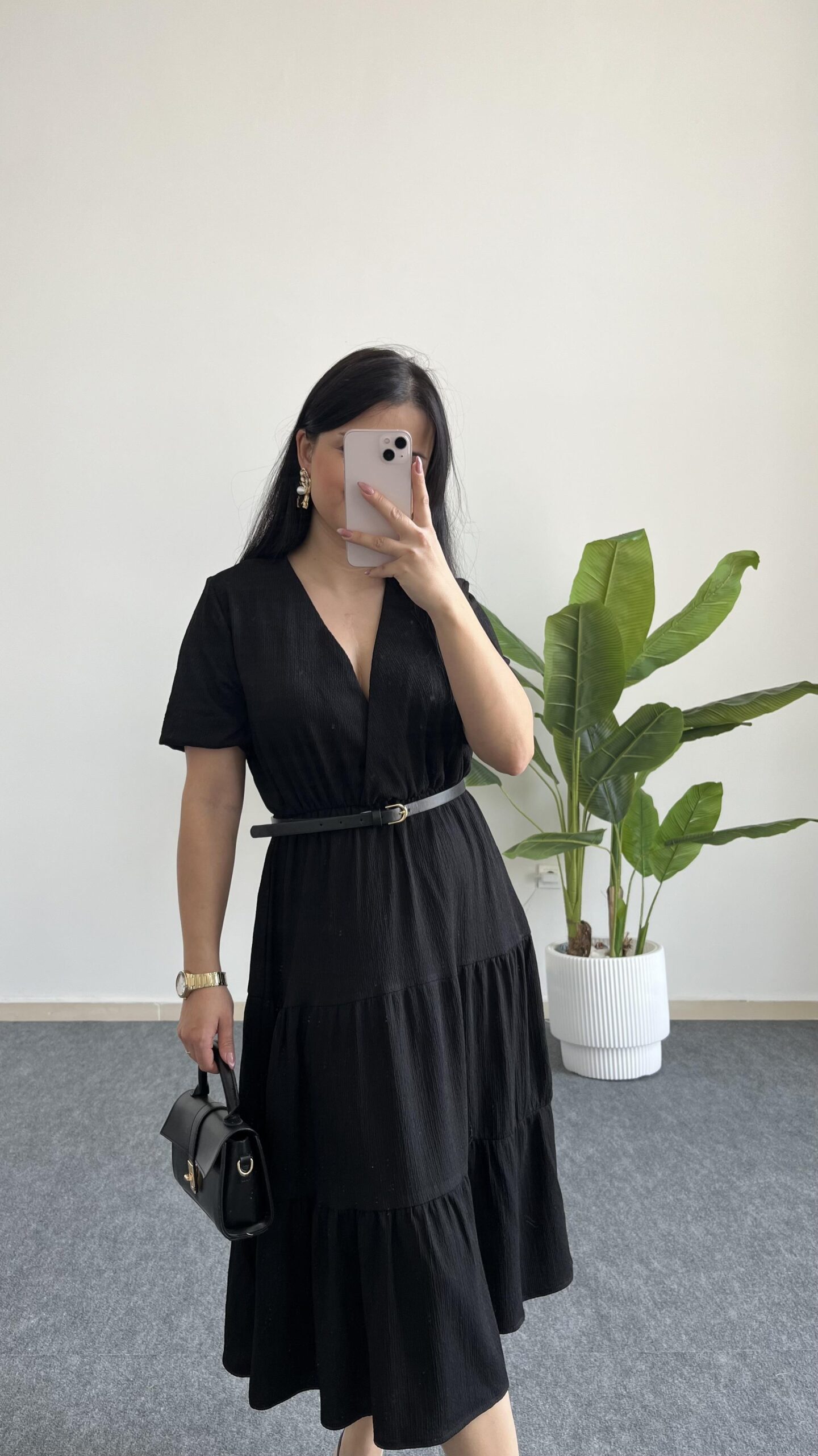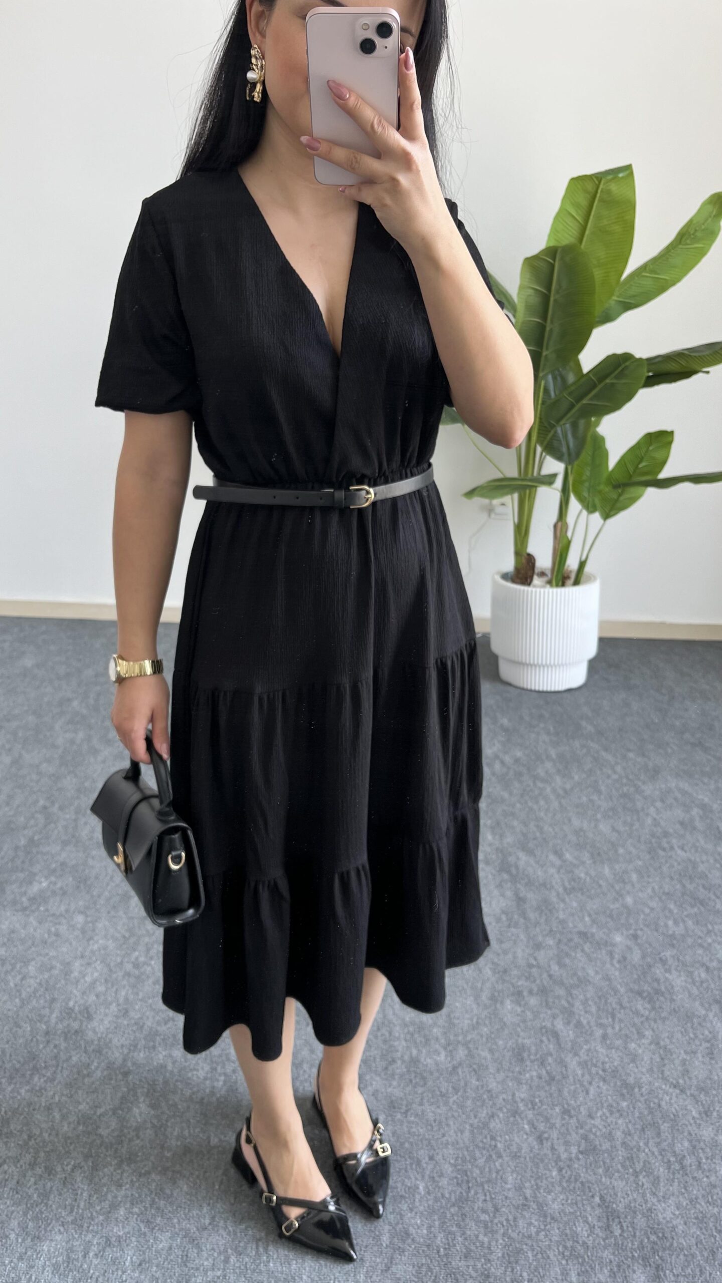 Rüya Kruvaze Yaka Volanlı Elbise – Siyah