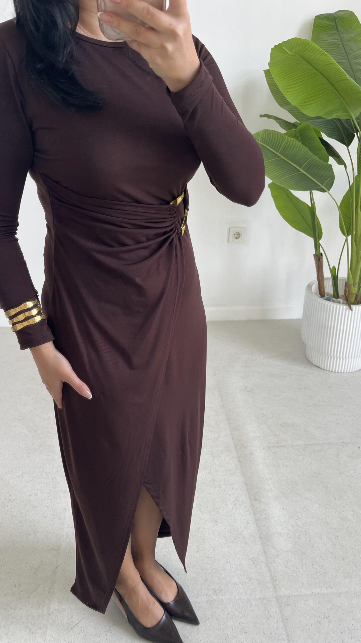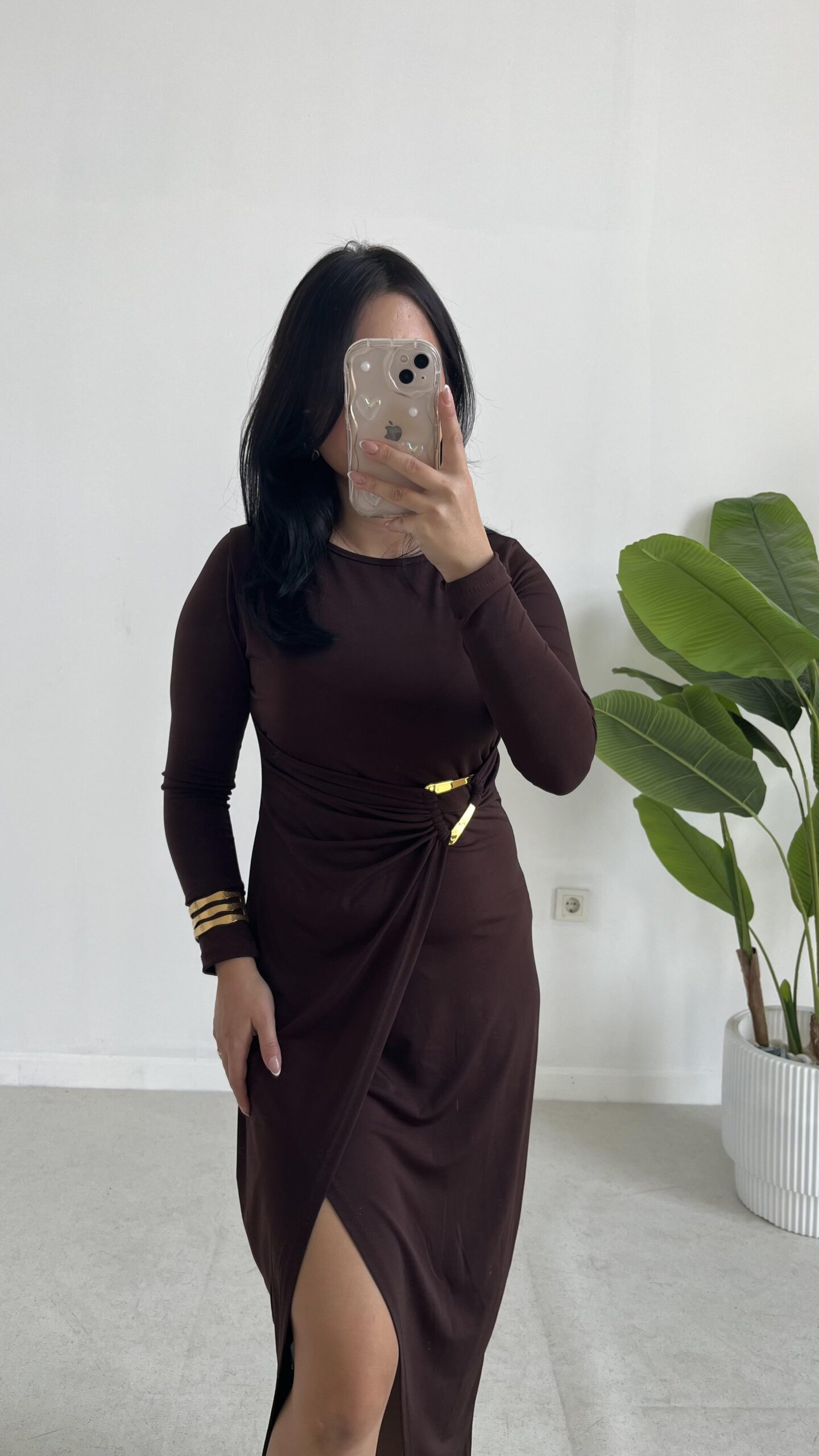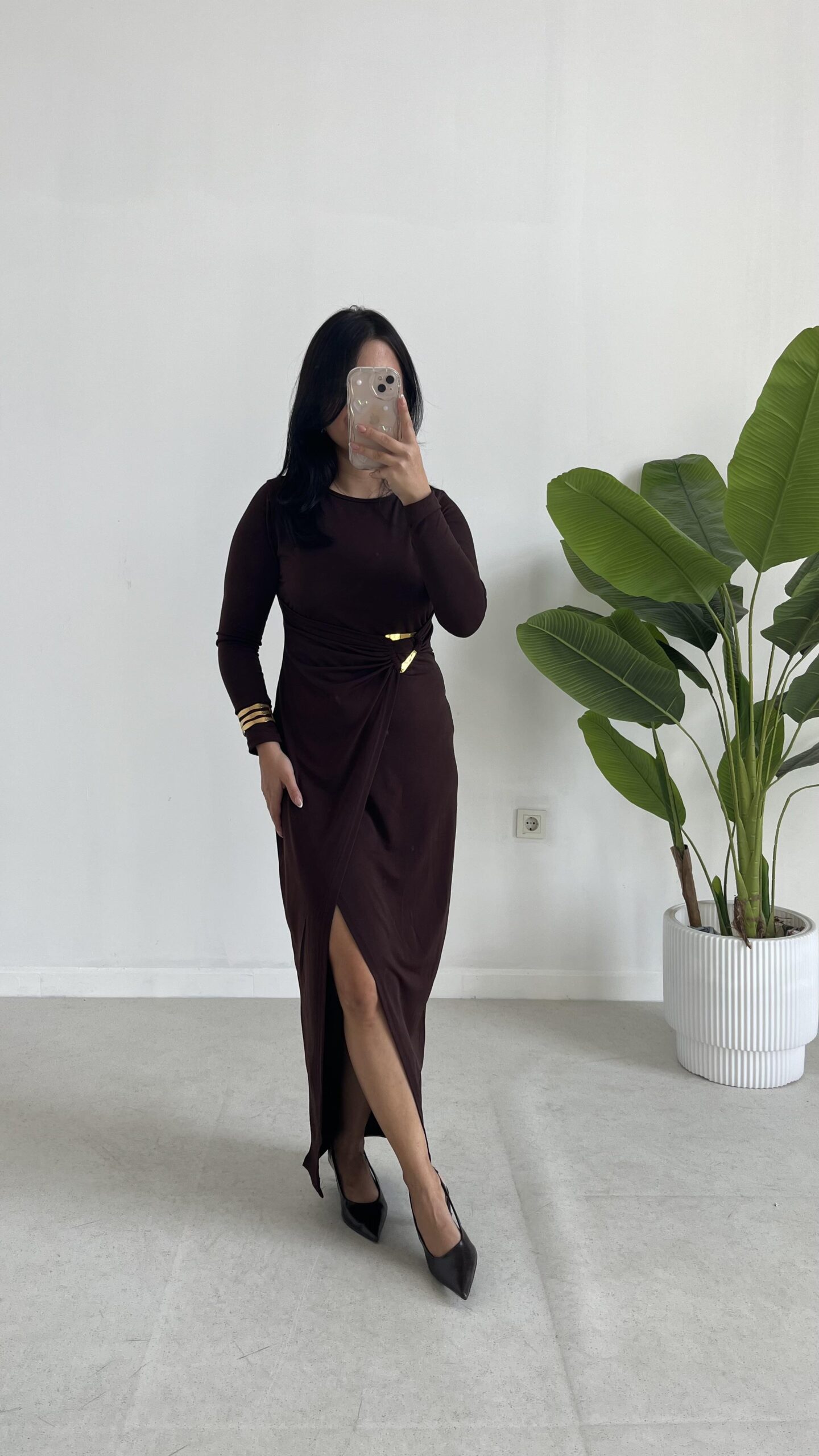 Setra Gold Toka Detaylı Anvelop Elbise – Kahve