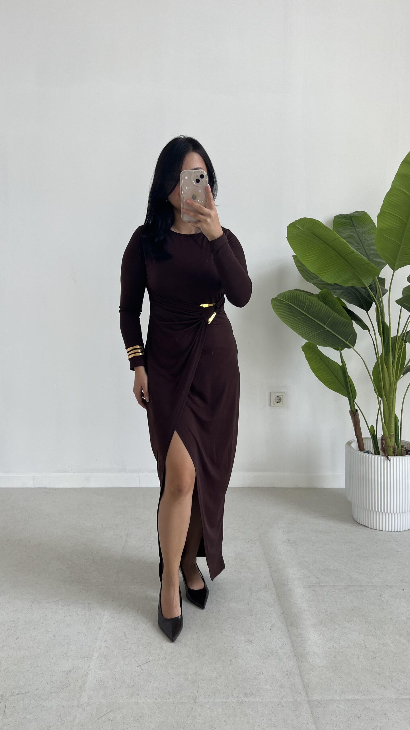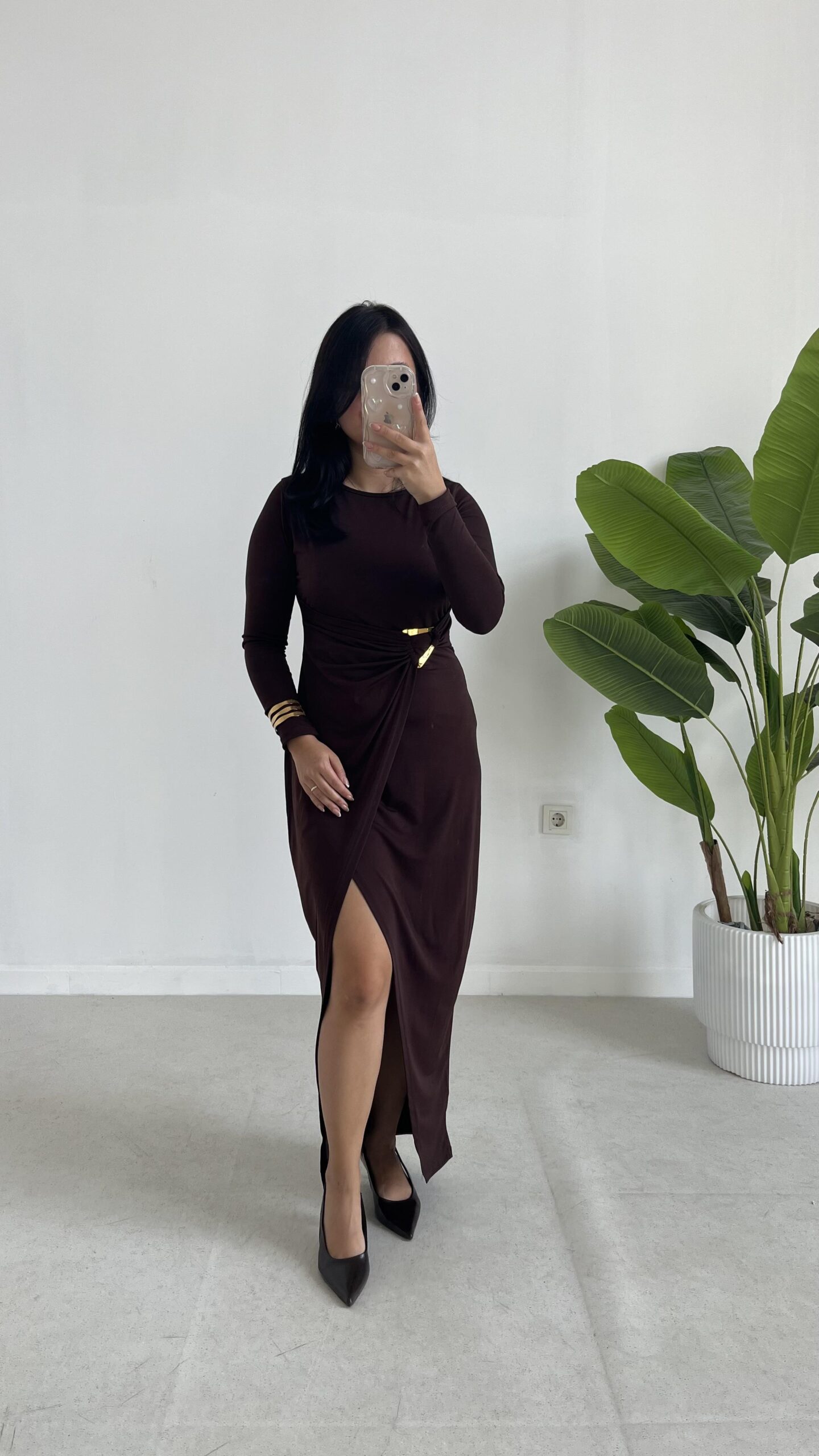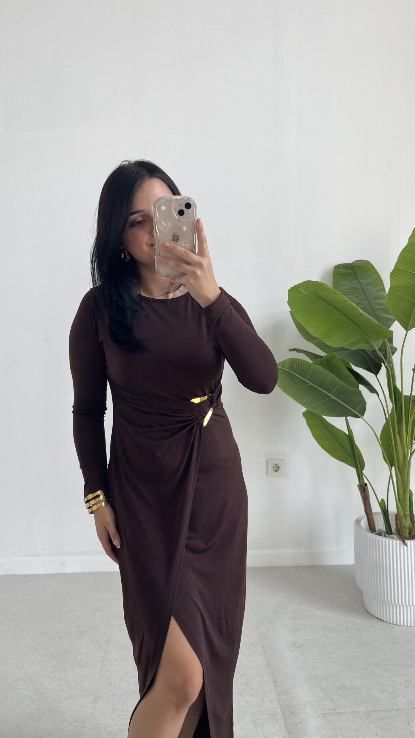 Setra Gold Toka Detaylı Anvelop Elbise – Kahve