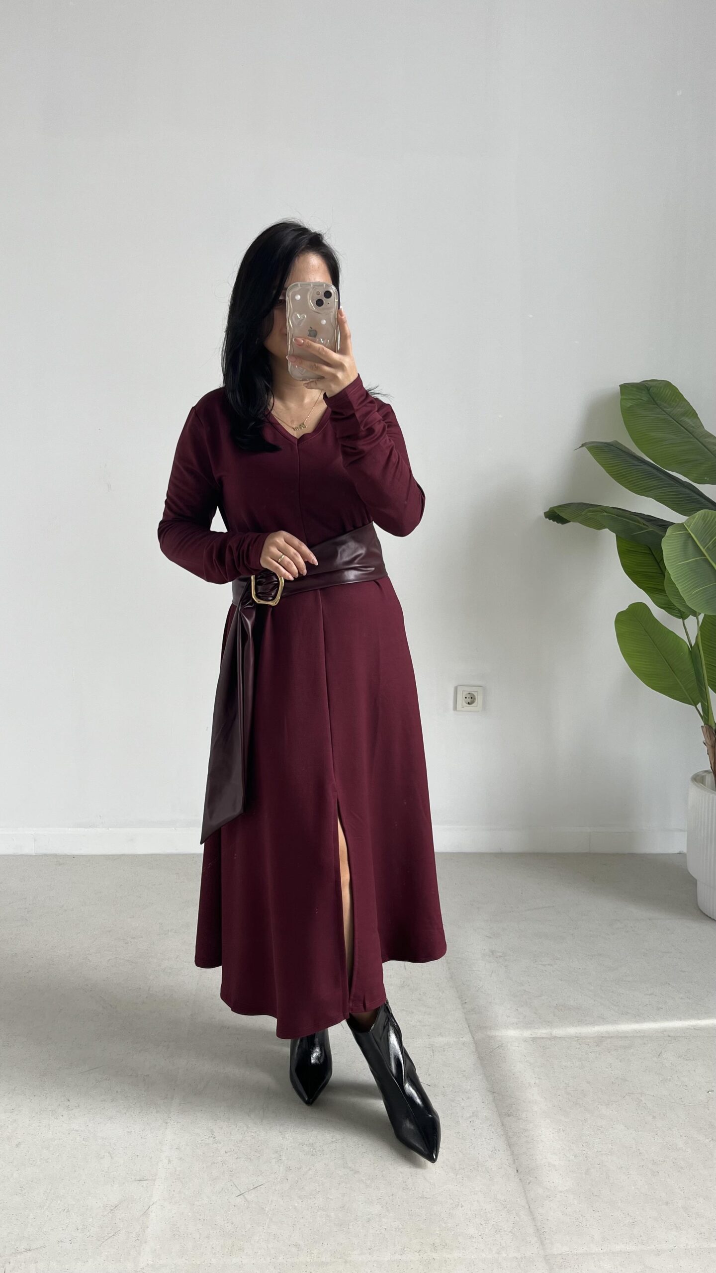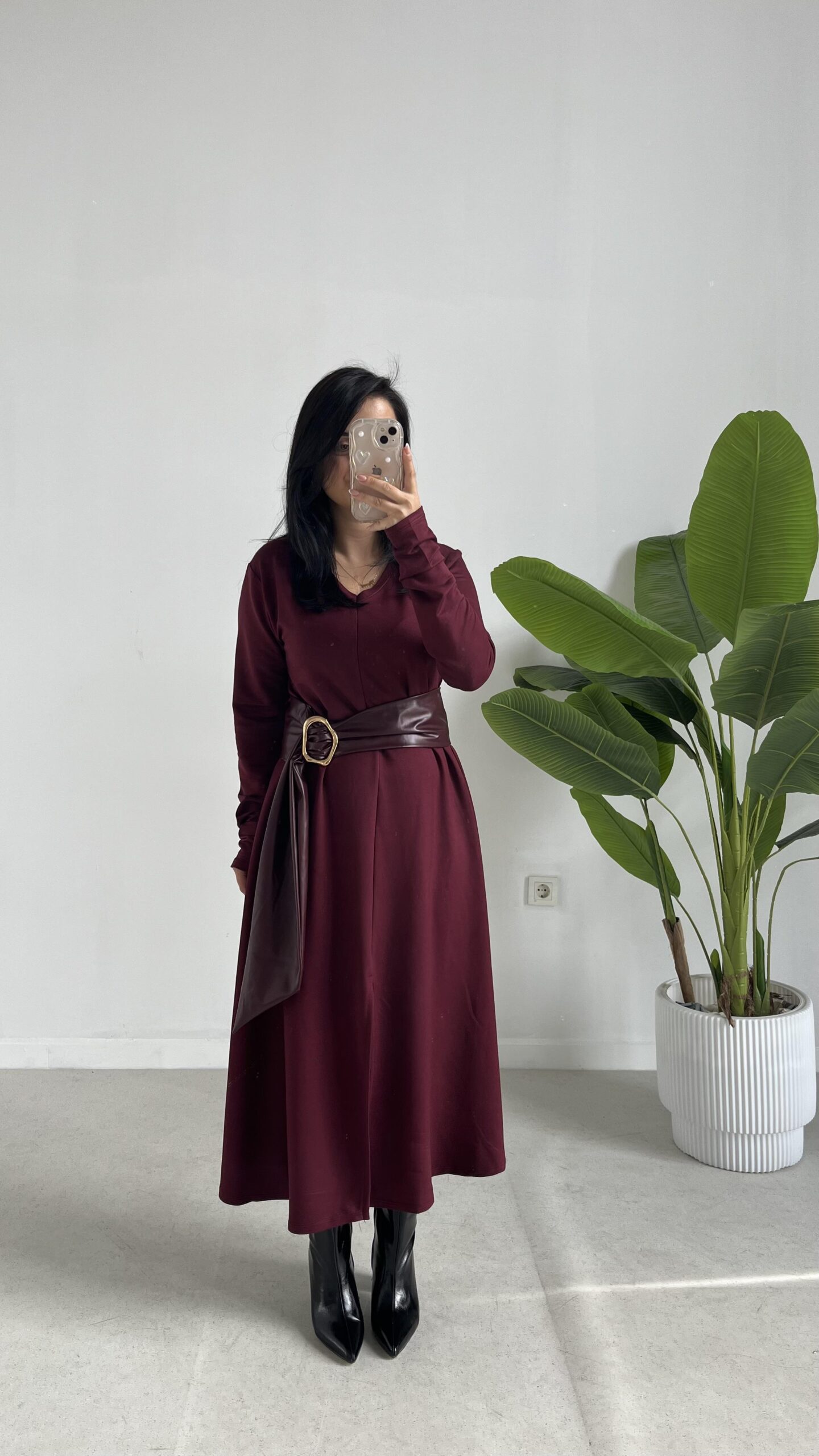 Vetra Çan Kemerli Elbise – Bordo