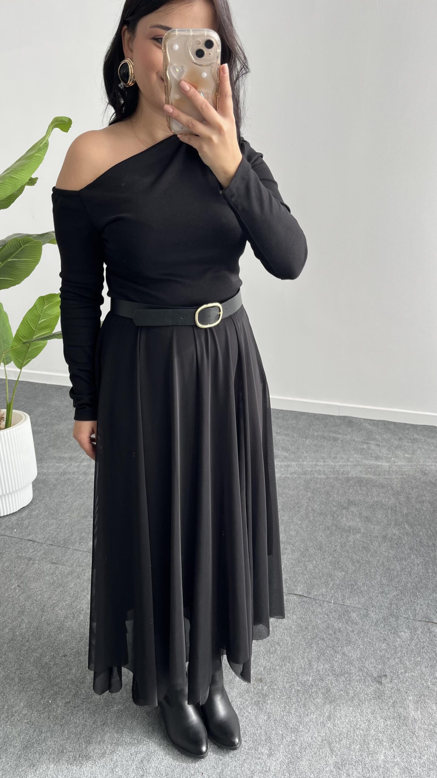 Veny Asimetrik Tül Etek – Siyah