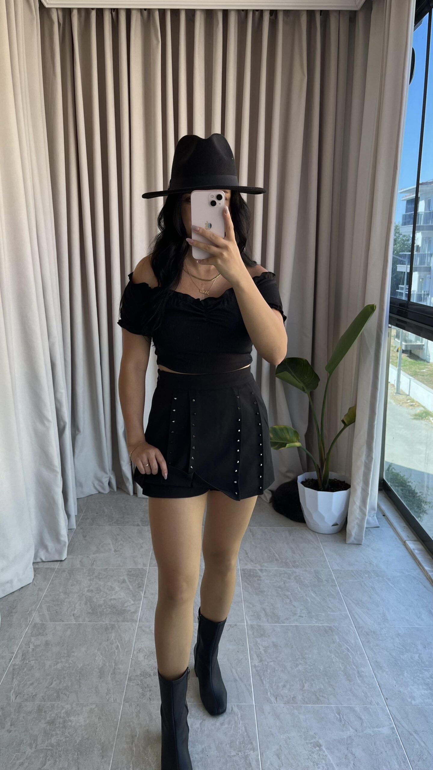 Siyah Kemer Detay Şort Etek