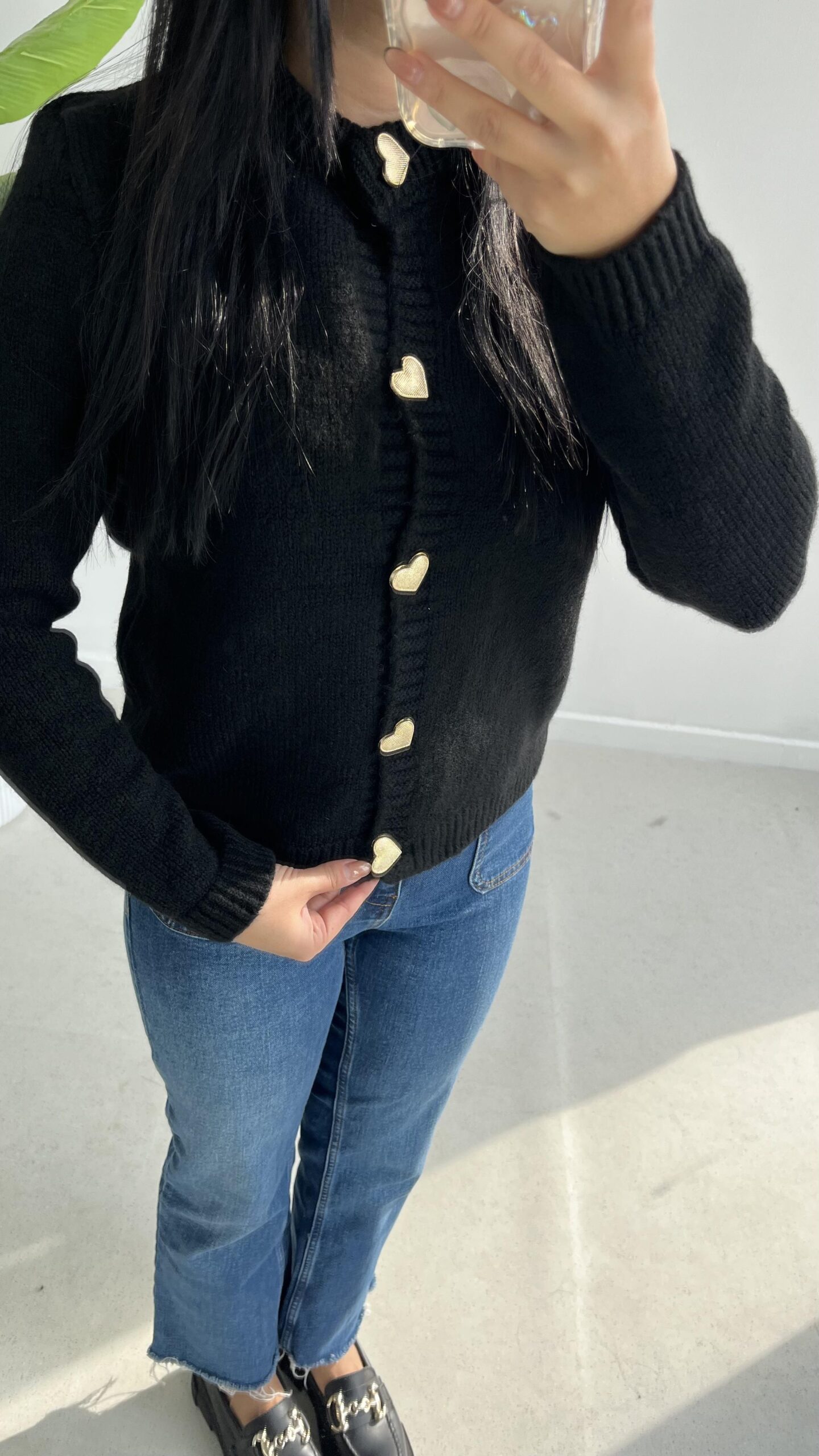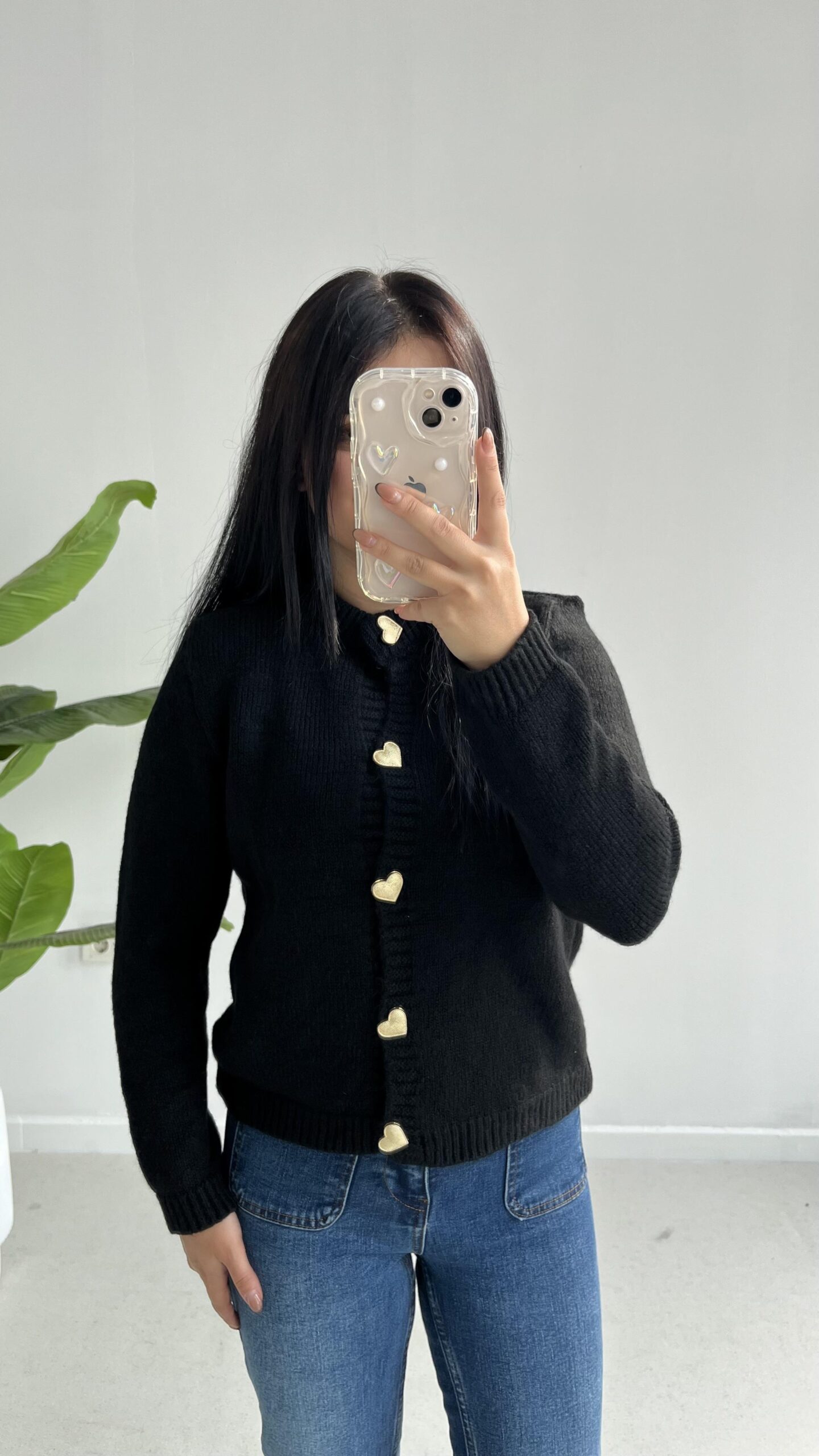 Gold Kalp Düğmeli Triko Hırka – Siyah