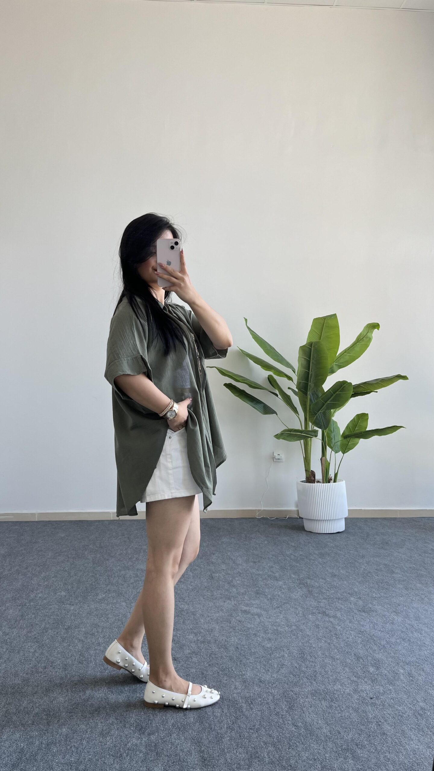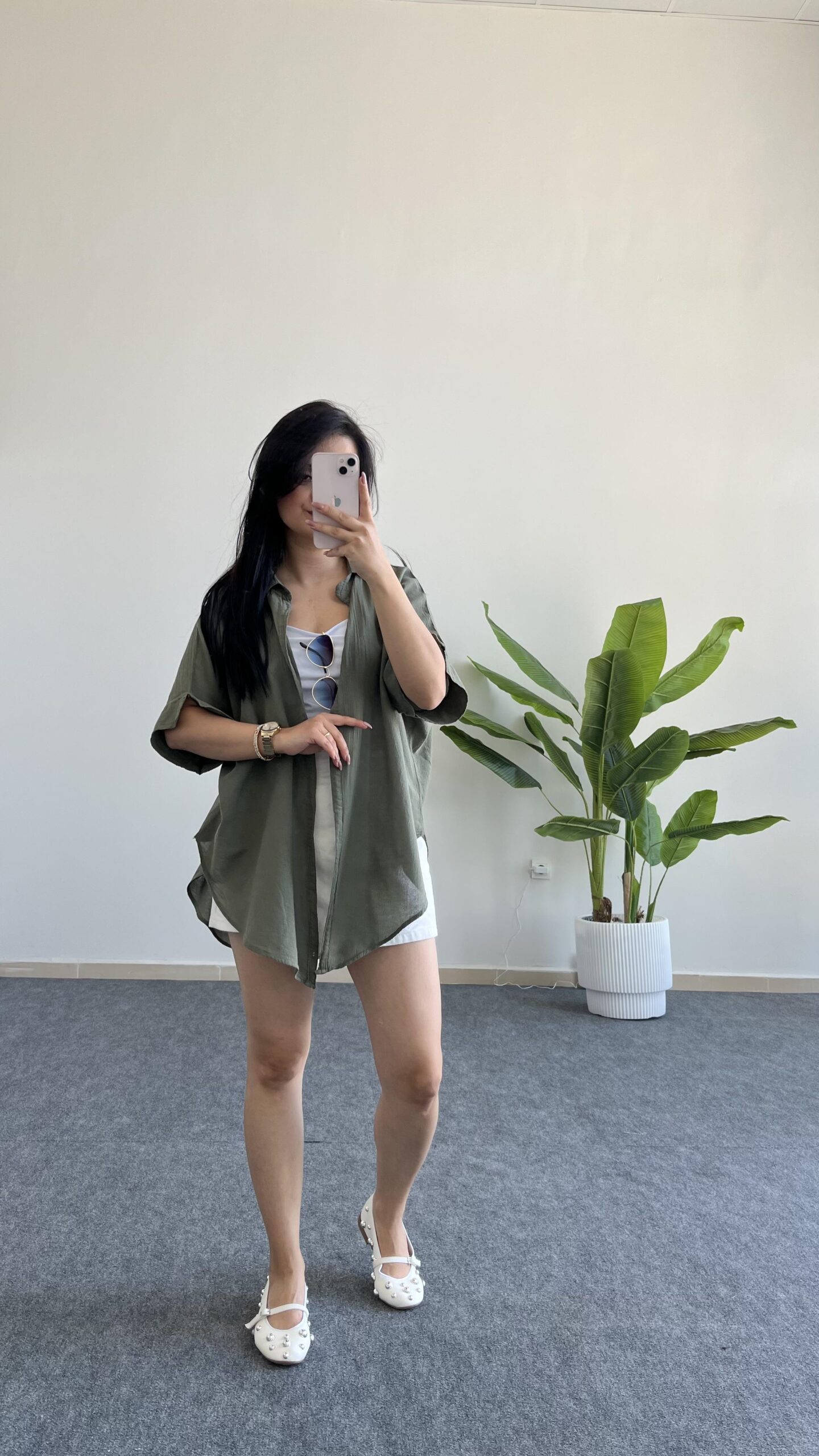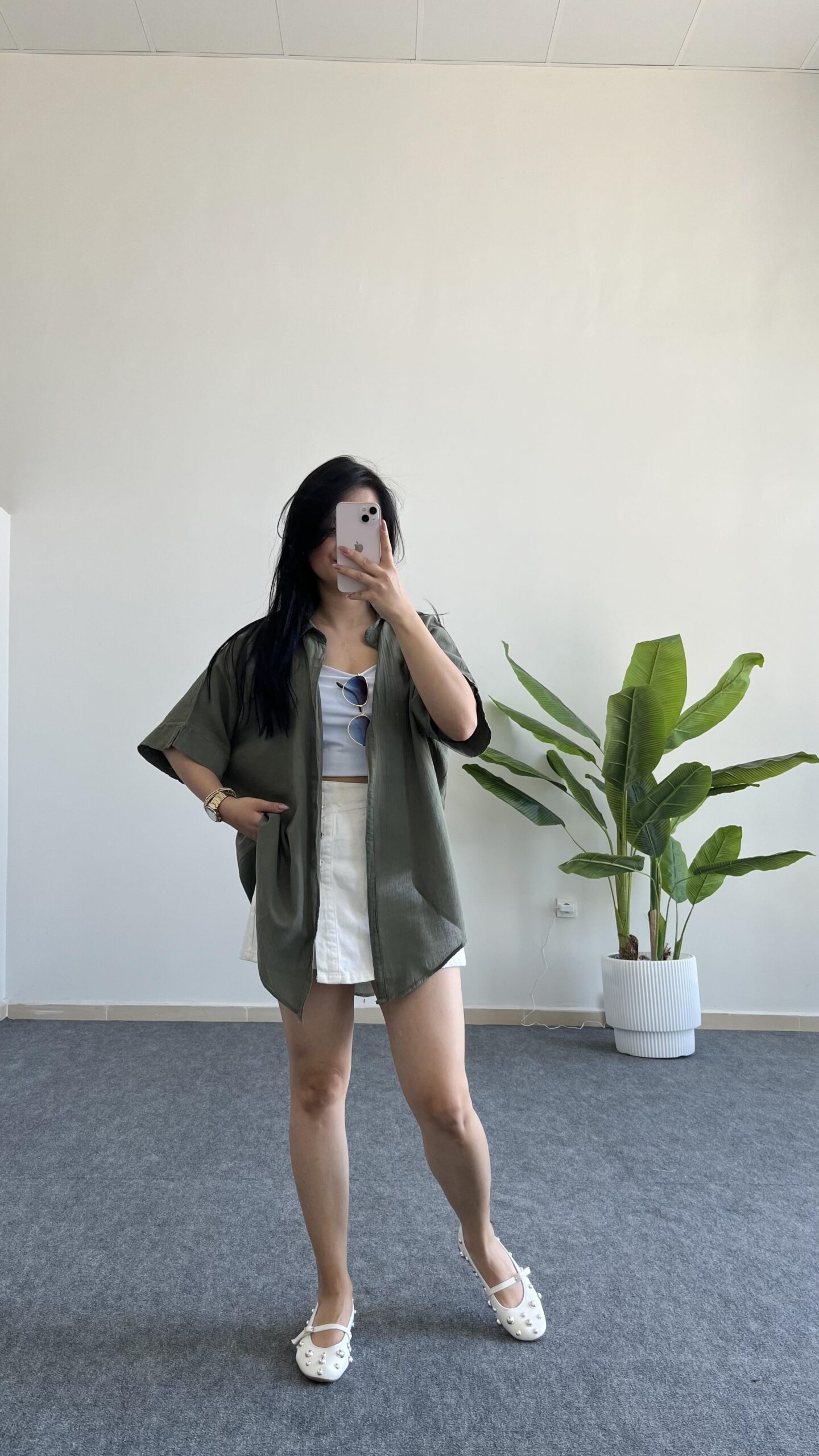 Asimetrik Kesim Keten Gömlek – Haki
