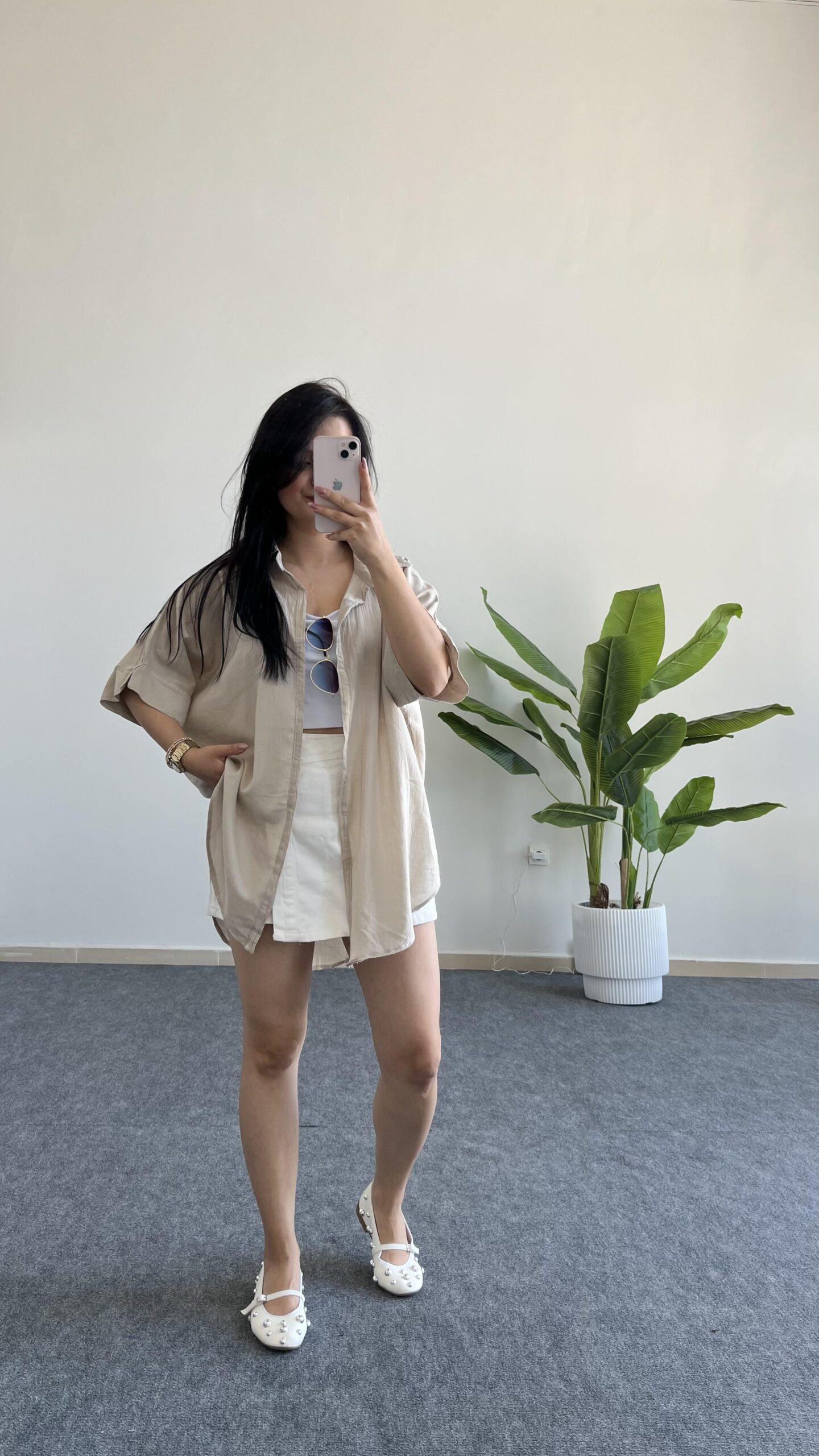 Asimetrik Kesim Keten Gömlek - Beyaz