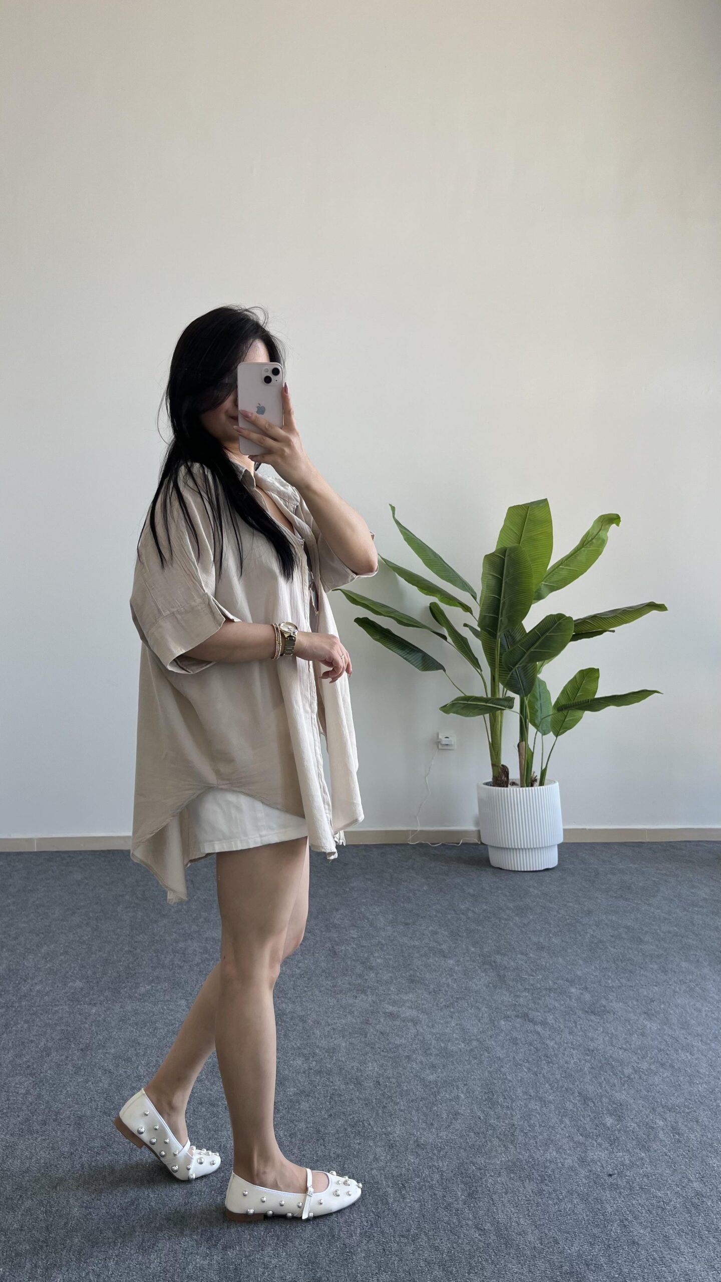 Asimetrik Kesim Keten Gömlek – Taş