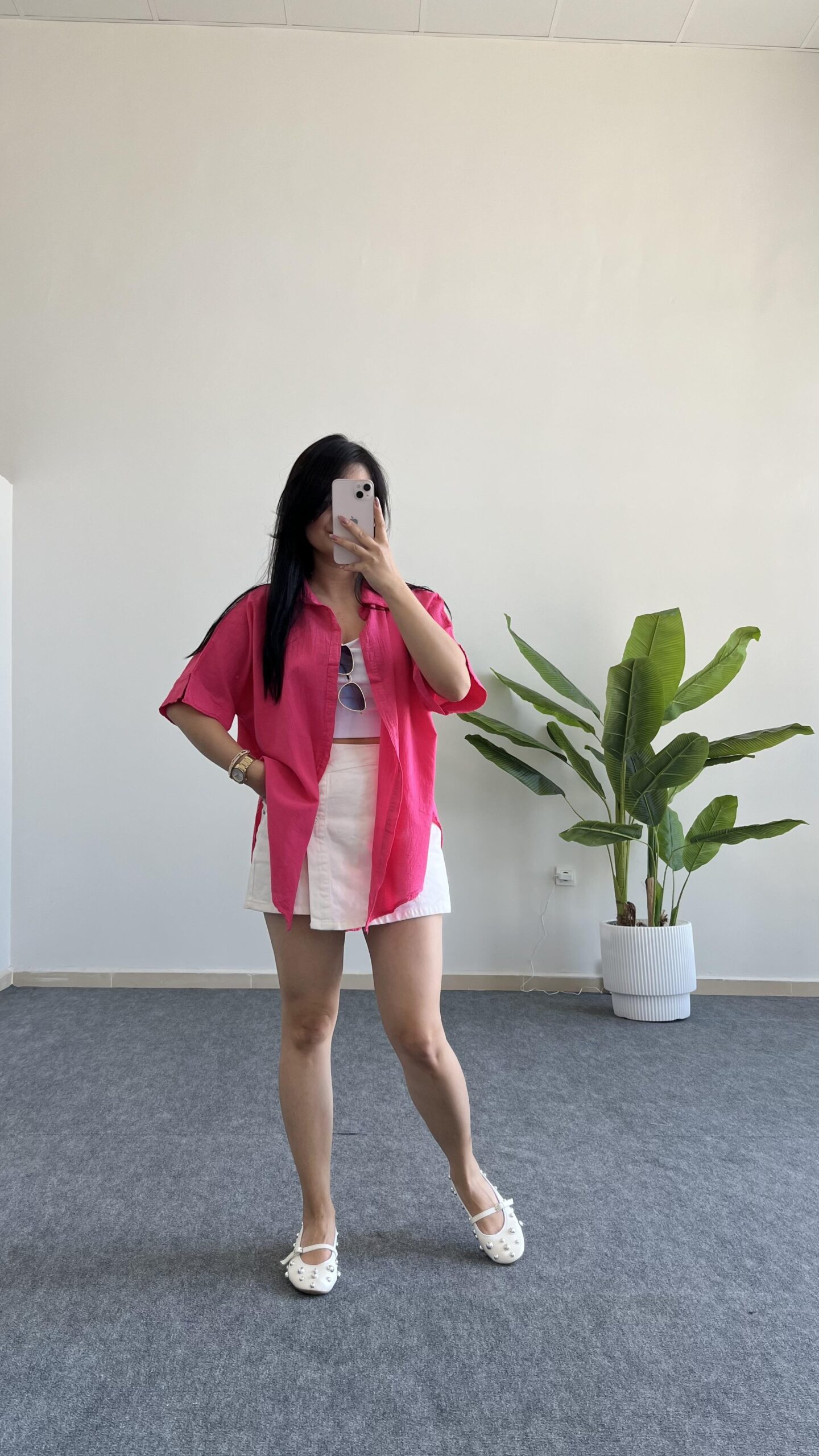 Asimetrik Kesim Pembe Keten Gömlek