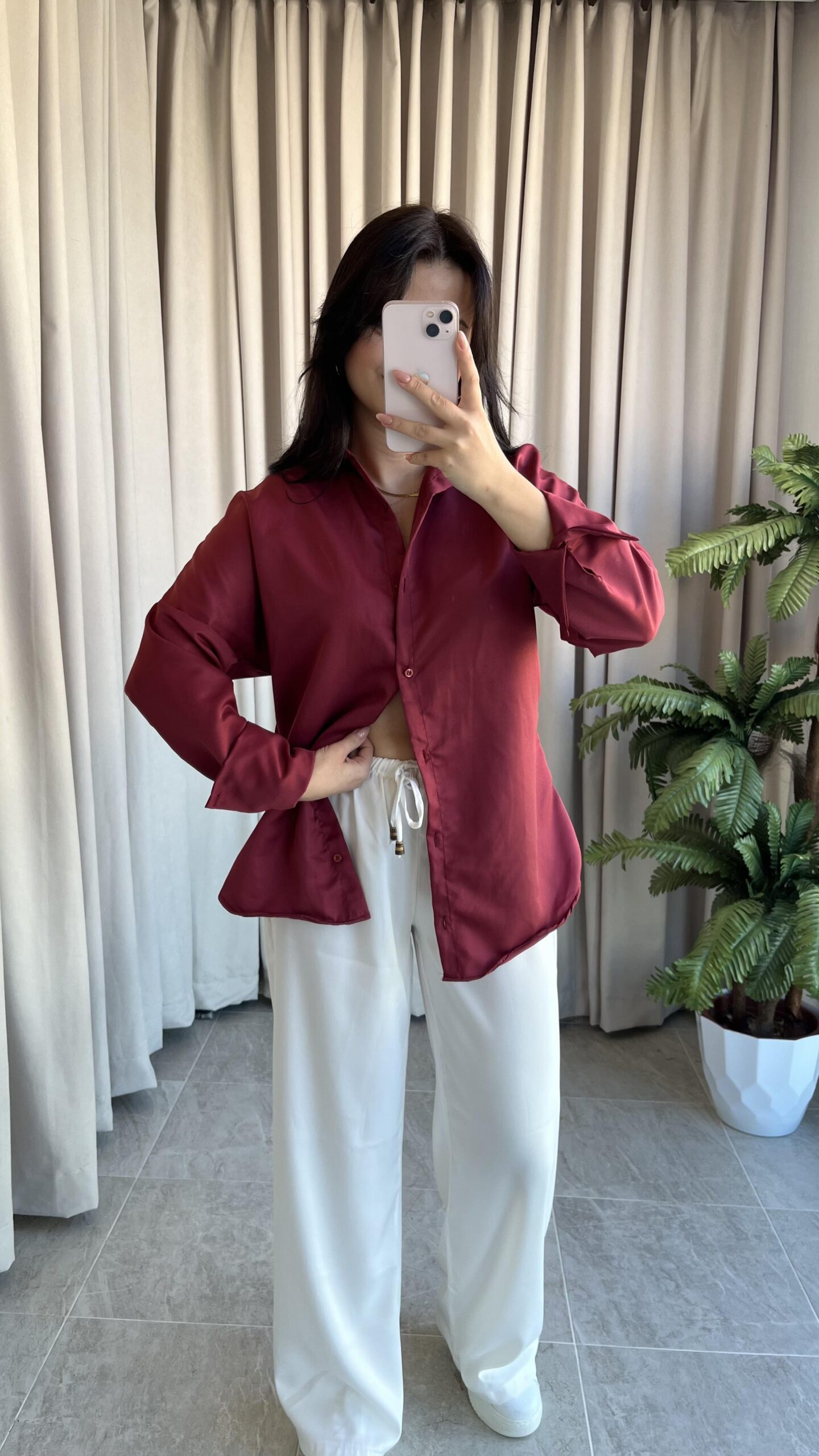 “Eyra Oversize Pamuk Saten Gömlek Bordo” için yorum yapan ilk kişi siz olun