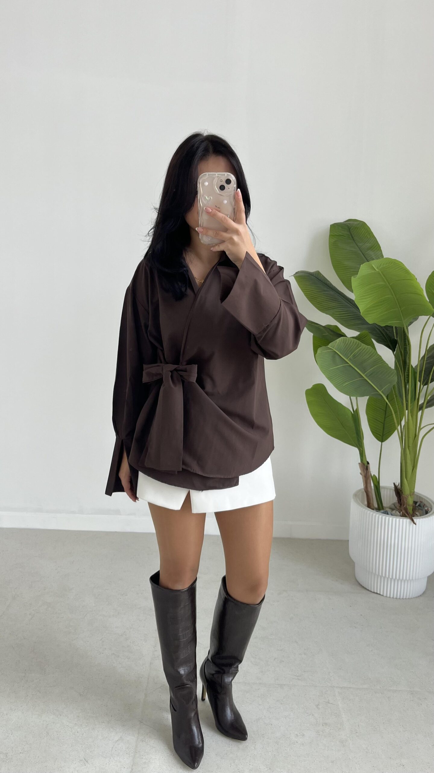 Velera Bağlamalı Gömlek – Kahve