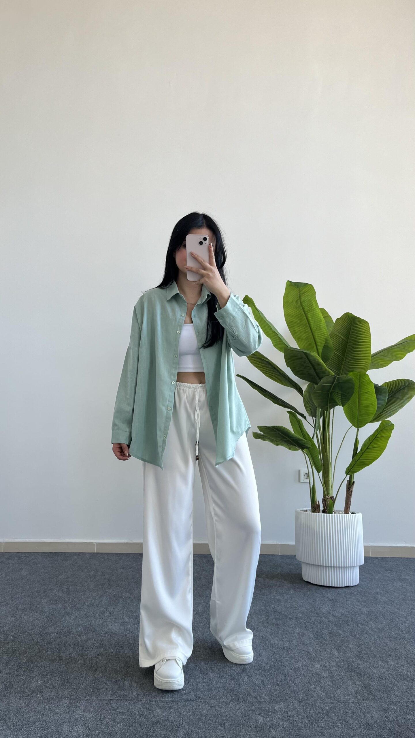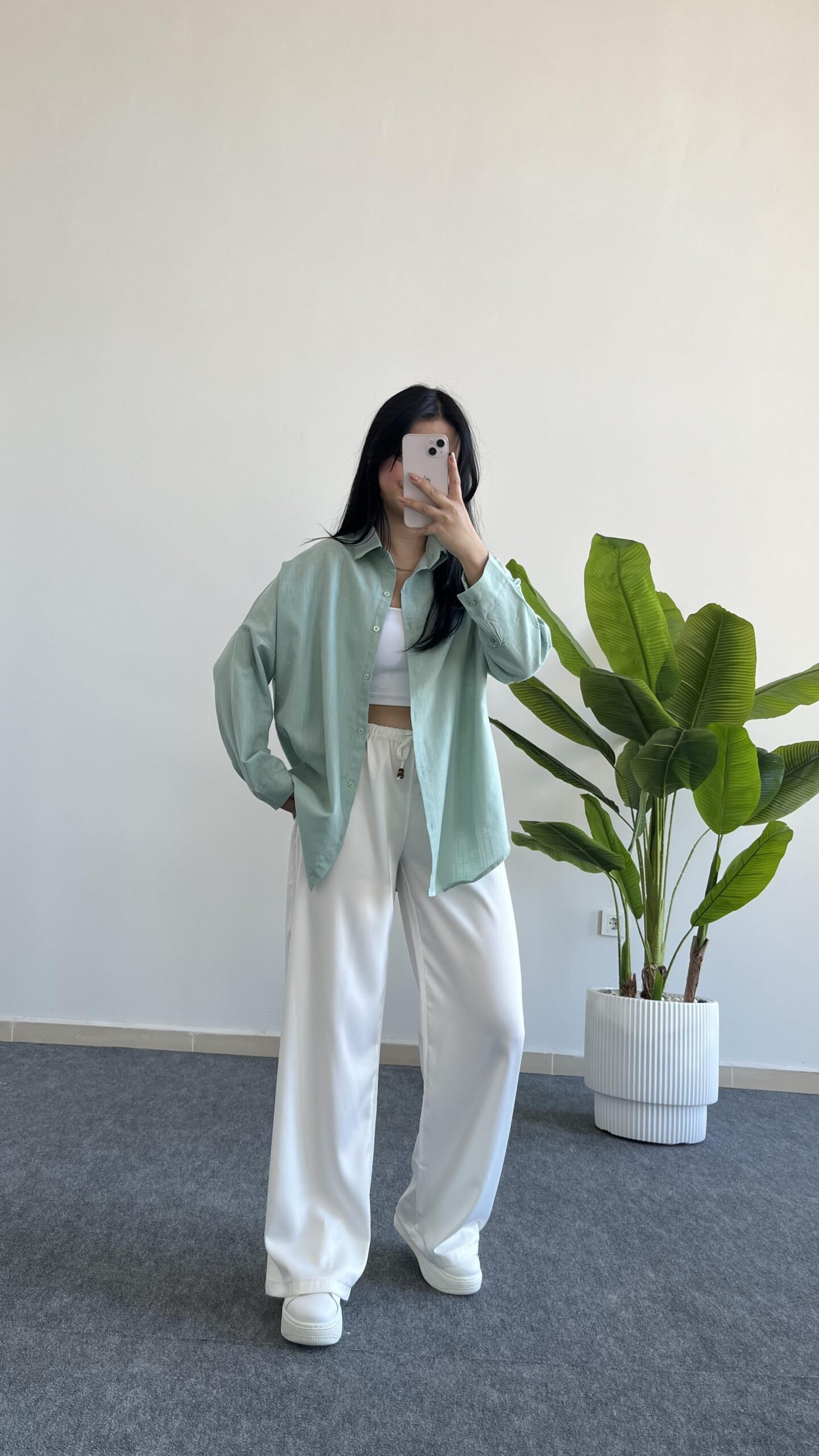 Yonca Keten Gömlek – Mint Yeşili