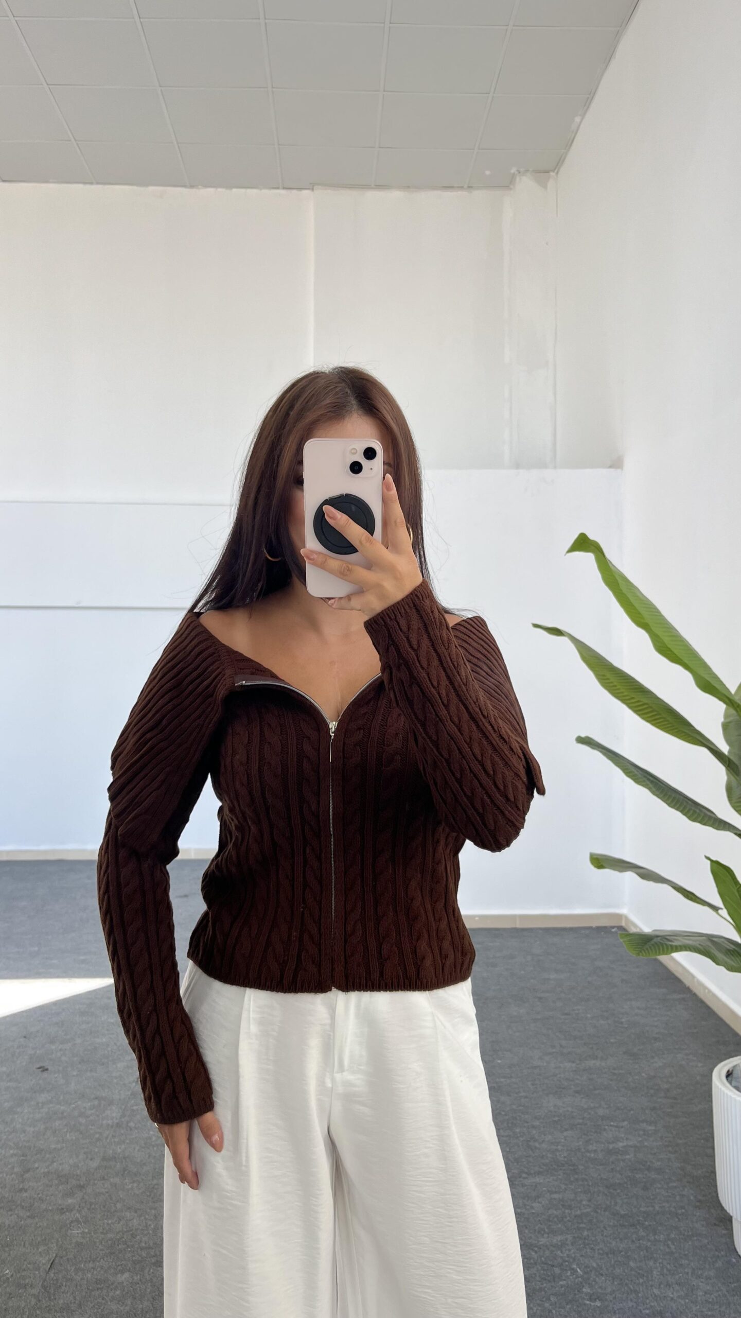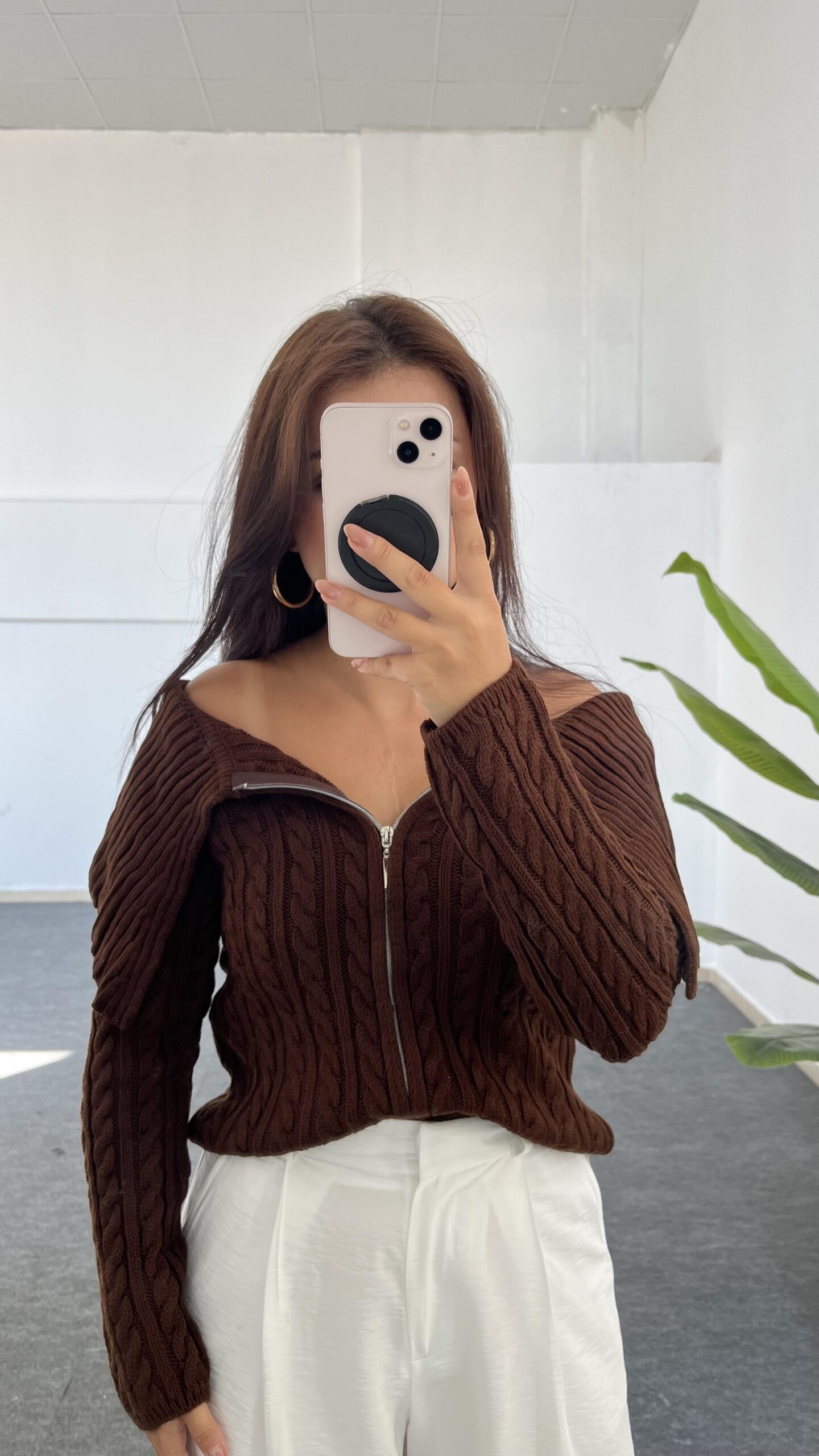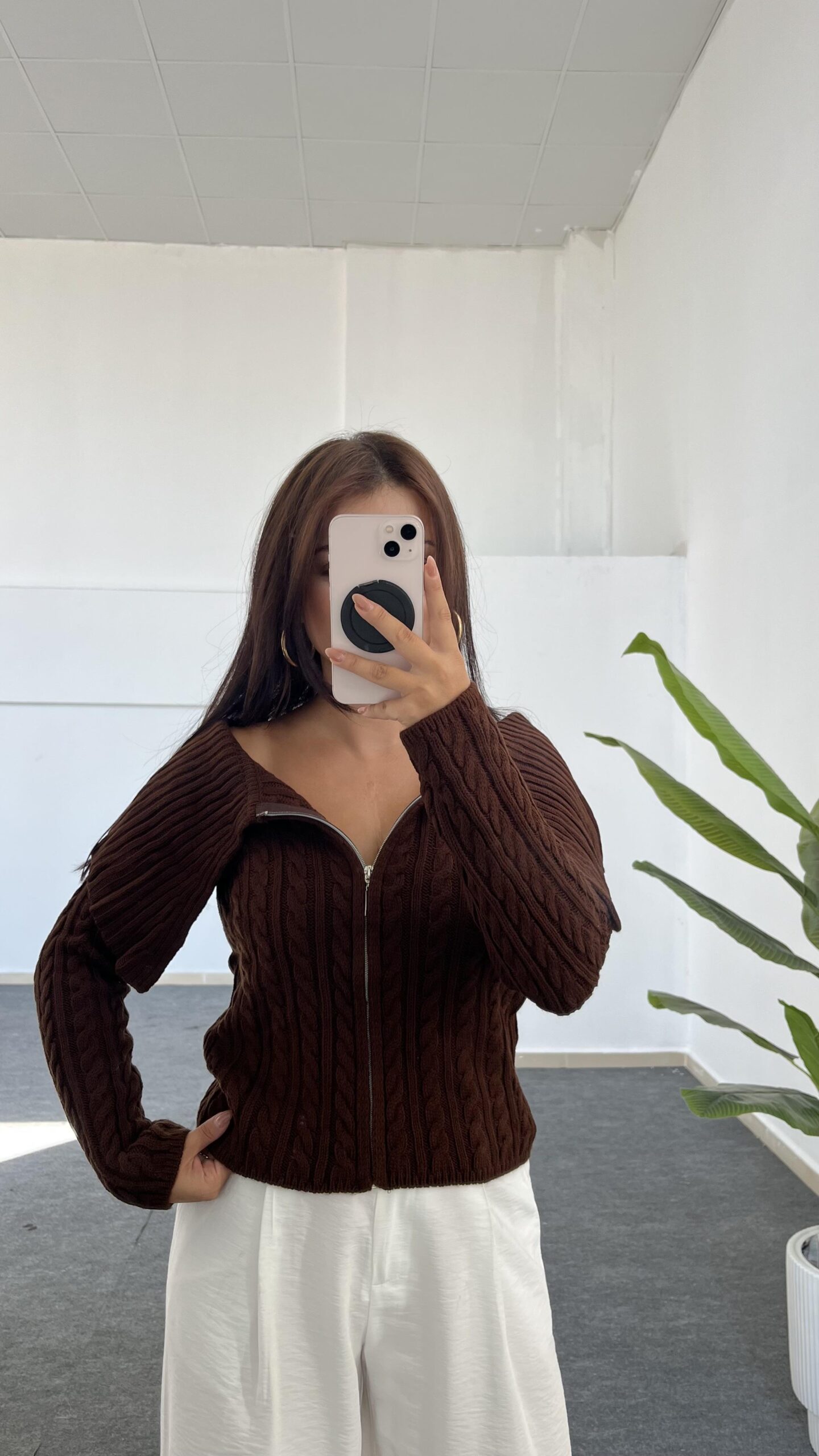 Madonna Yaka Örgü Hırka – Kahve