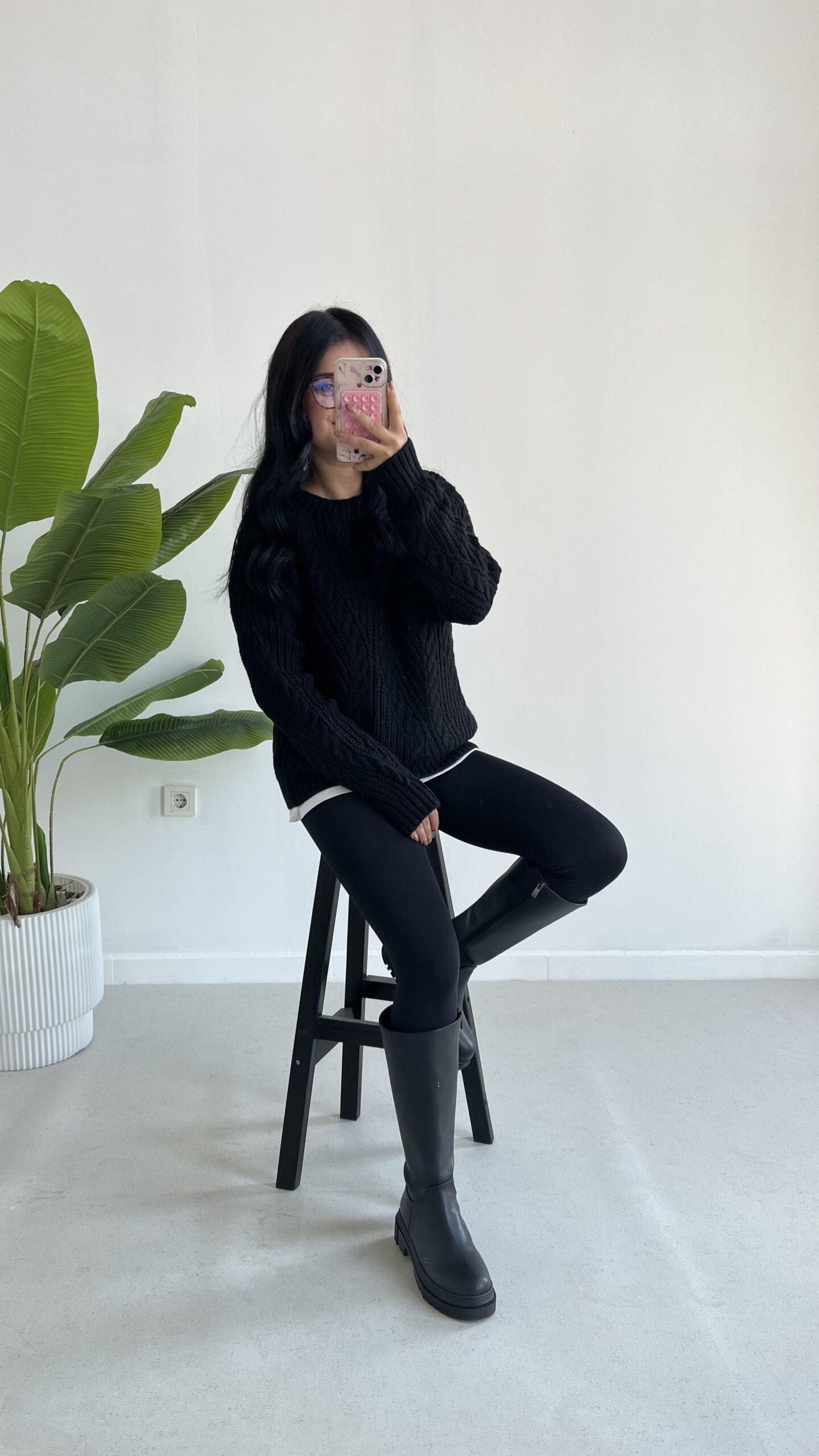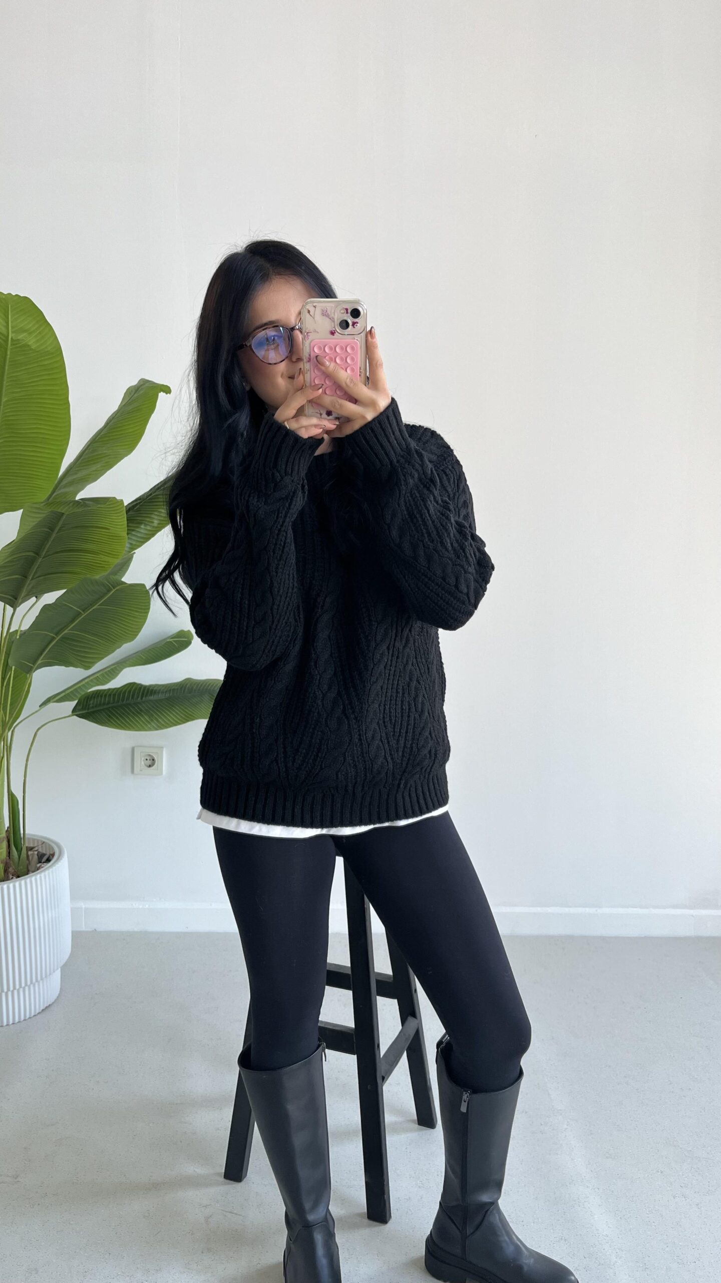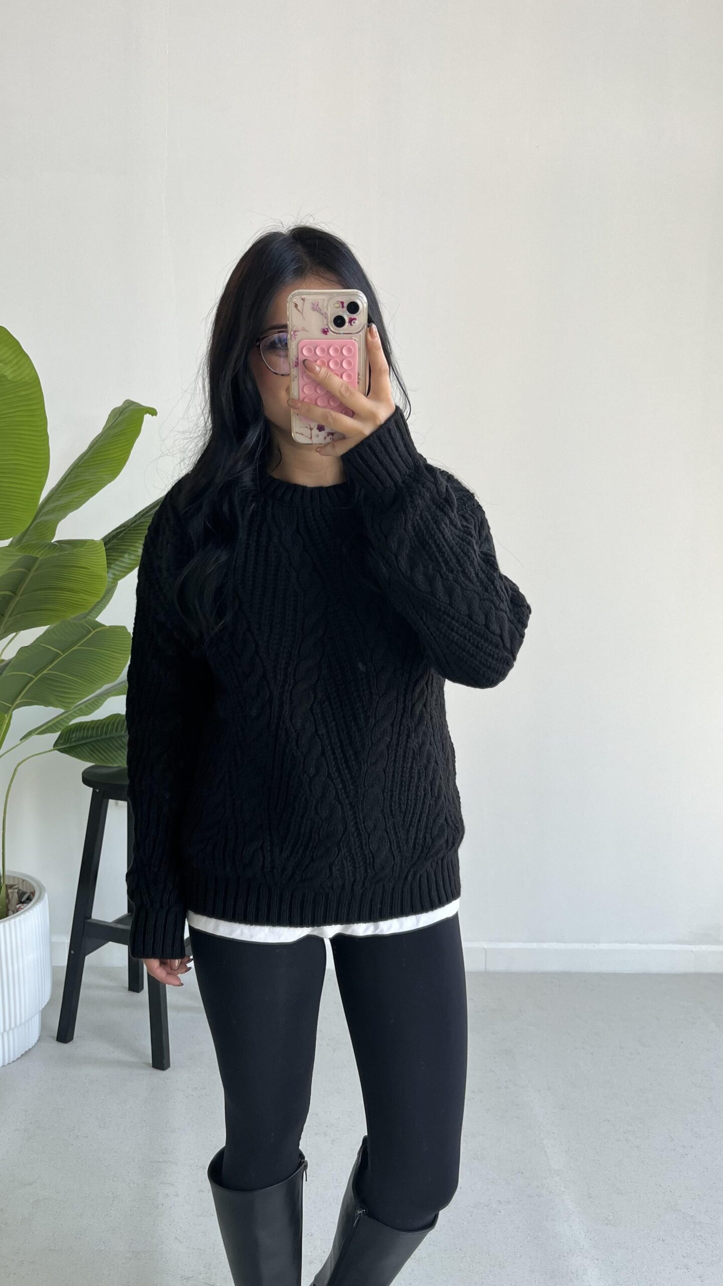 Saç Örgü Siyah Kazak