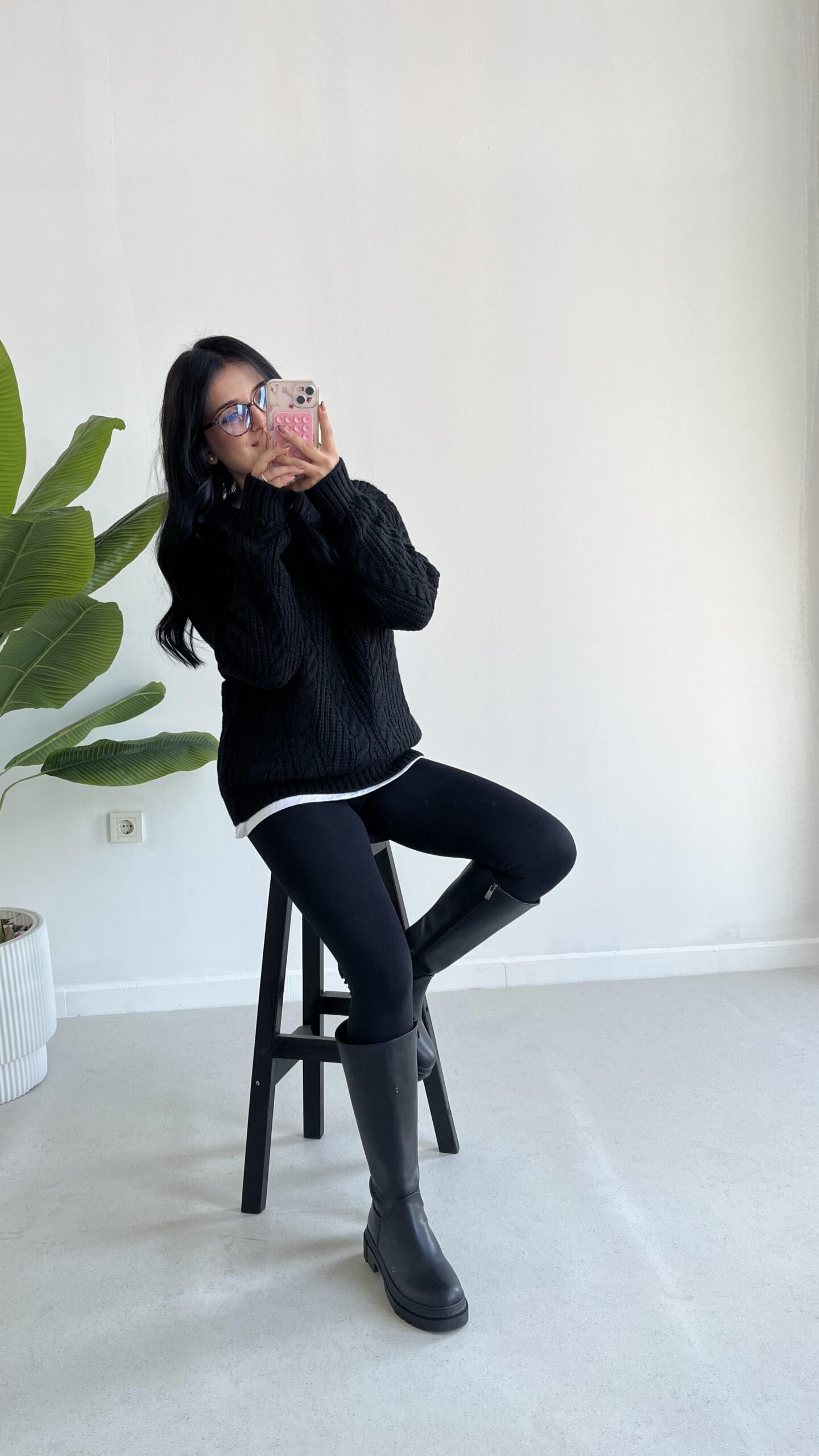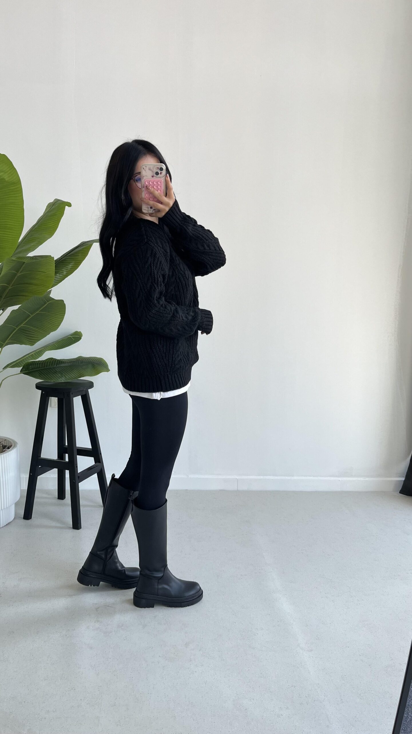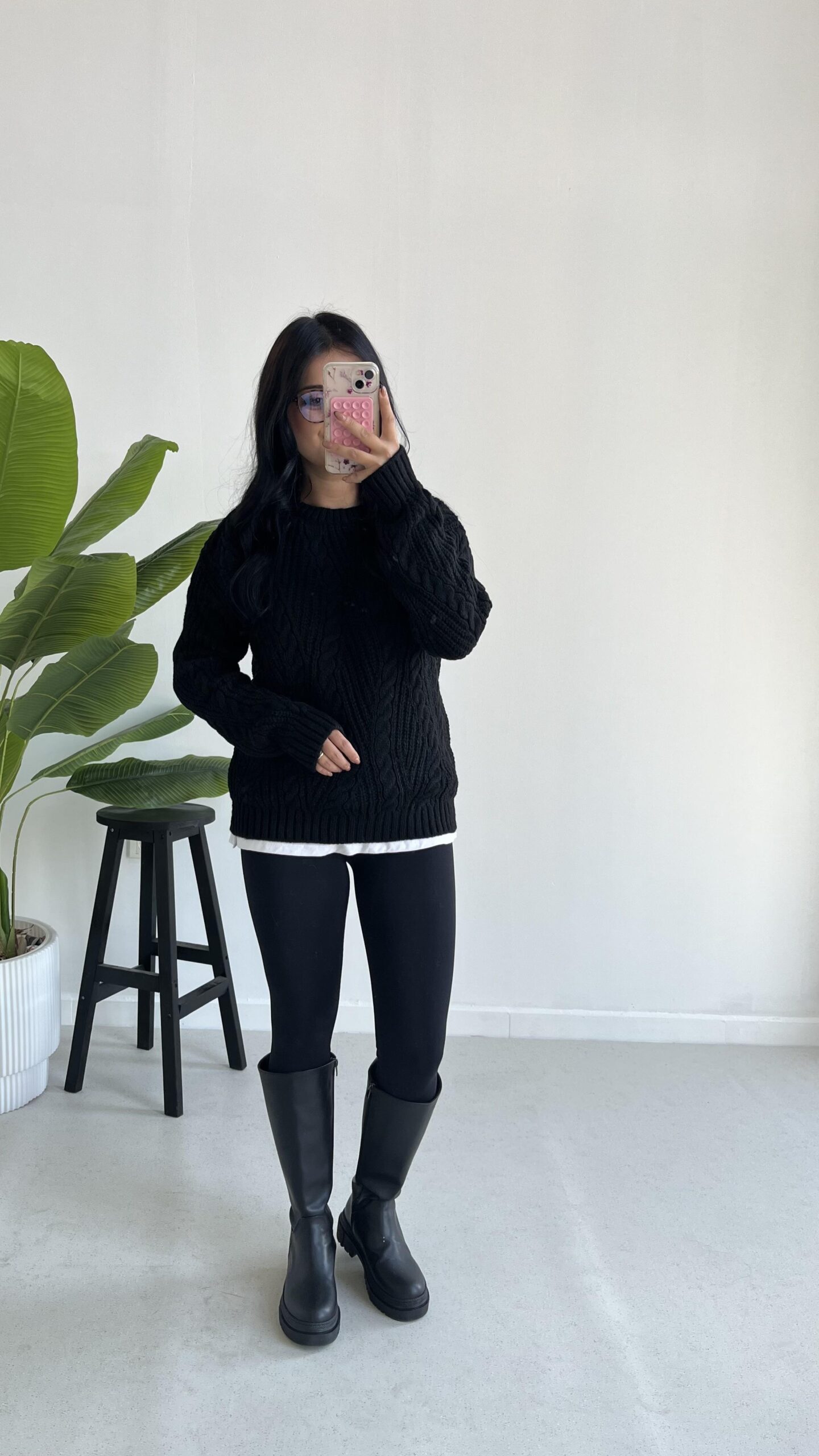 Saç Örgü Siyah Kazak