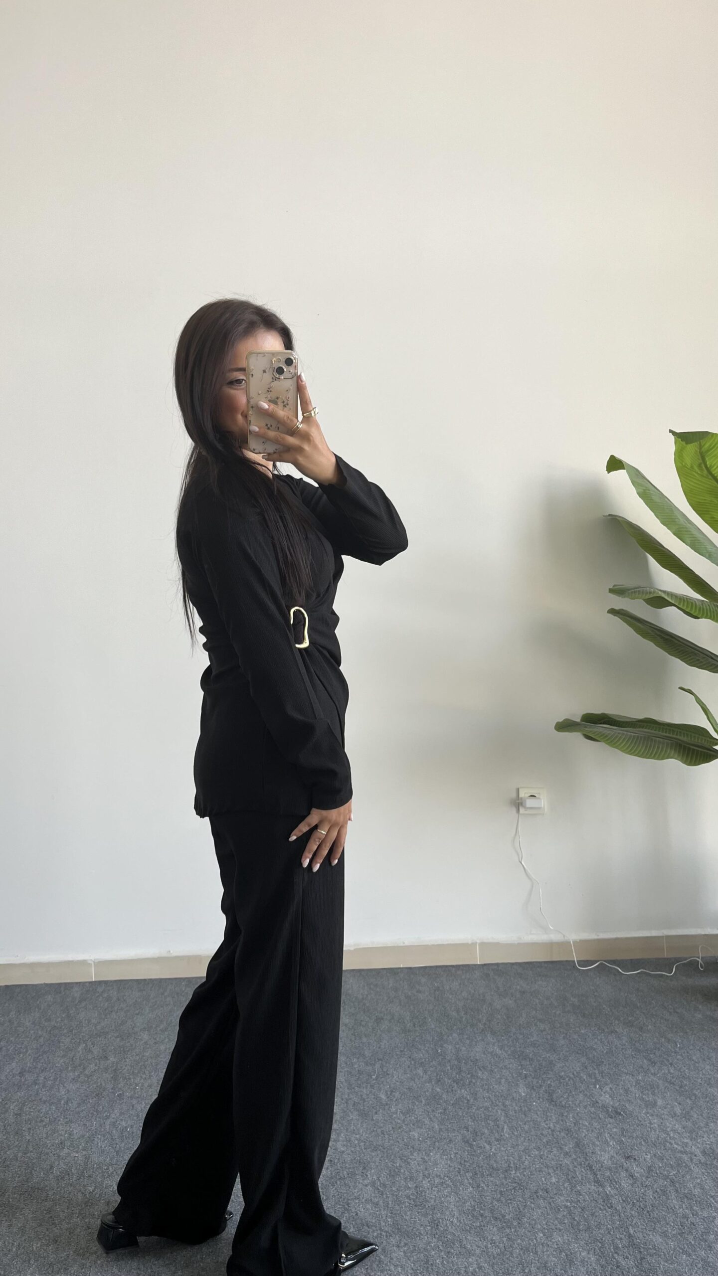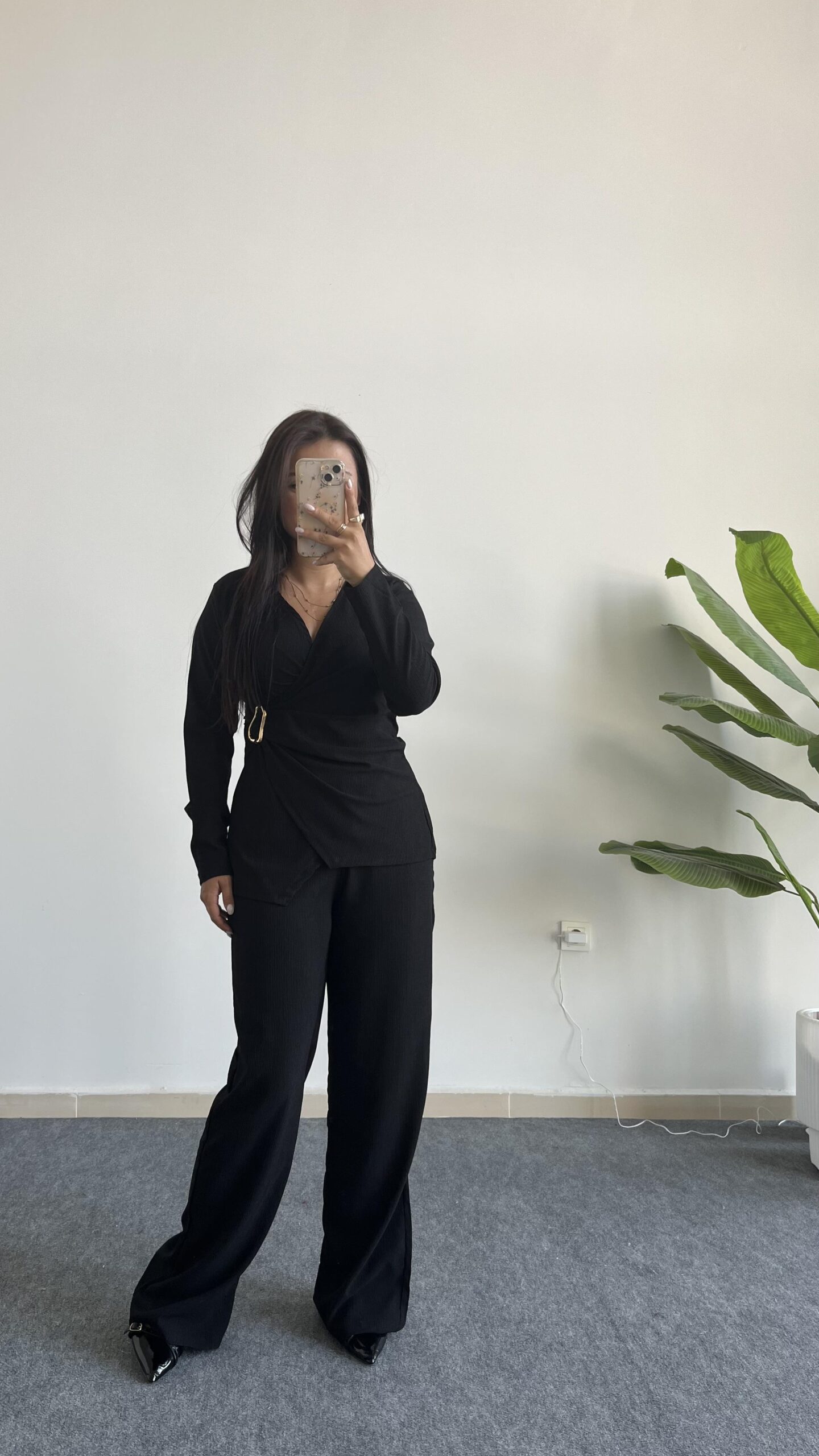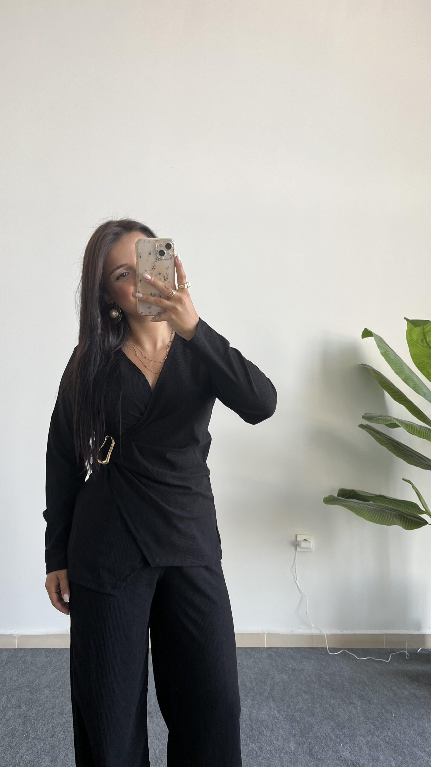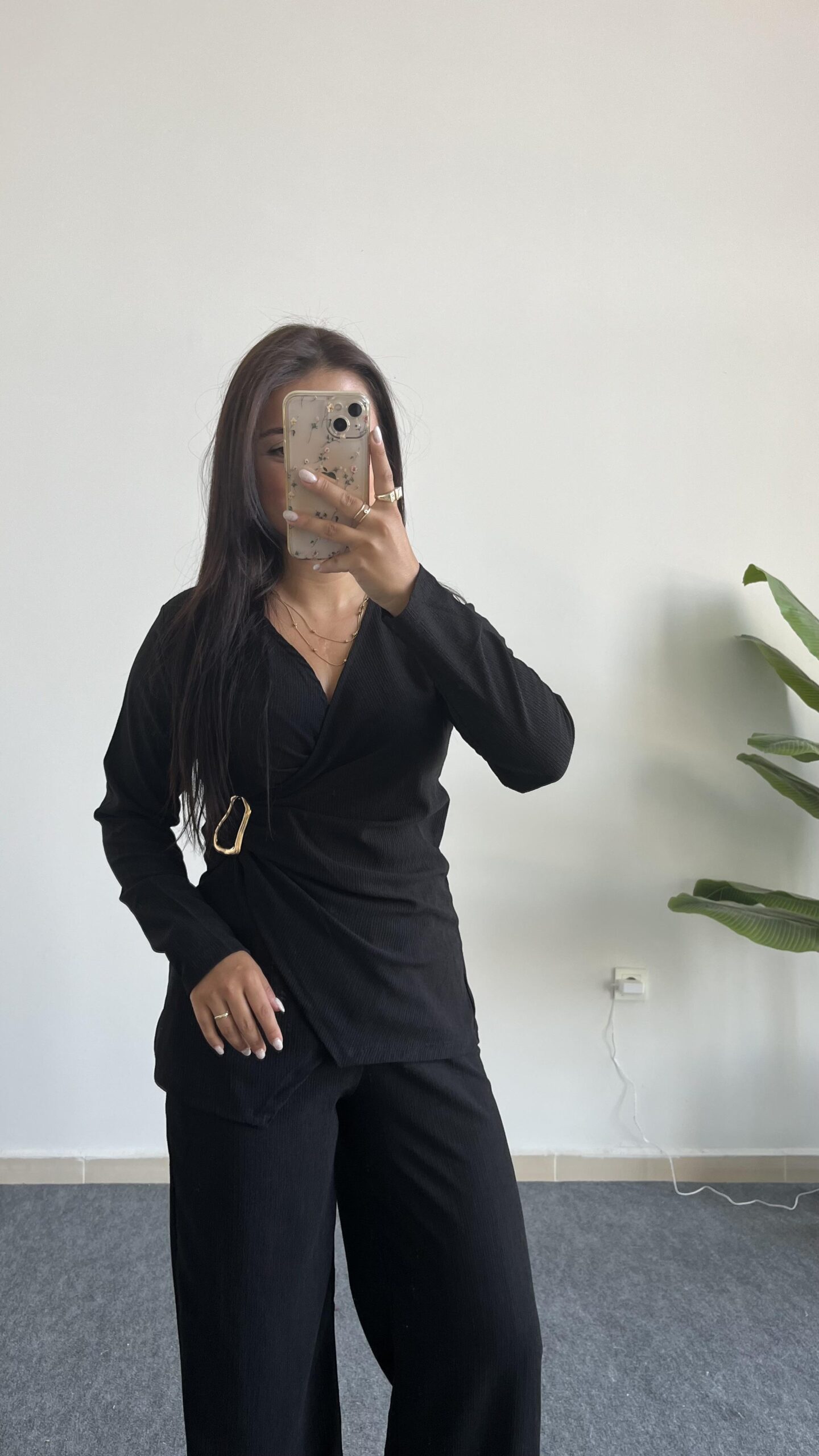 Bonita Kruvaze Yaka Aksesuarlı Takım – Siyah