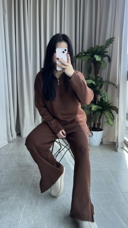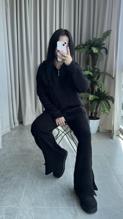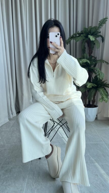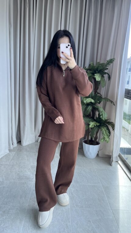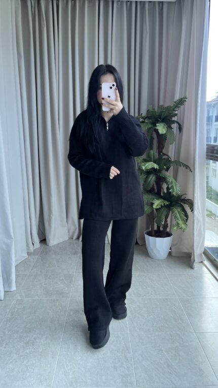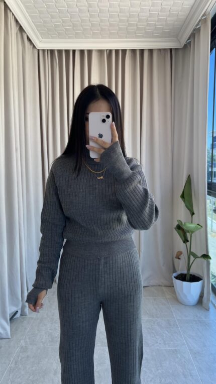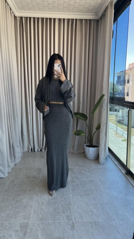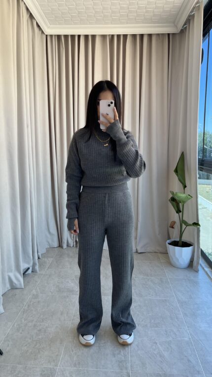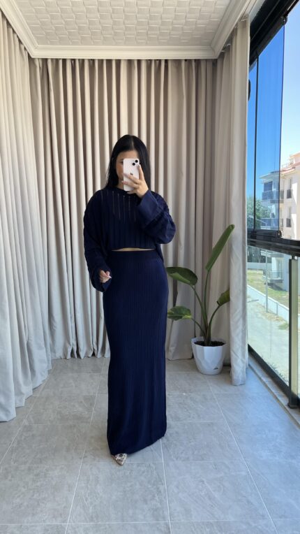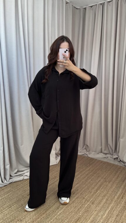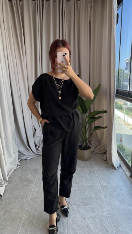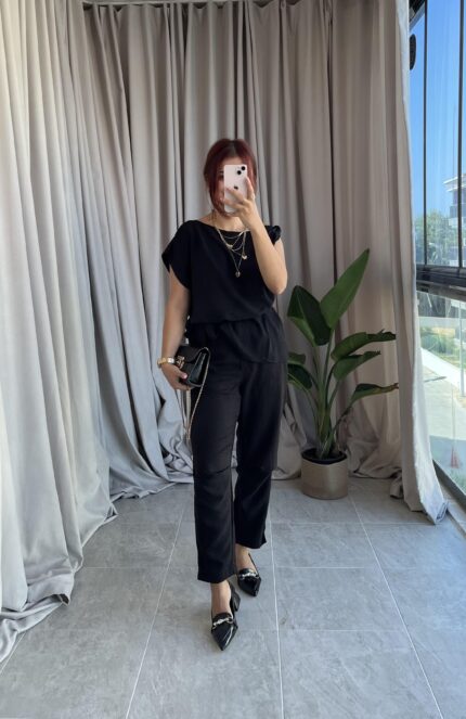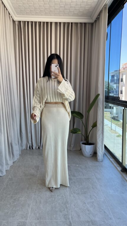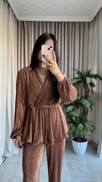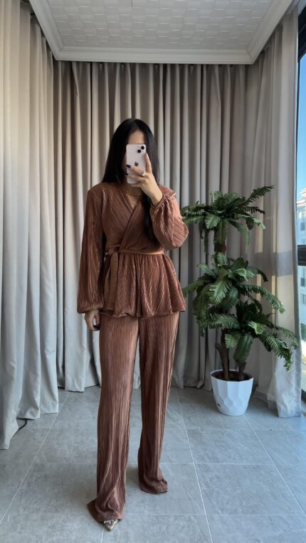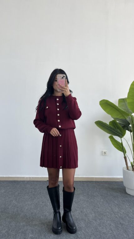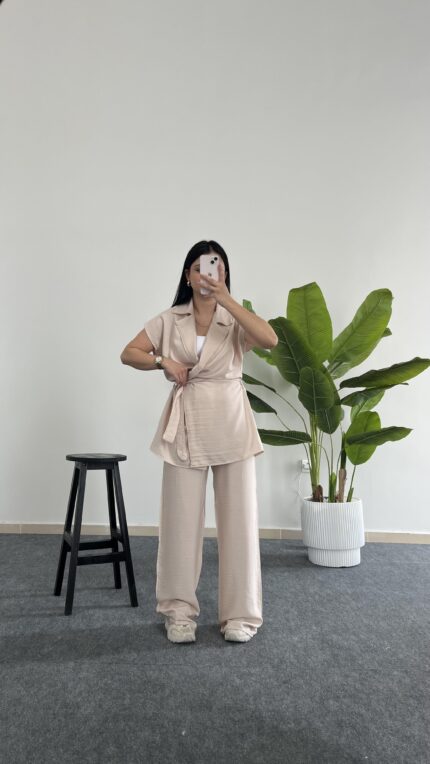 Lenora Gold Düğme Detaylı Pudra Salaş Takım