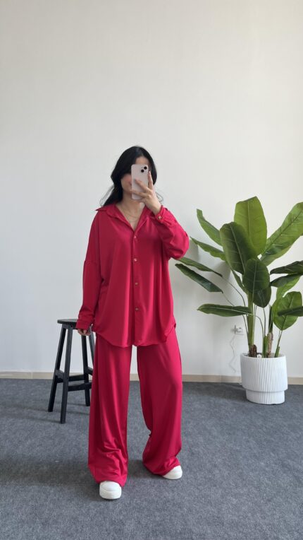 Lenora Gold Düğme Detaylı Pembe Salaş Takım