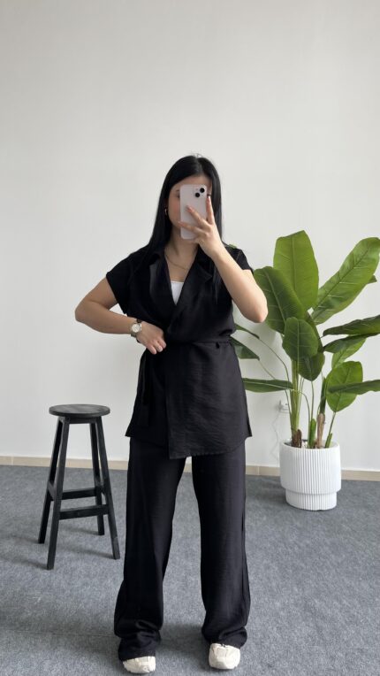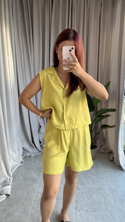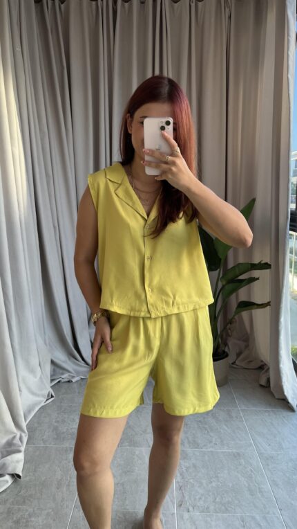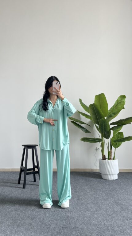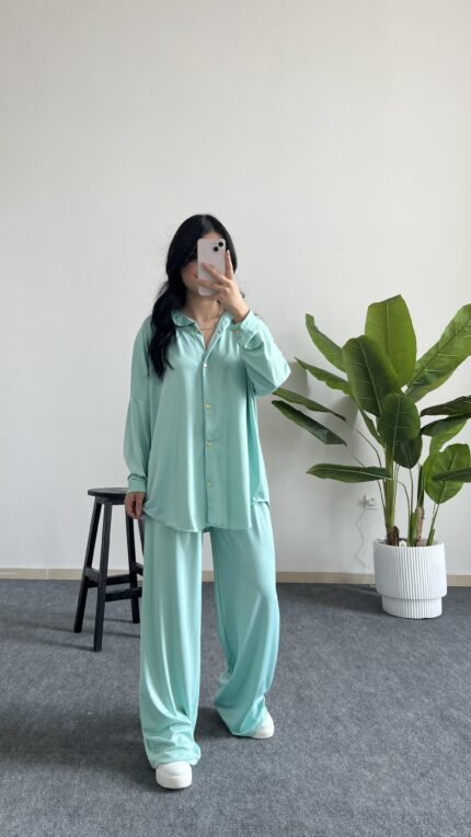 Lenora Gold Düğme Detaylı Yeşil Salaş Takım