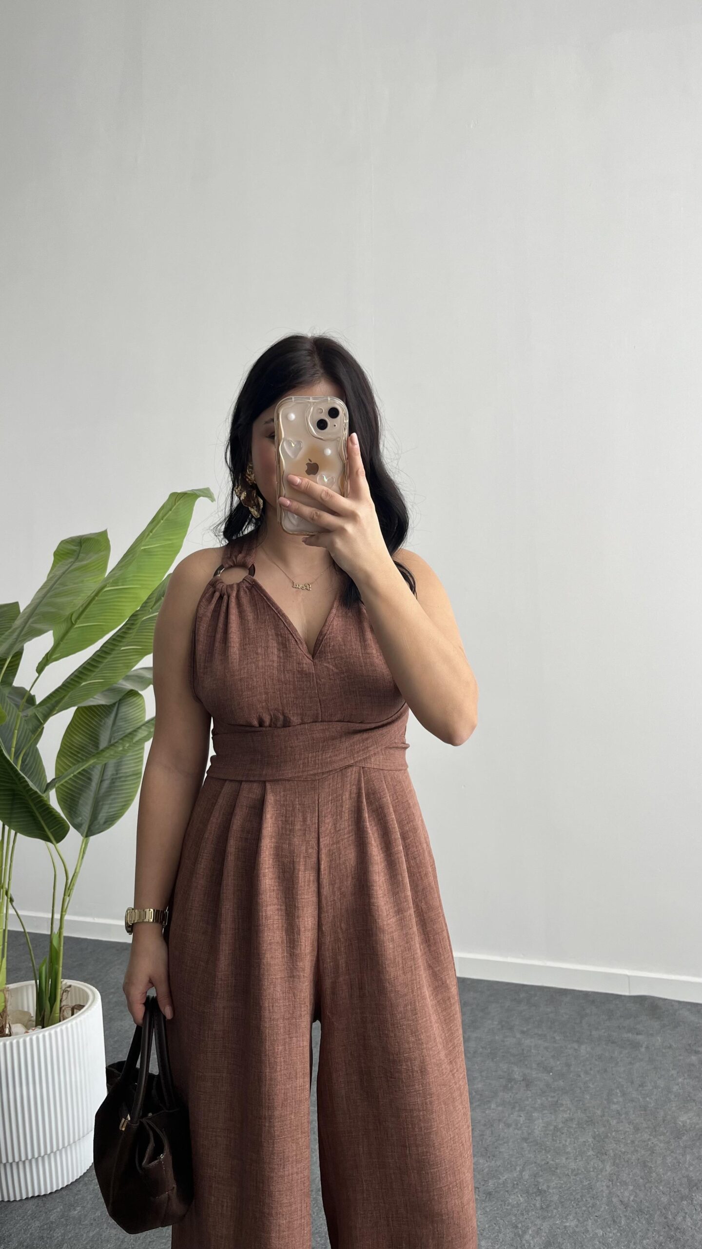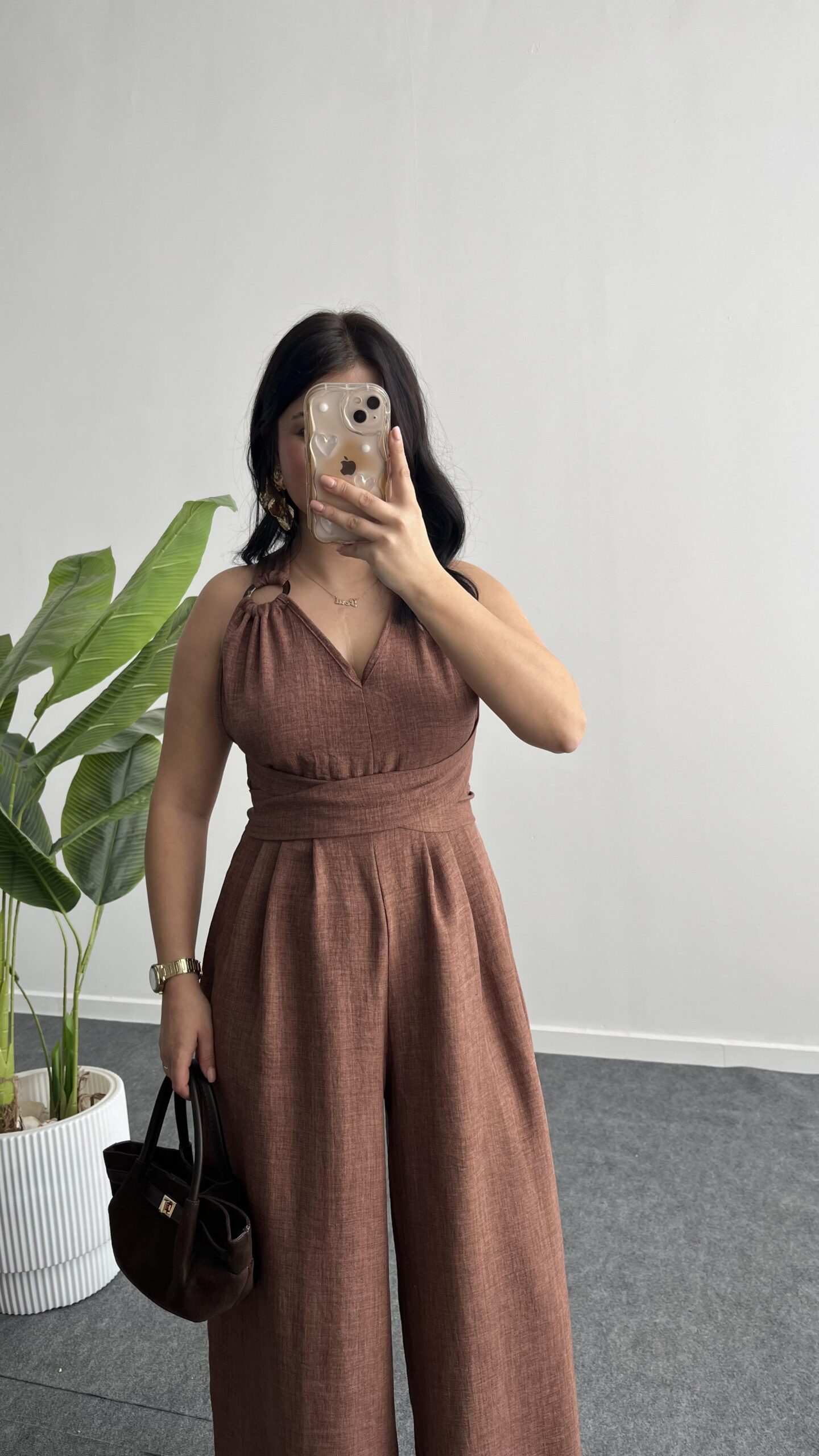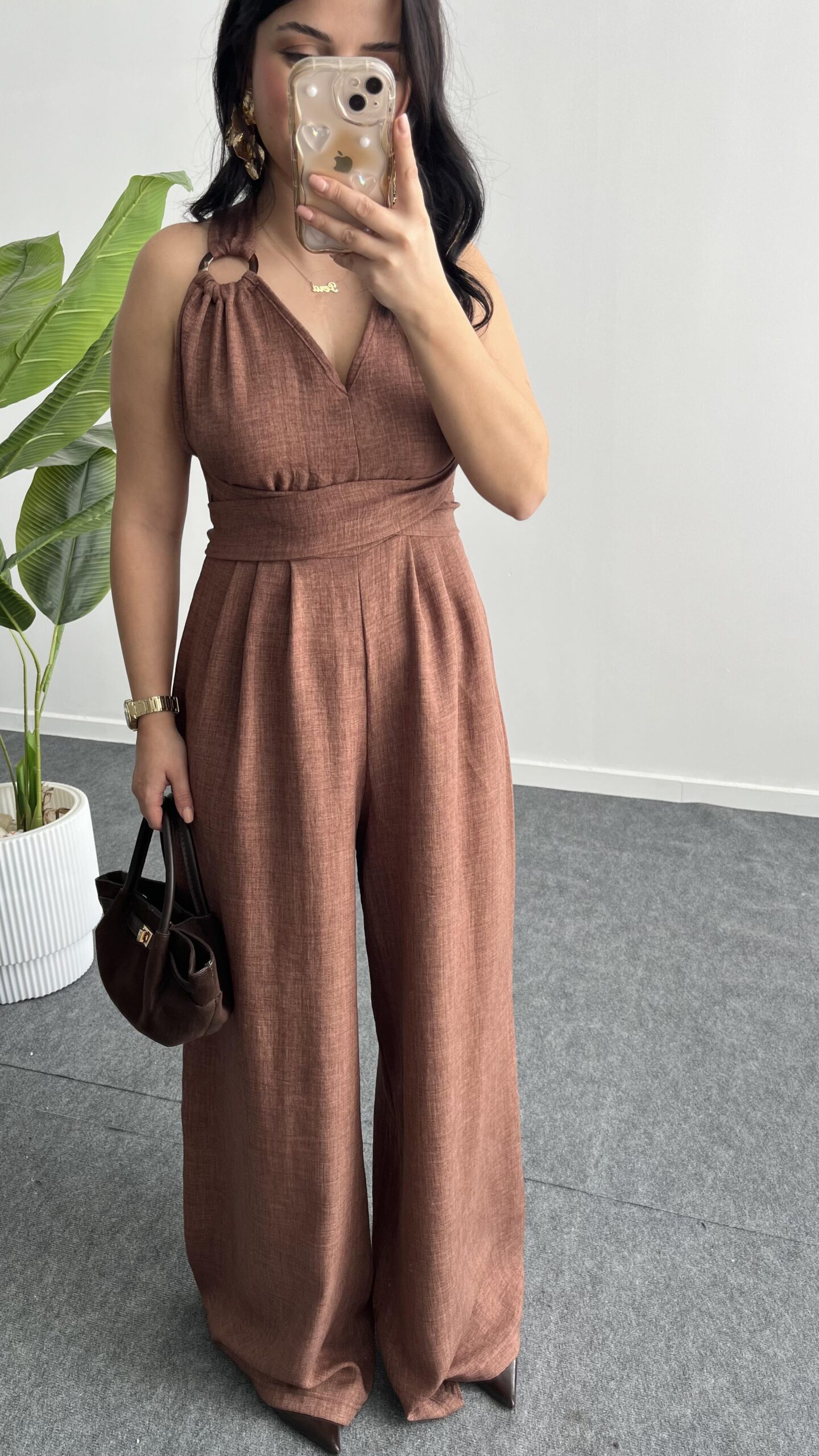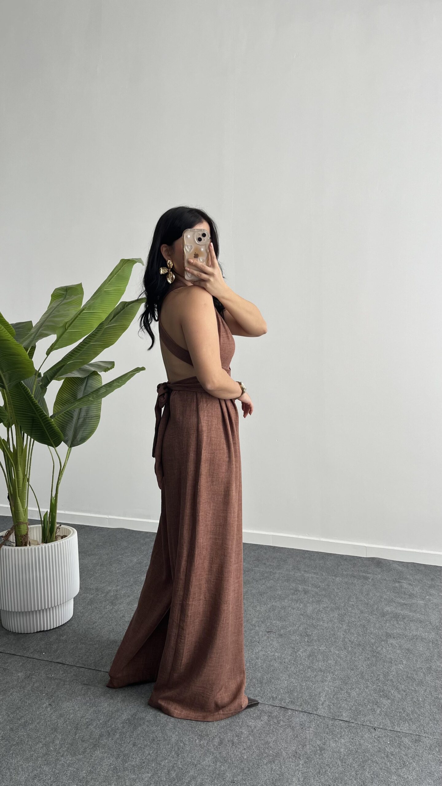 Sırt Dekolteli Tulum – Kahve