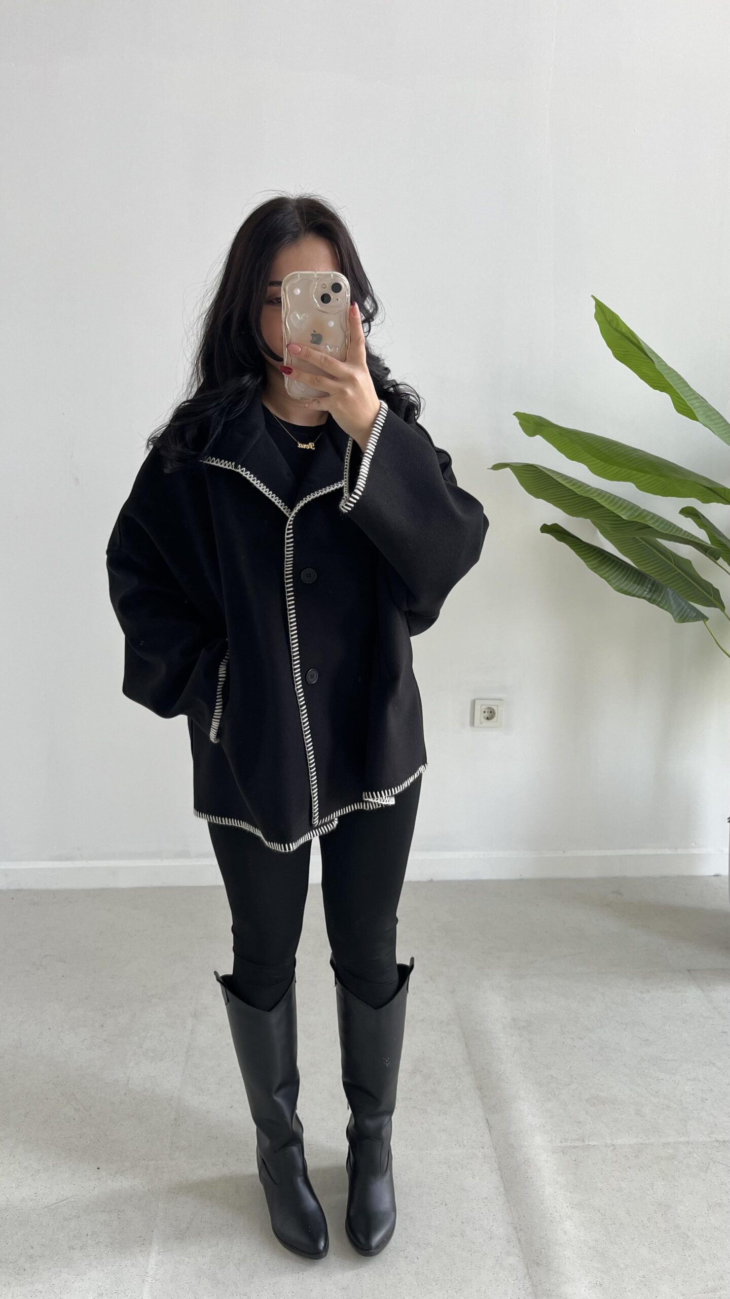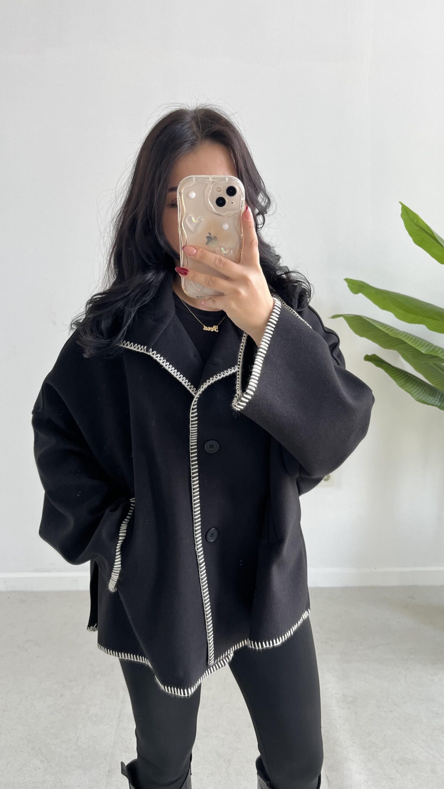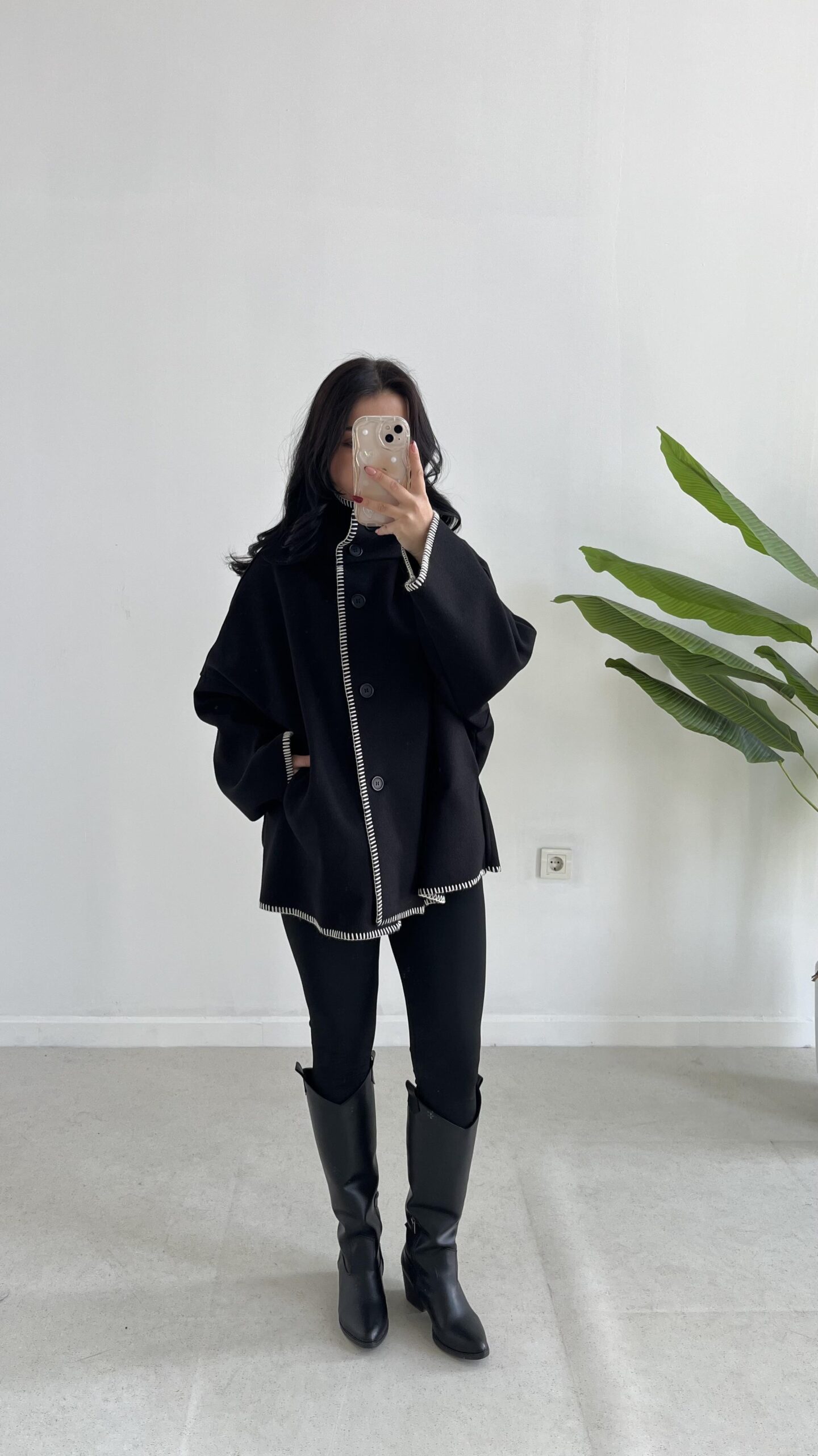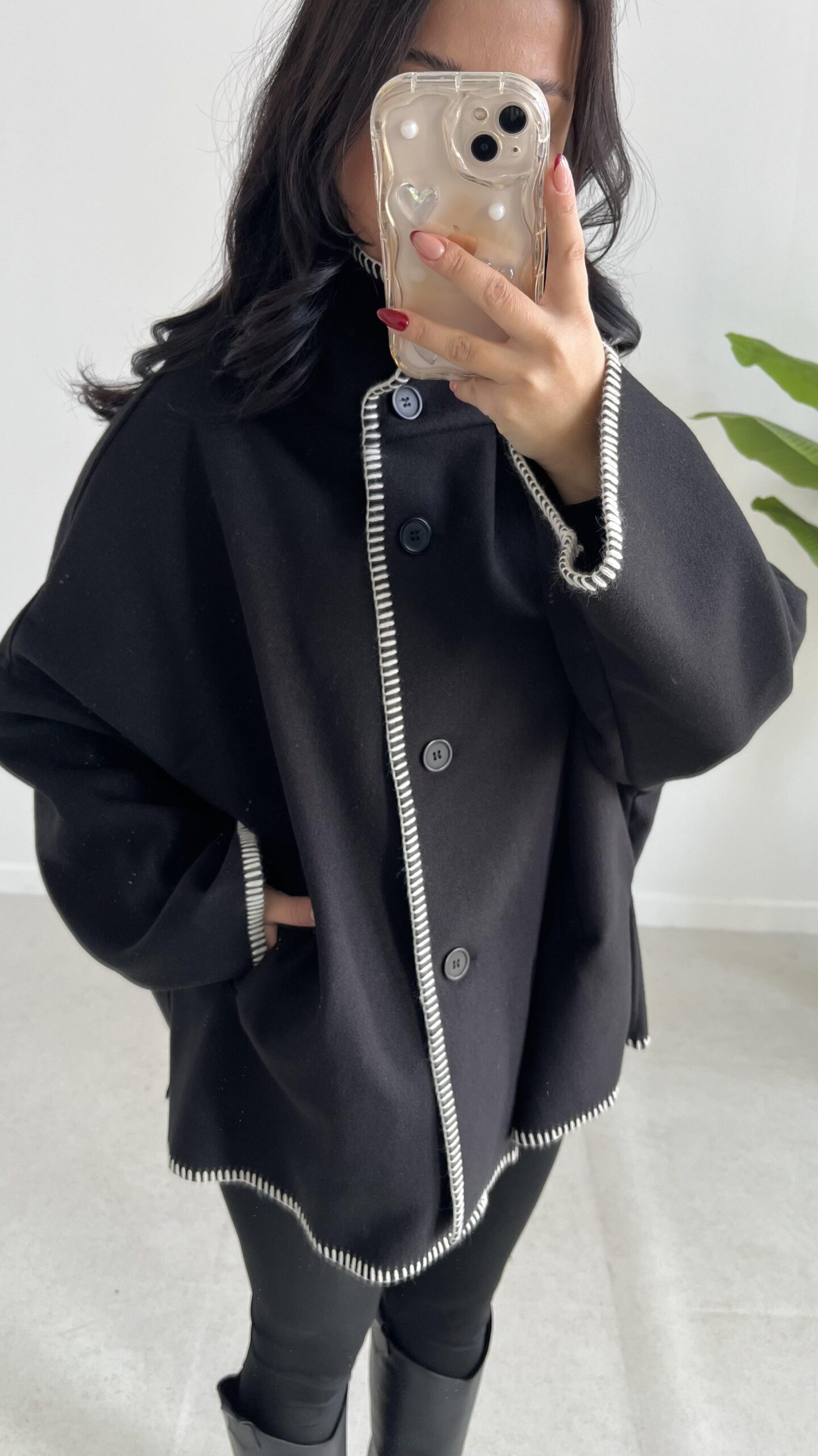 Çoban Dikişli Kaşe Panço – Siyah