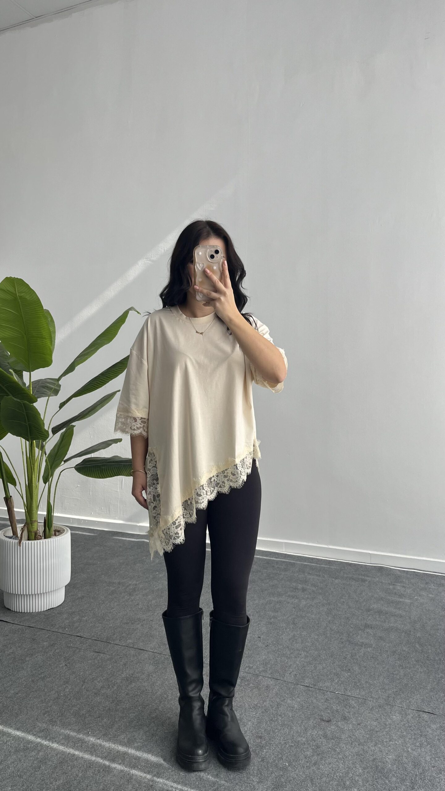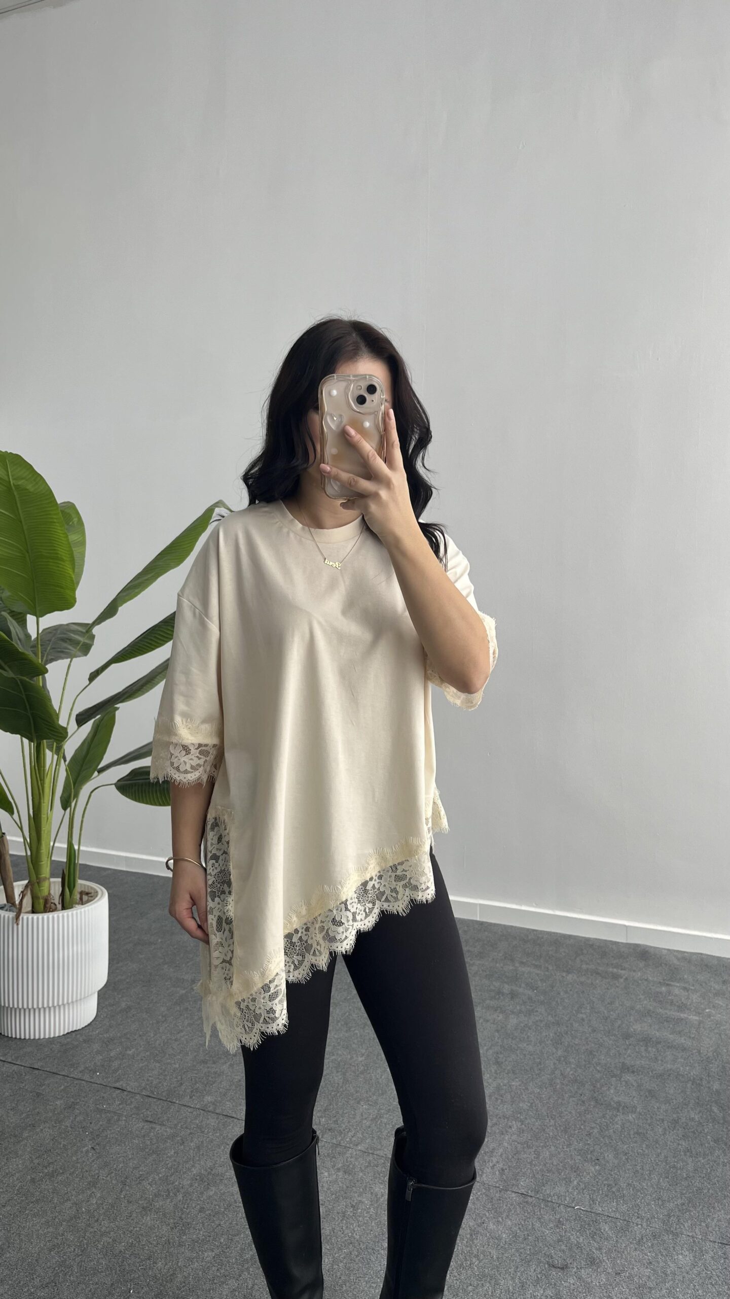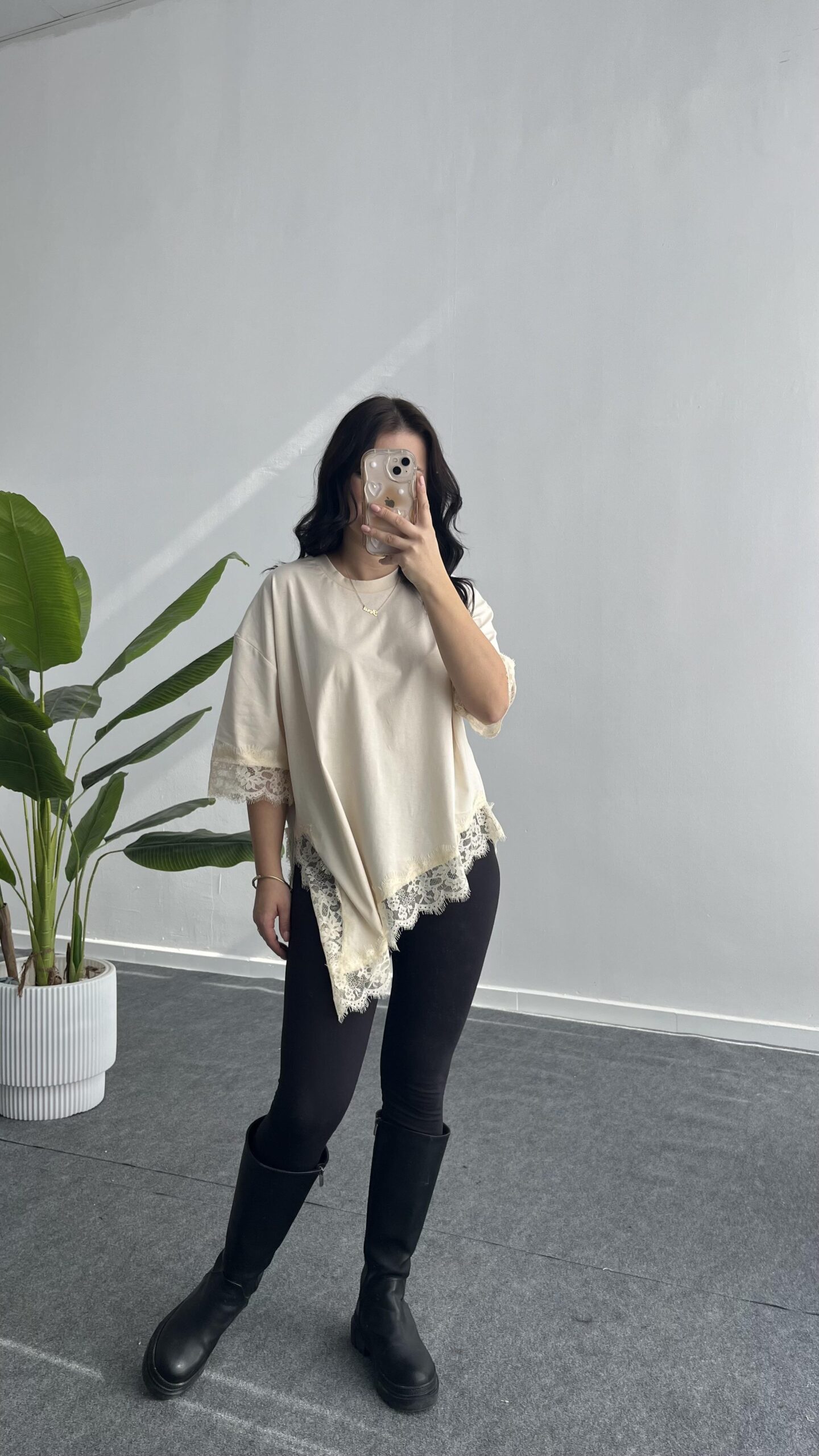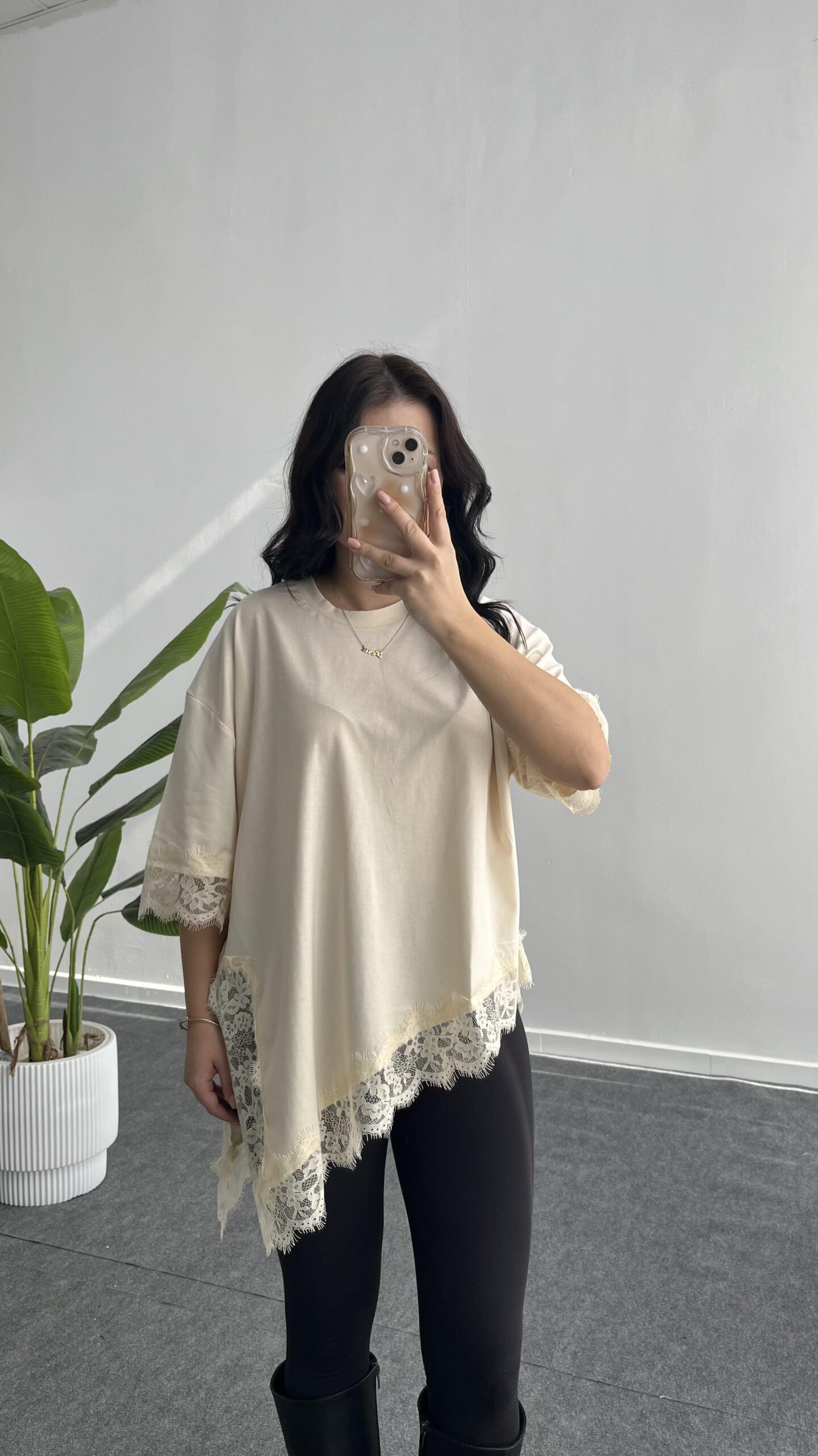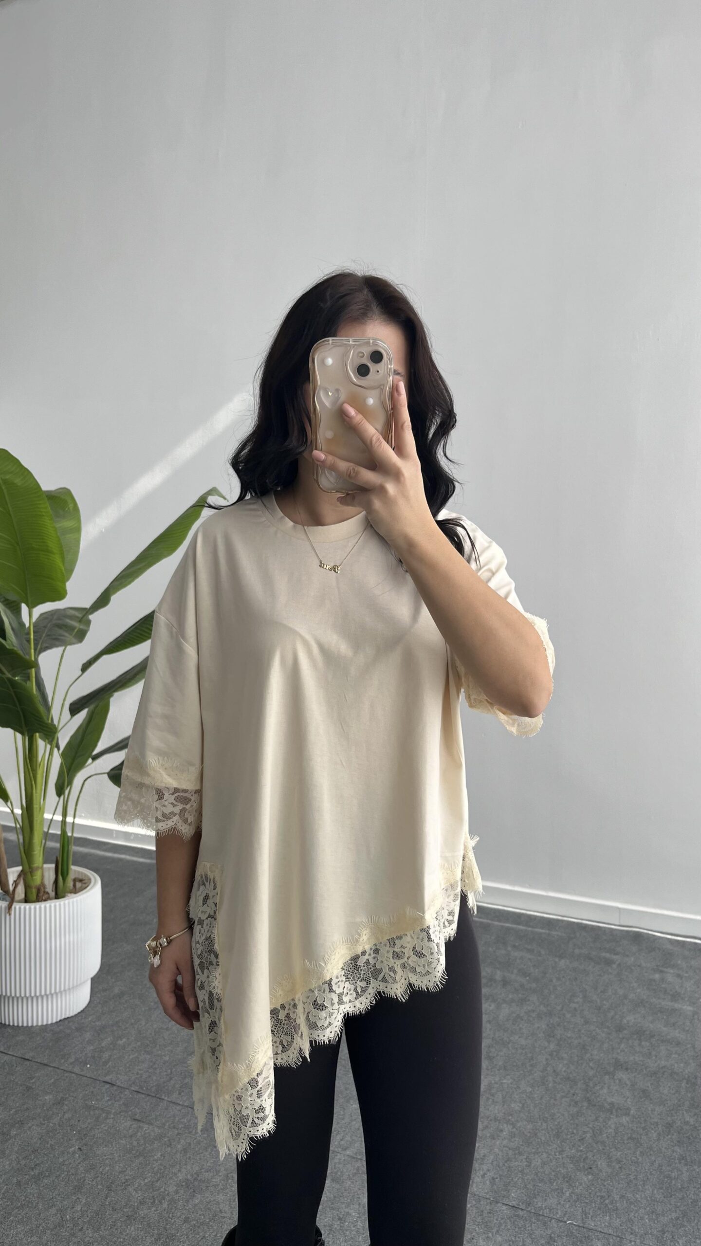 Elly Dantelli Kombine Tişört – Ekru