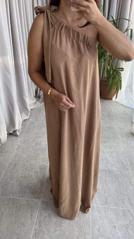 Eyra Oversize Pamuk Saten Gömlek Kahverengi