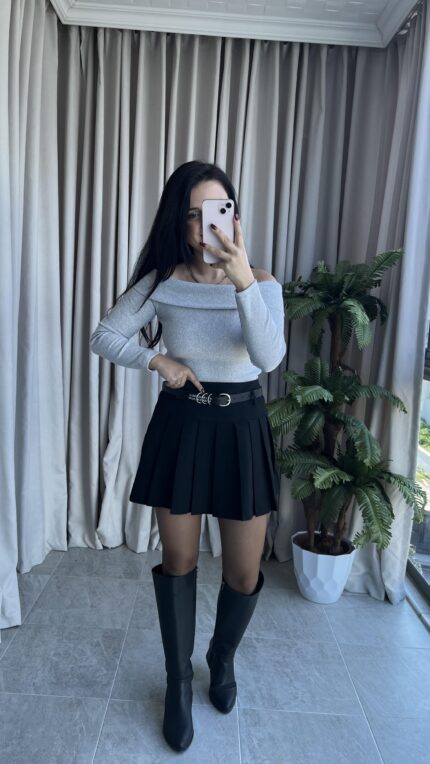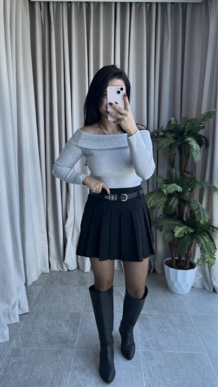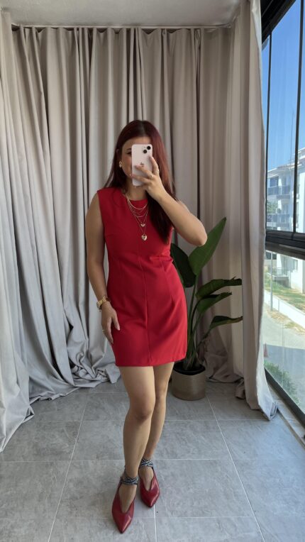 Evia Kaşkorse Madonna Yaka Bluz Kırmızı