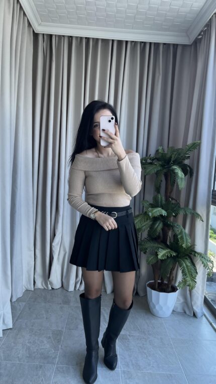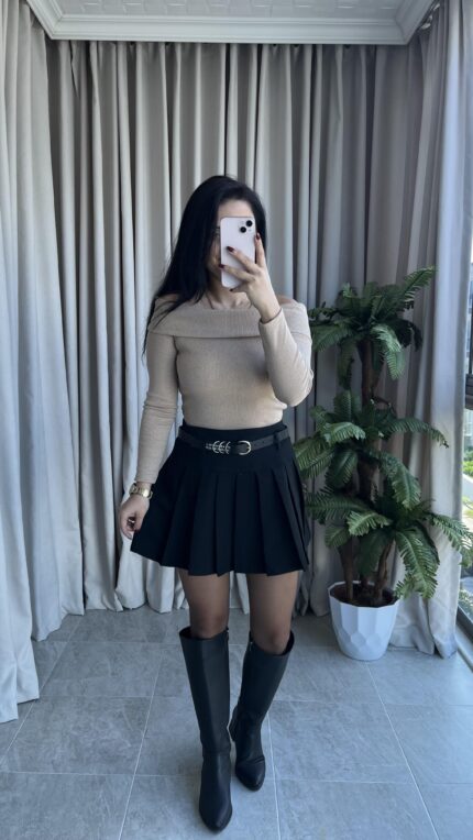 Evia Kaşkorse Madonna Yaka Bluz Kahverengi